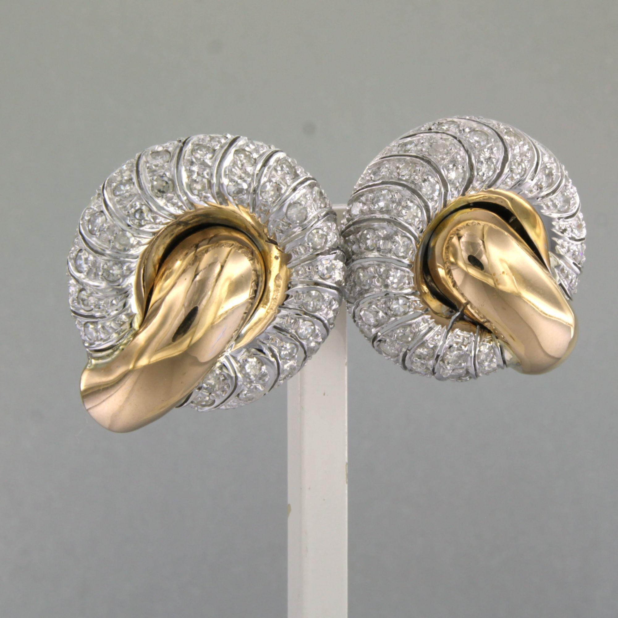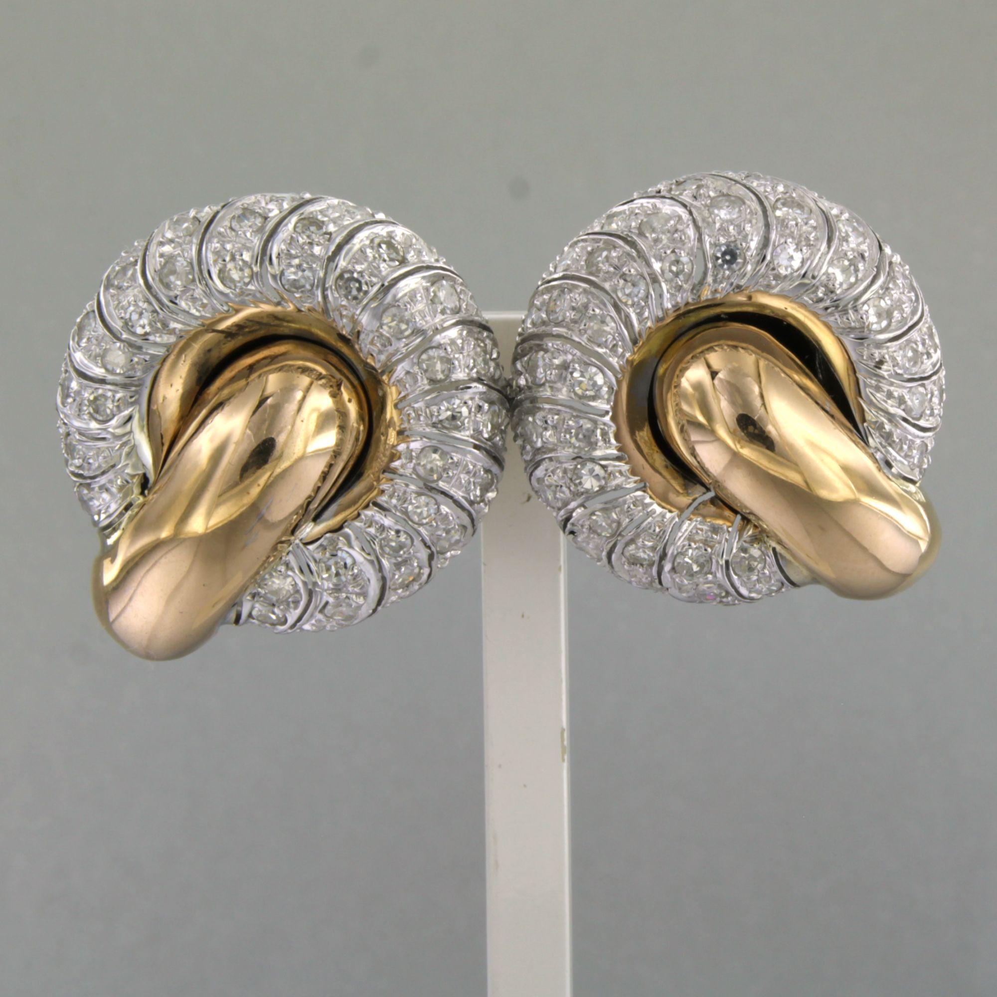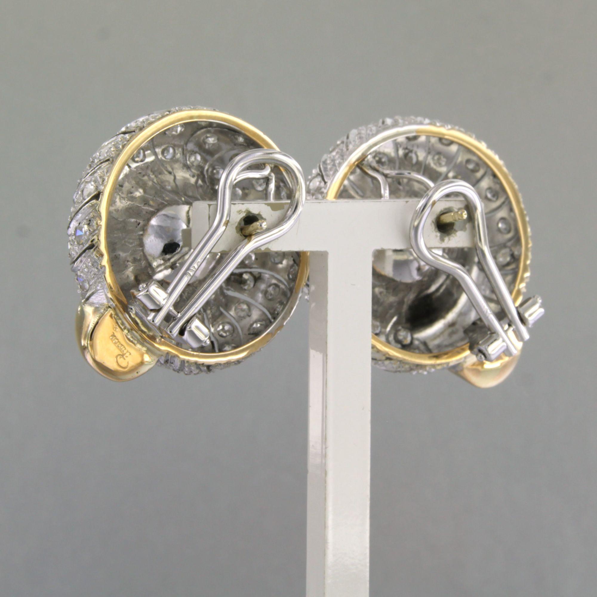 18 Kt. bicolour gouden oorclips bezet met single cut geslepen diamanten tot. 2.50ct - 23.5 gram
