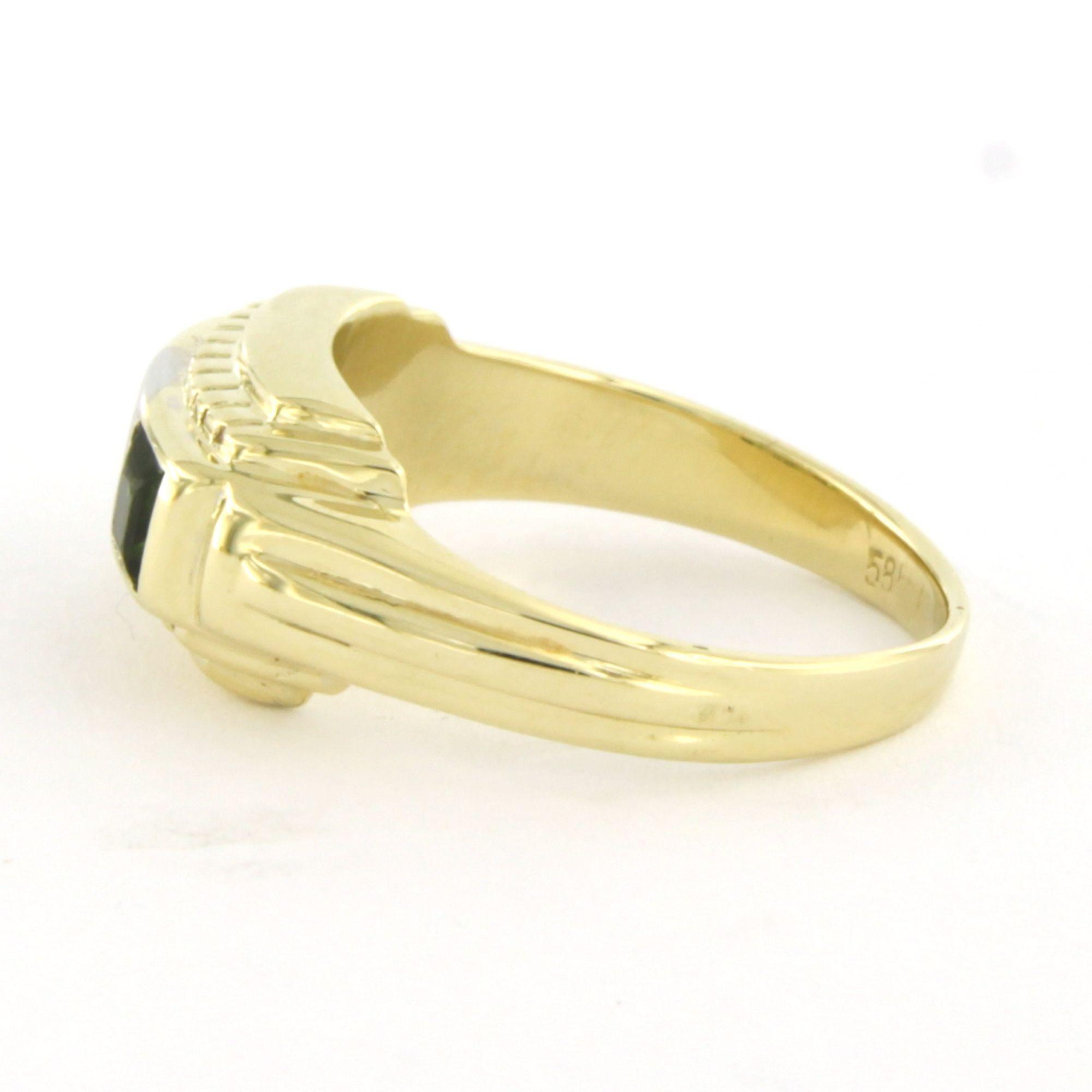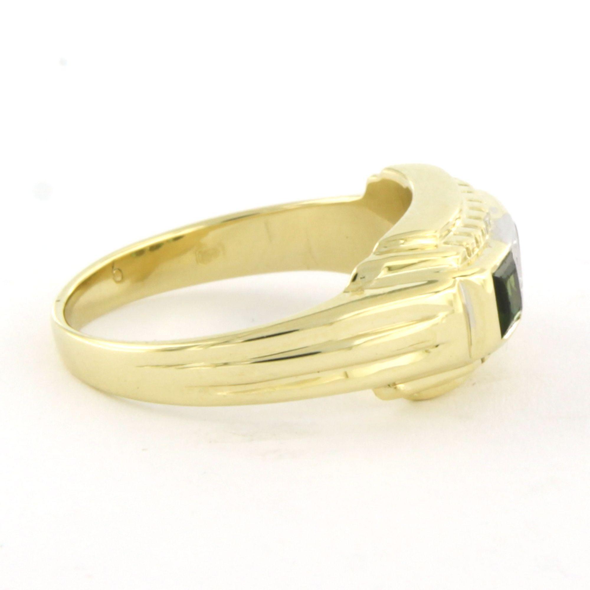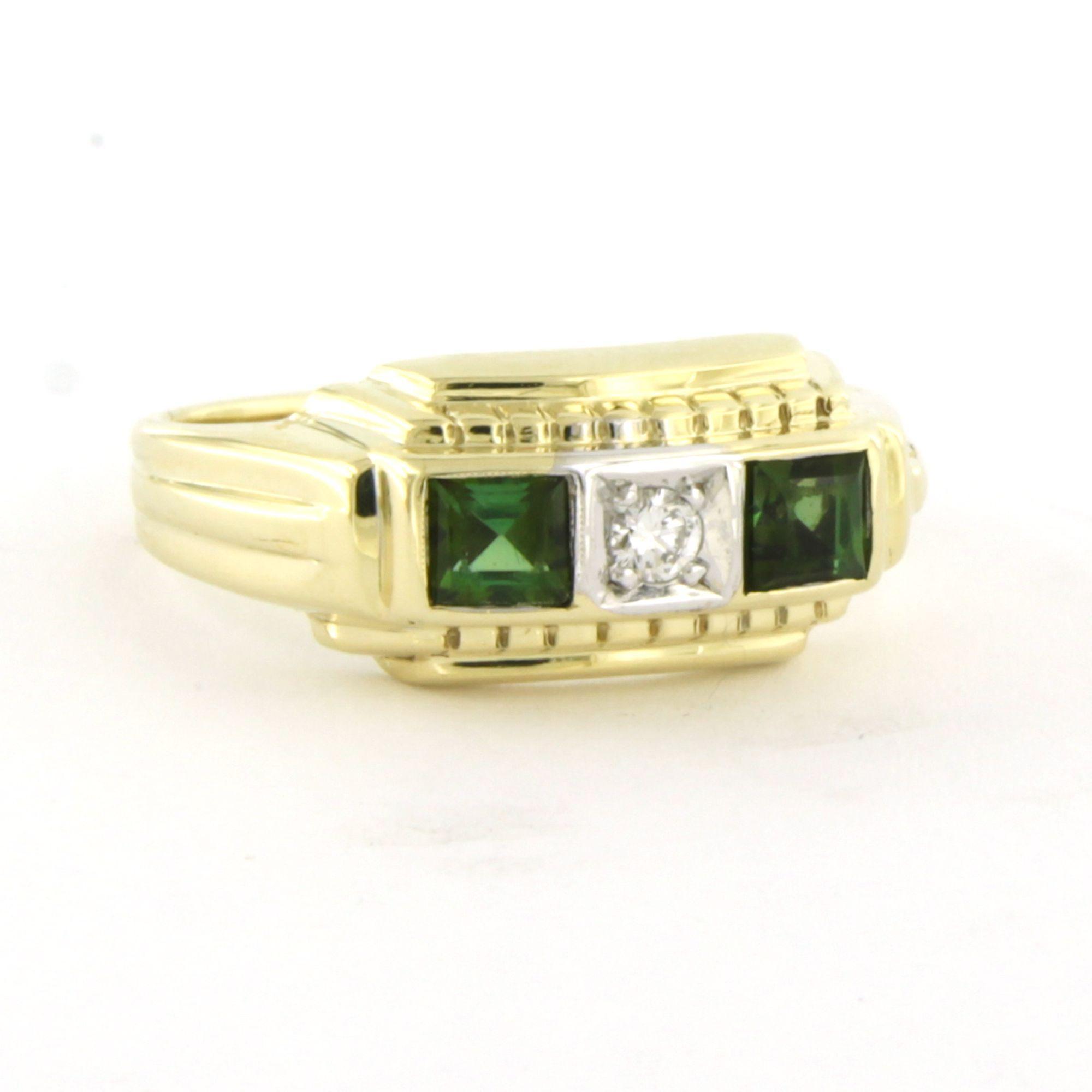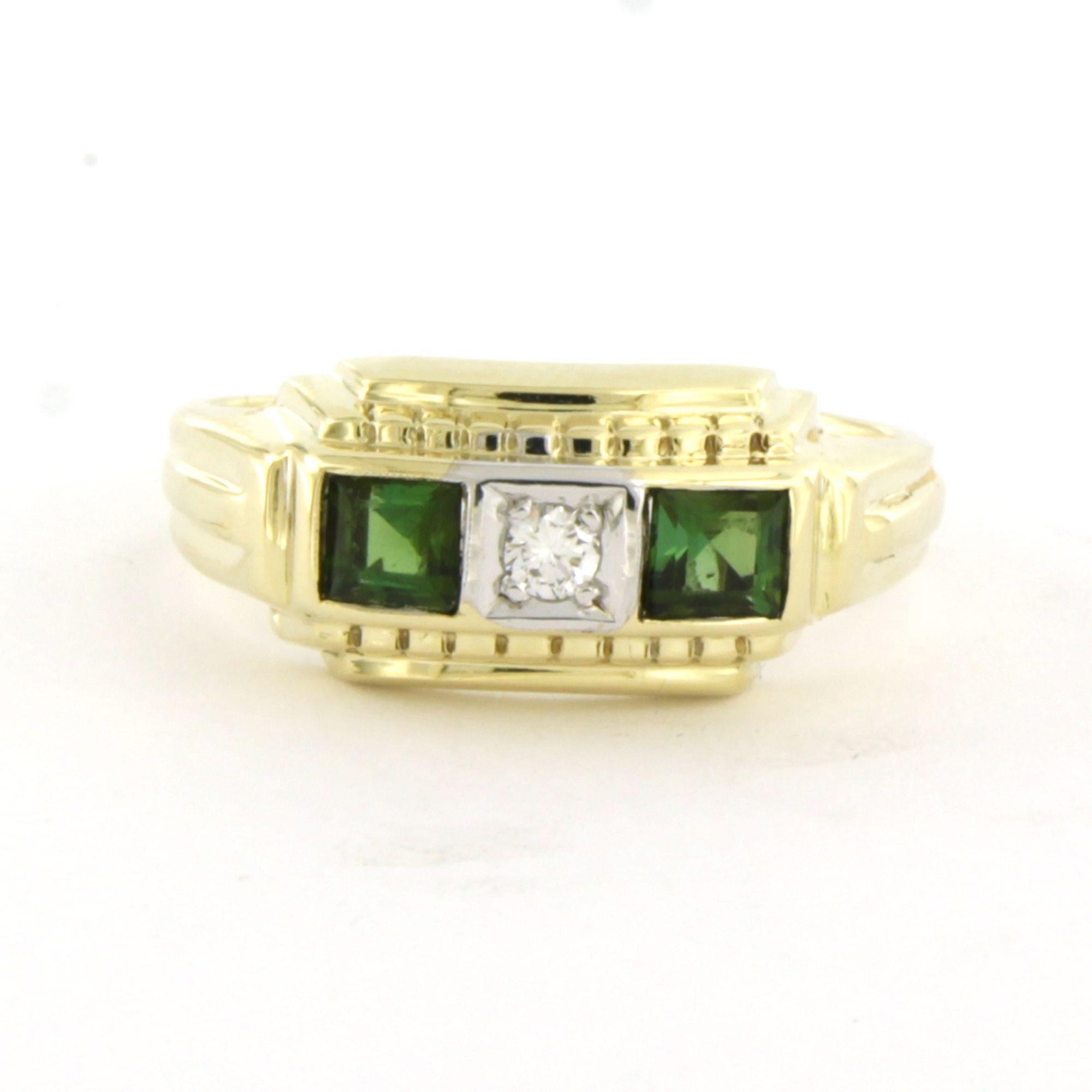 14 Kt. bicolour gouden ring bezet met toermalijn en briljant geslepen diamant tot. 0.05ct =- F/G - VS/SI - ringmaat 17.25(54)