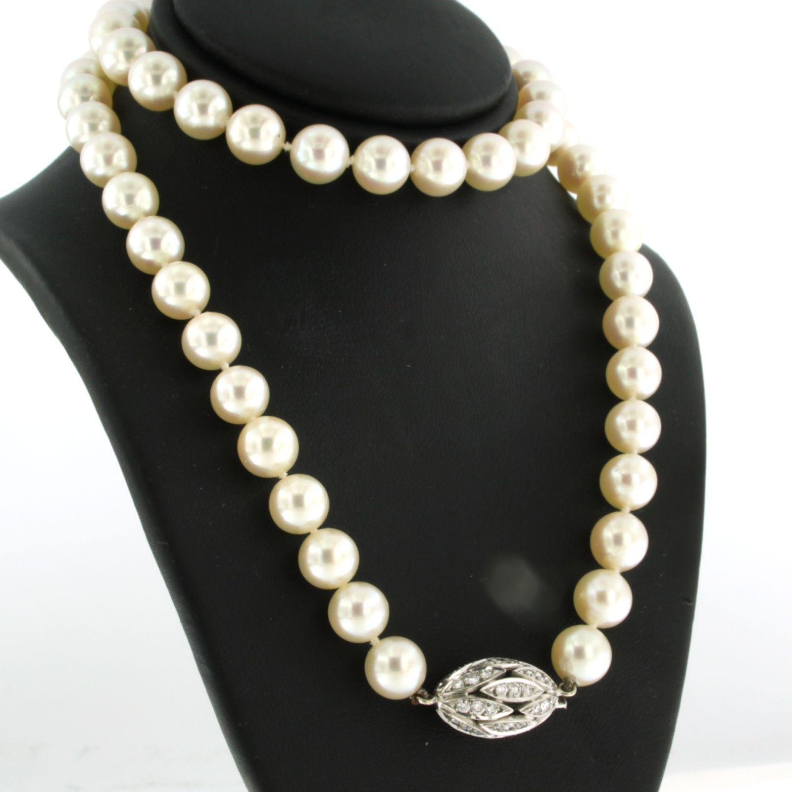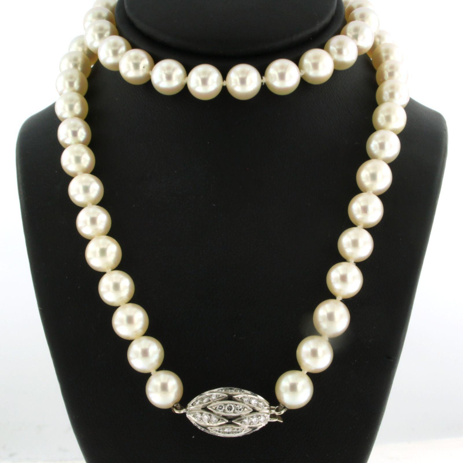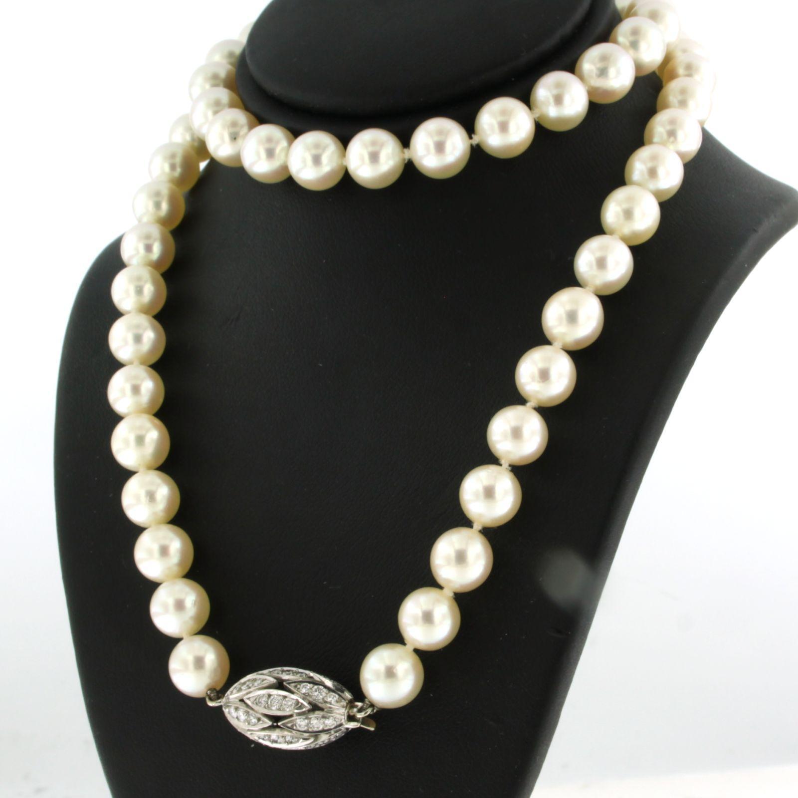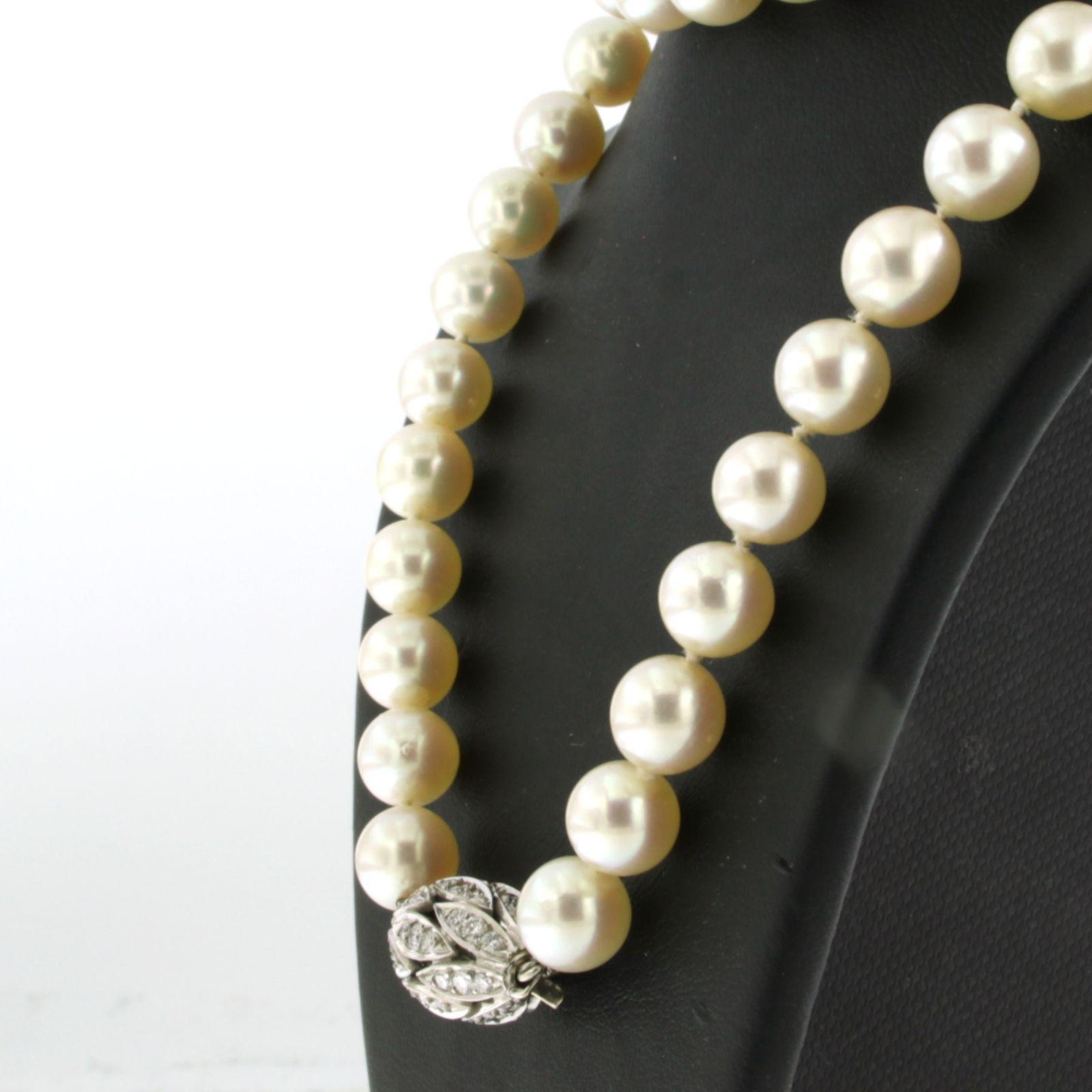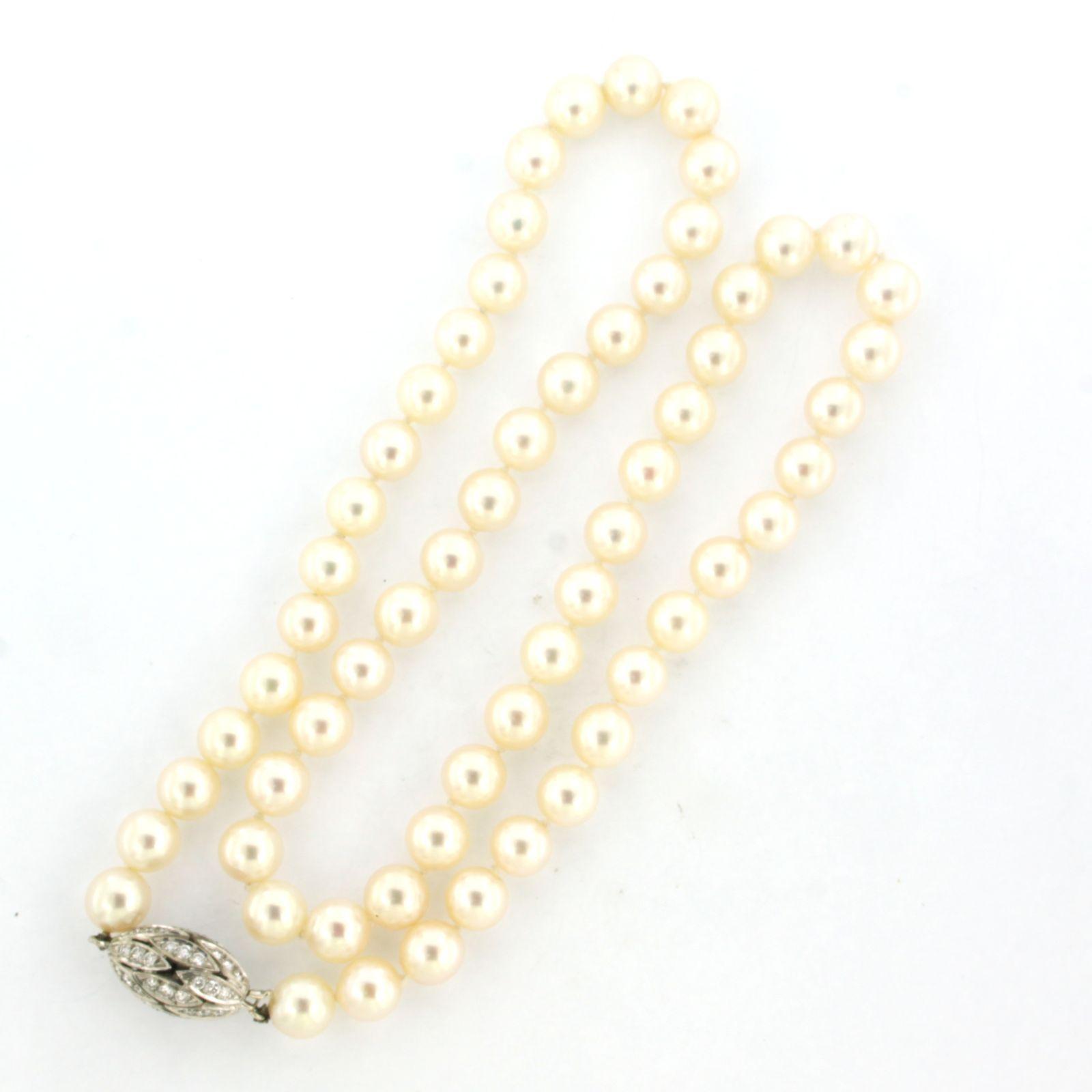 E. HABAN 18 Kt. witgouden solt bezet met briljant geslepen diamanten tot. 1.00ct - F/G - VS/SI - aan een parel collier
