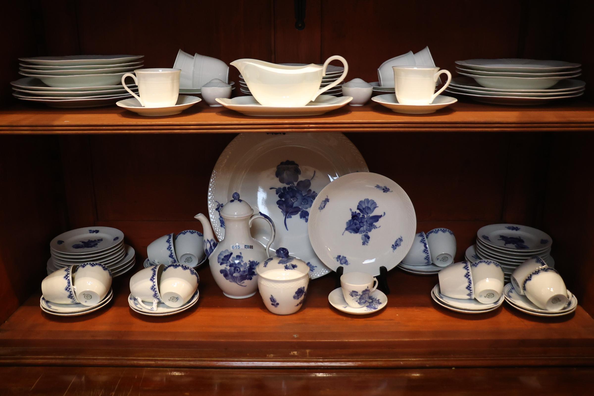 Blauw met bloemen gedecoreerde porseleinen serviesdeel, Royal Kopenhagen
