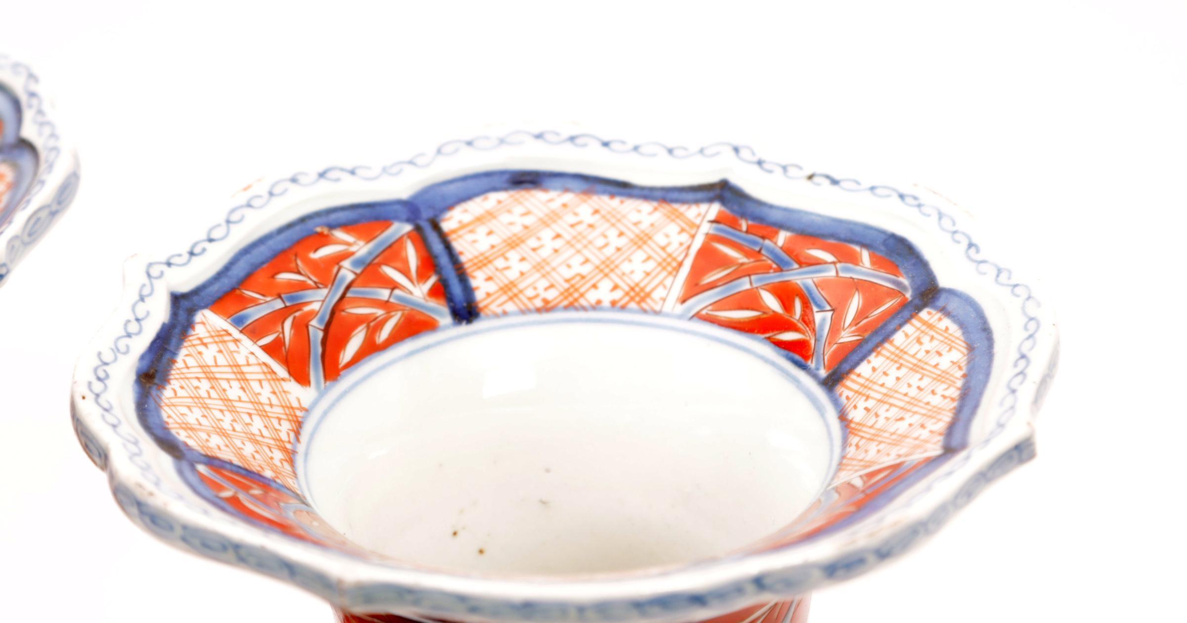 Twee met vogels gedecoreerde Imari kraagvazen, h.28 cm.