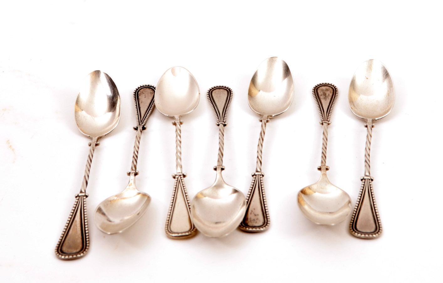 Koopje van zeven 2e gehalte zilveren koffielepels, 67,3 gram