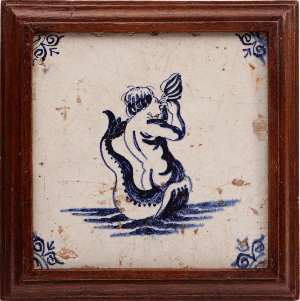 6 Antieke blauw/wit gedecoreerde tegels
