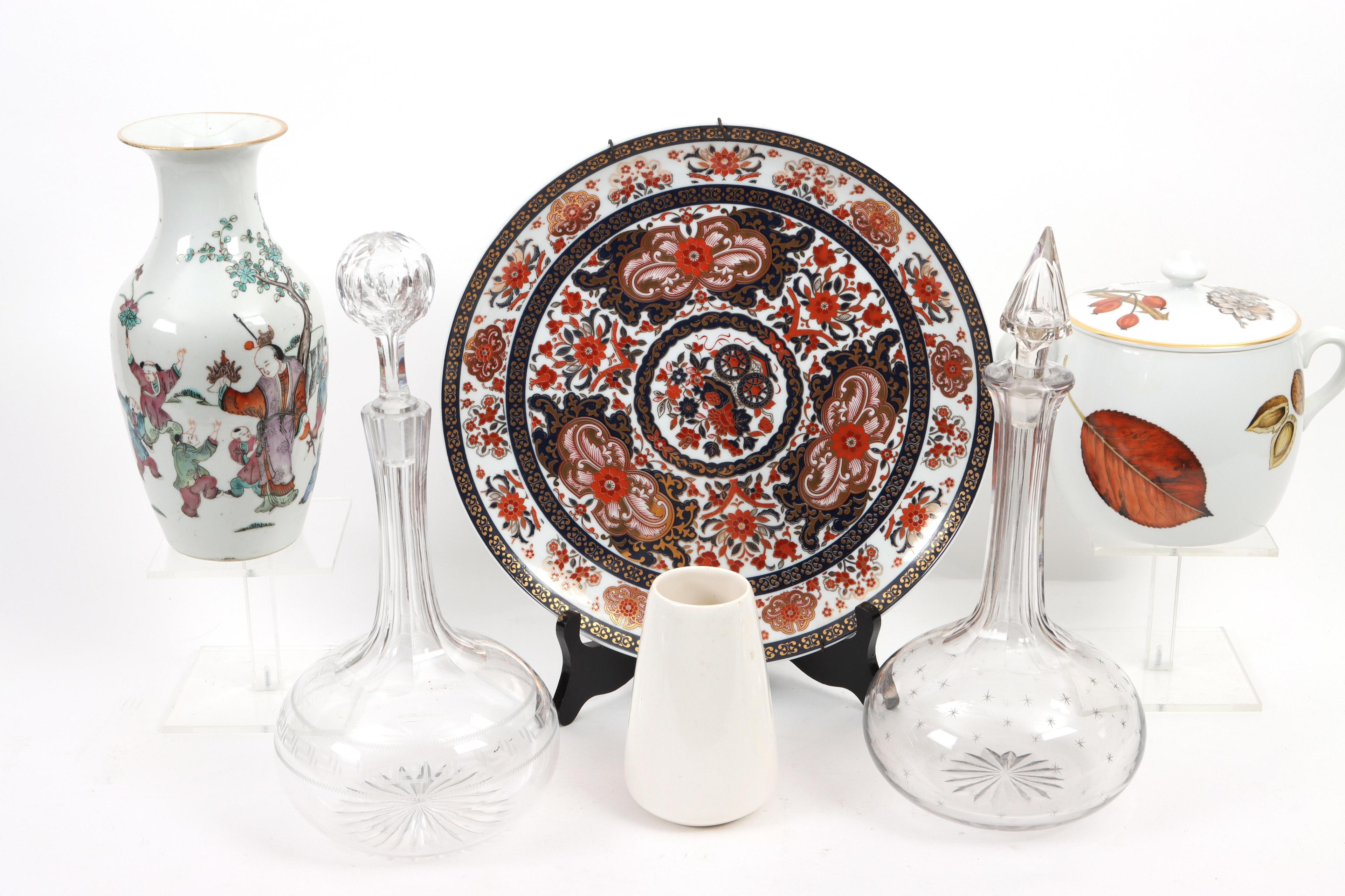 Koop van 2 kristallen karaffen, diverse porselein, etc.