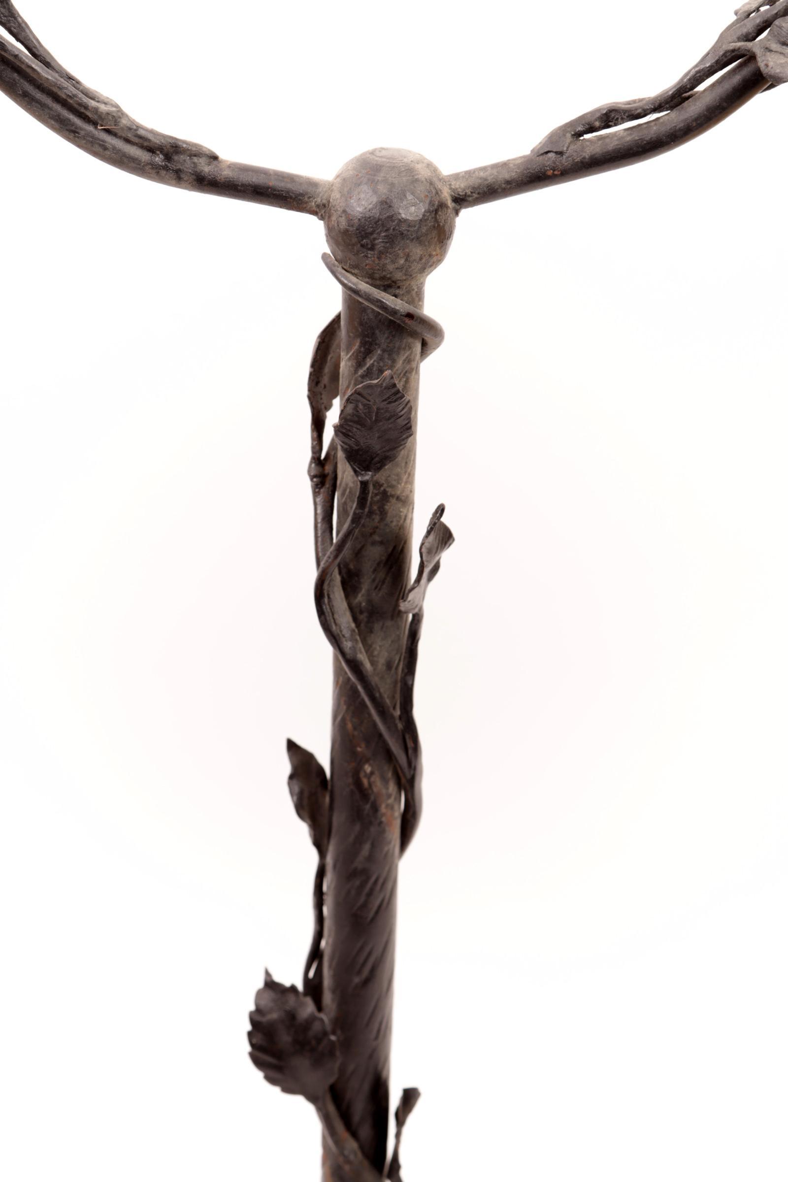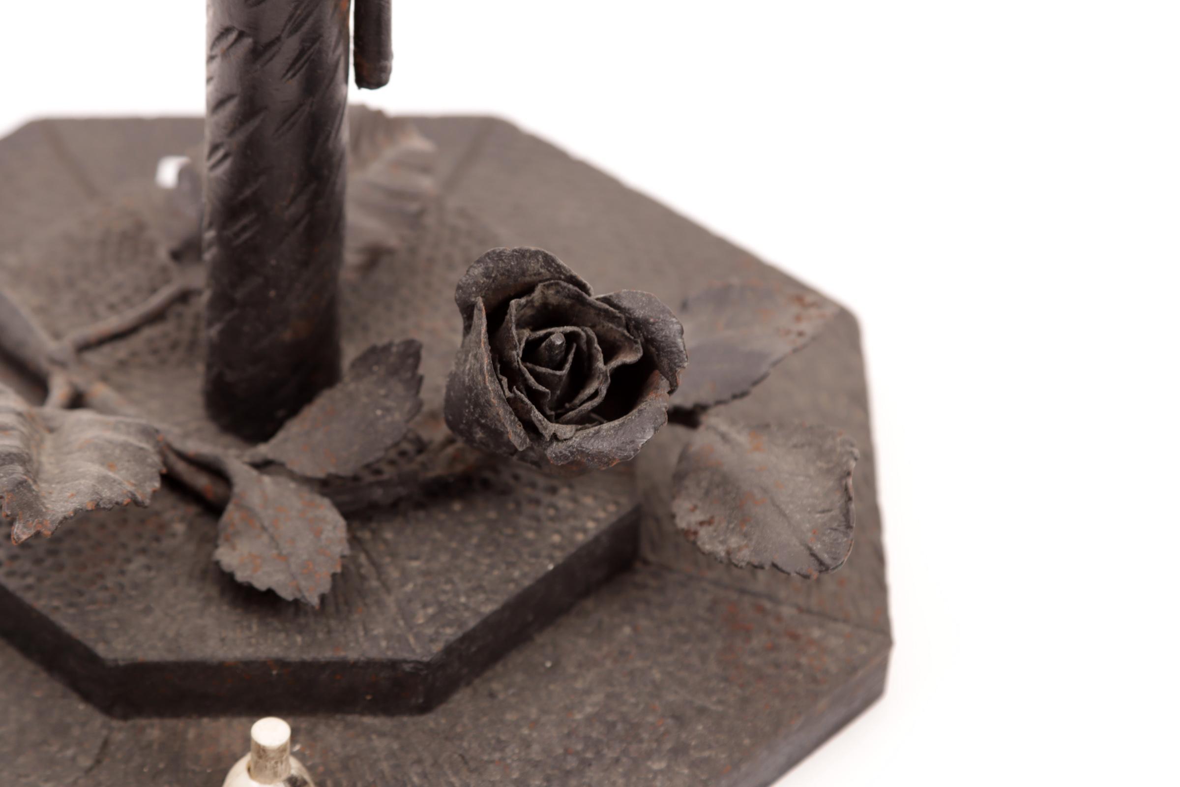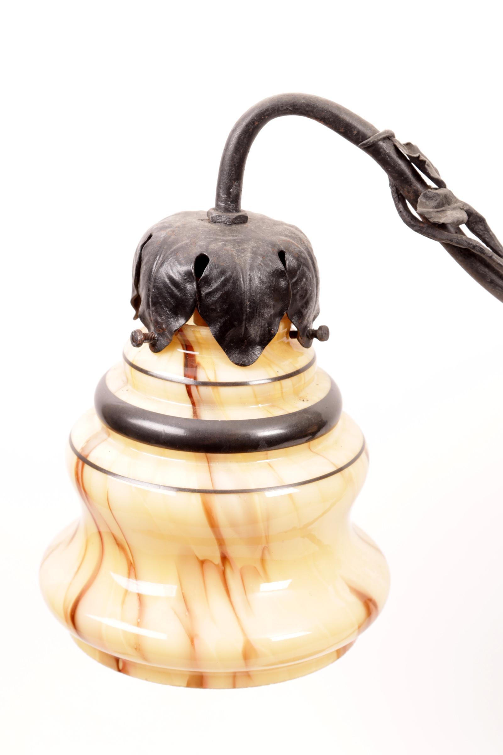 Smeedijzeren tafellamp met glazen kapjes, h.59 cm.