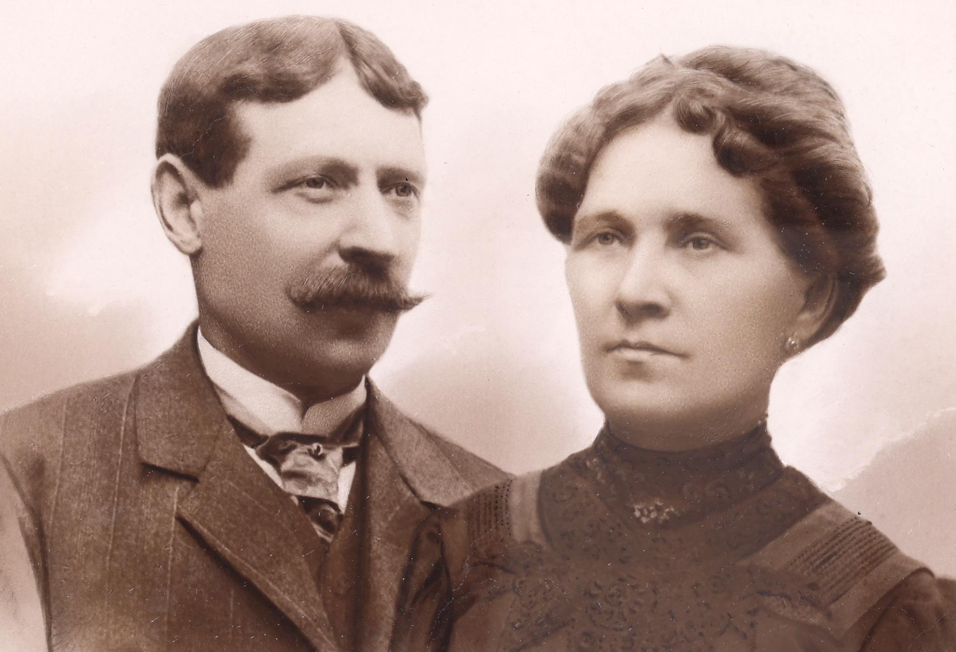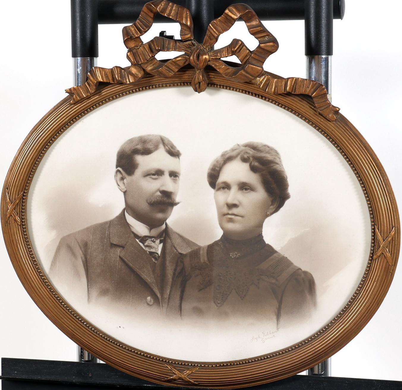 Oude foto in goudkleurige striklijst, 49 x 37 cm.