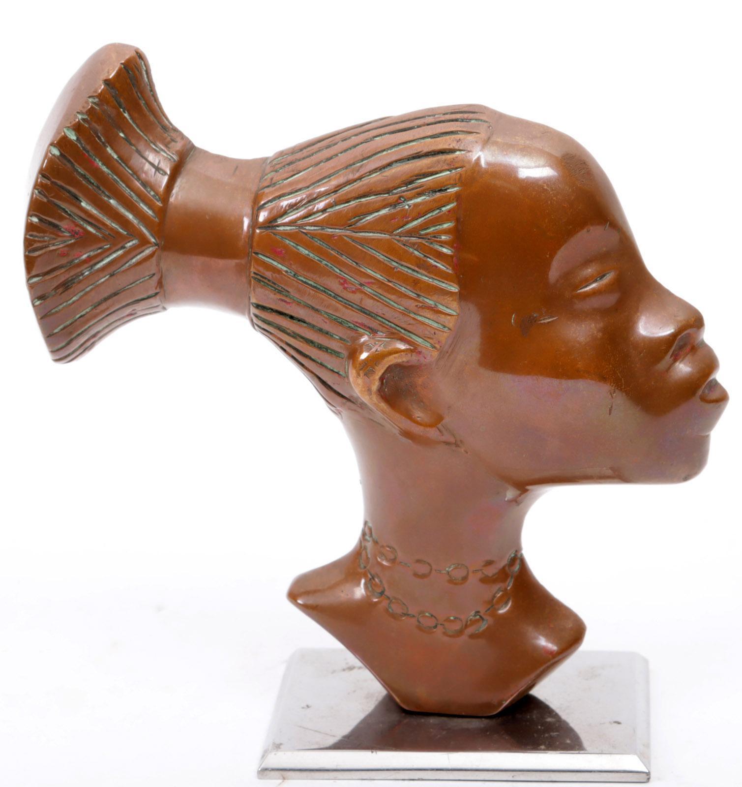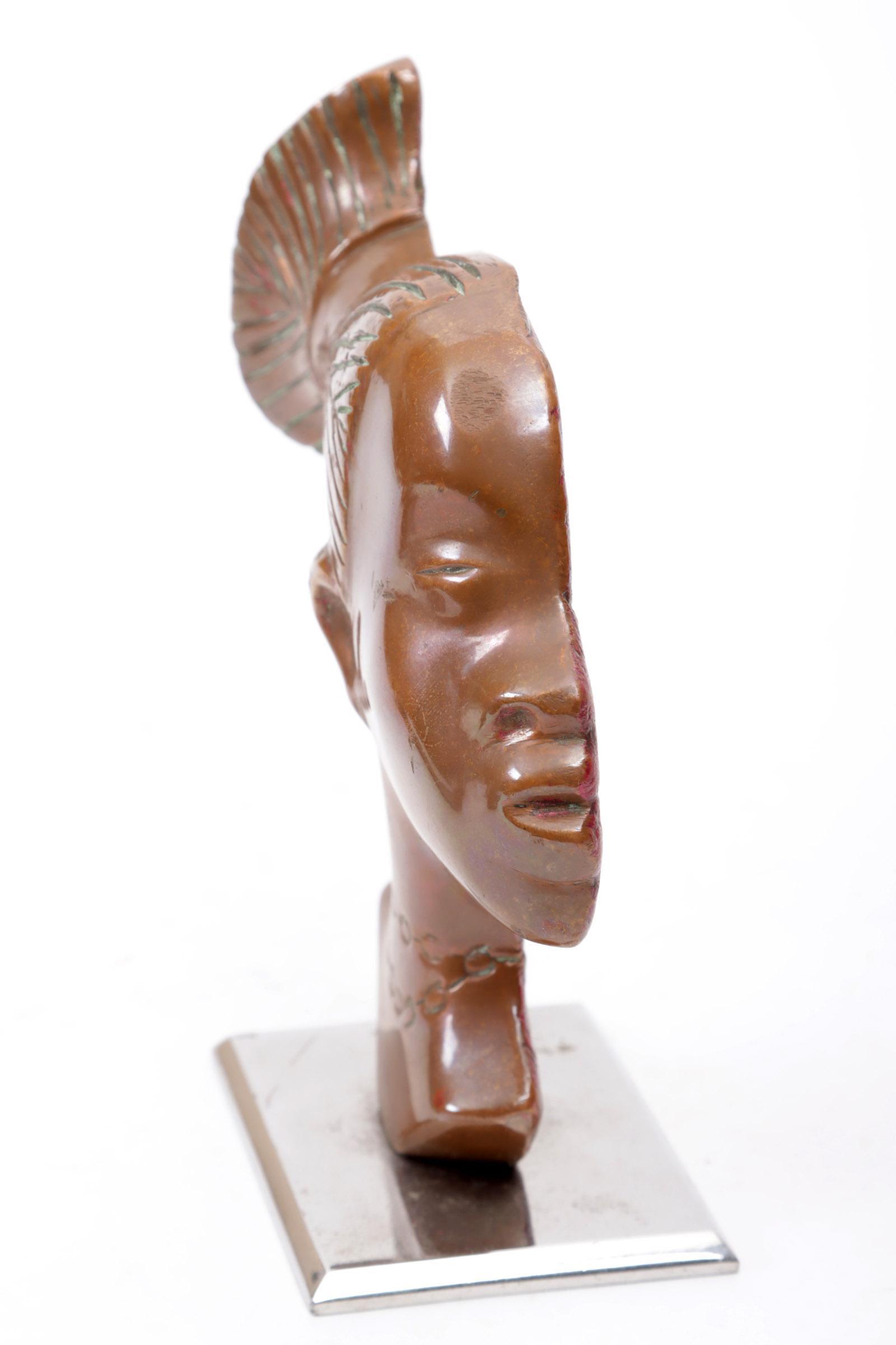 Bronzen Art Deco beeldje van een Afrikaanse vrouw