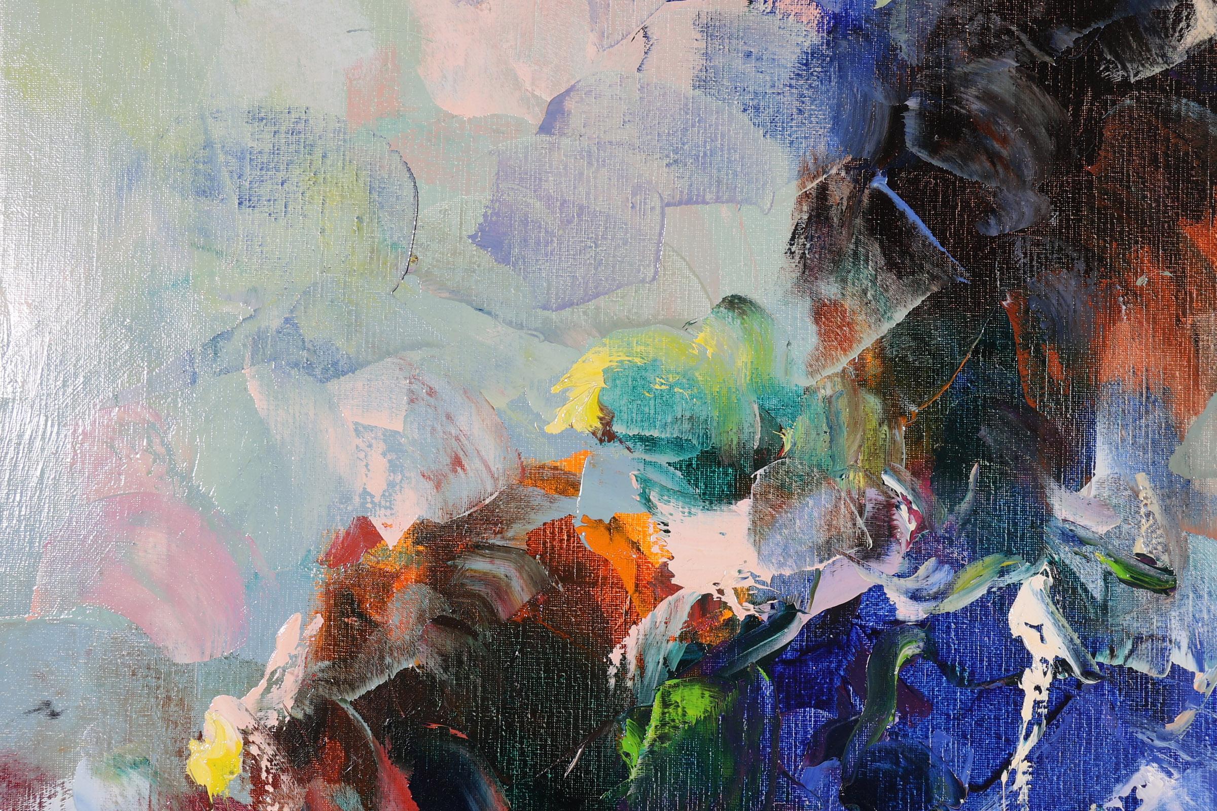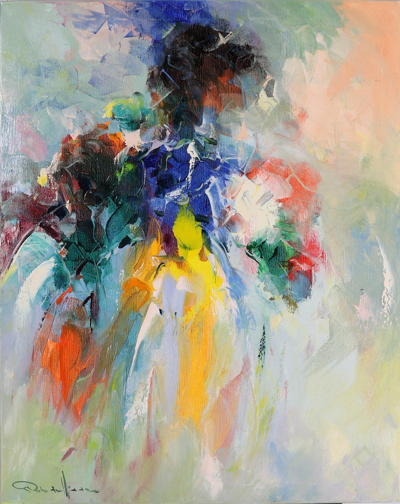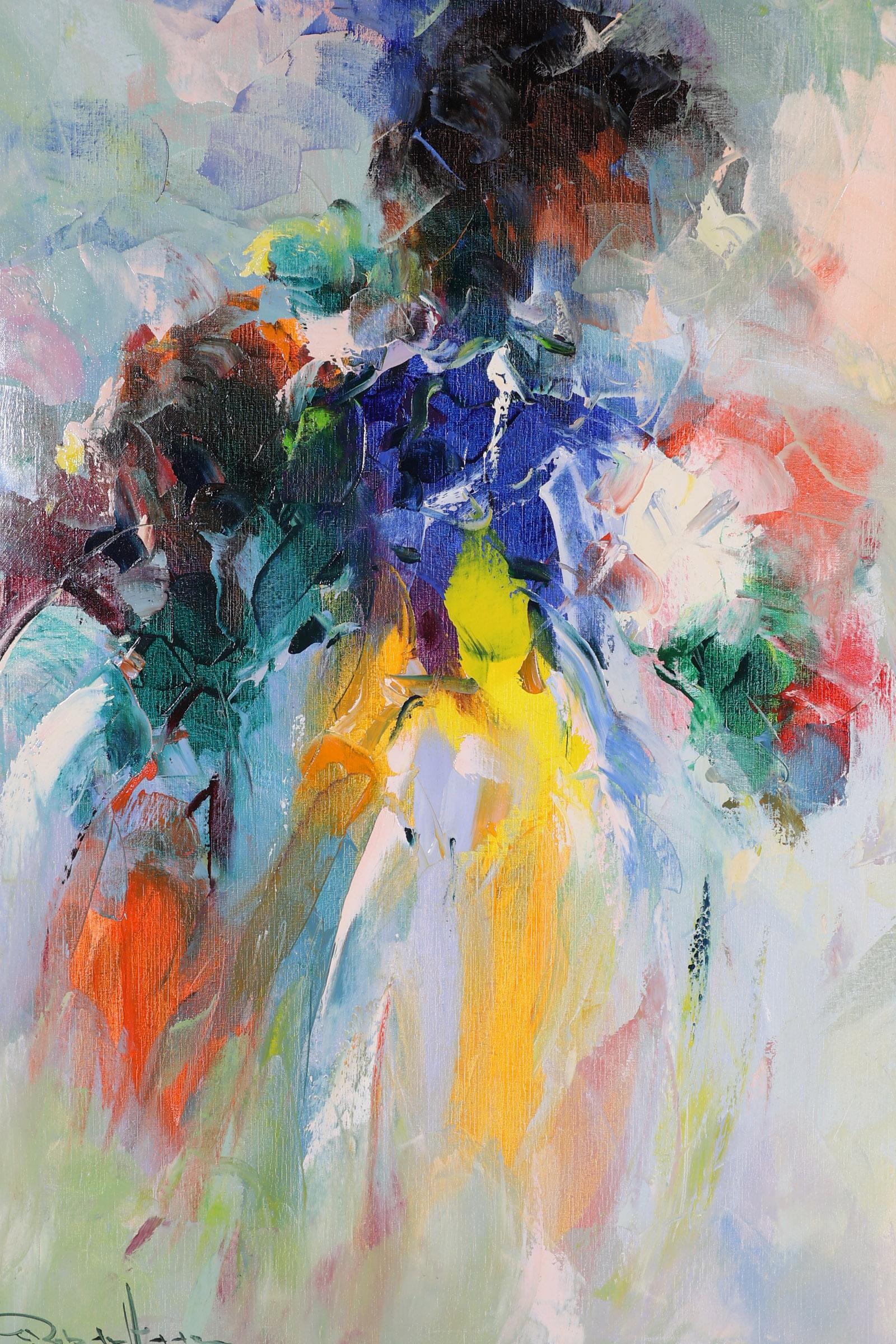 Rob de Haan, Abstract bloemstilleven, olieverf op doek, 100 x 80 cm.