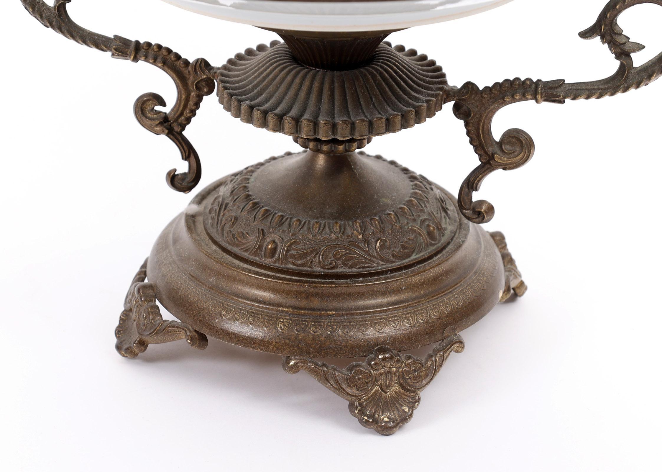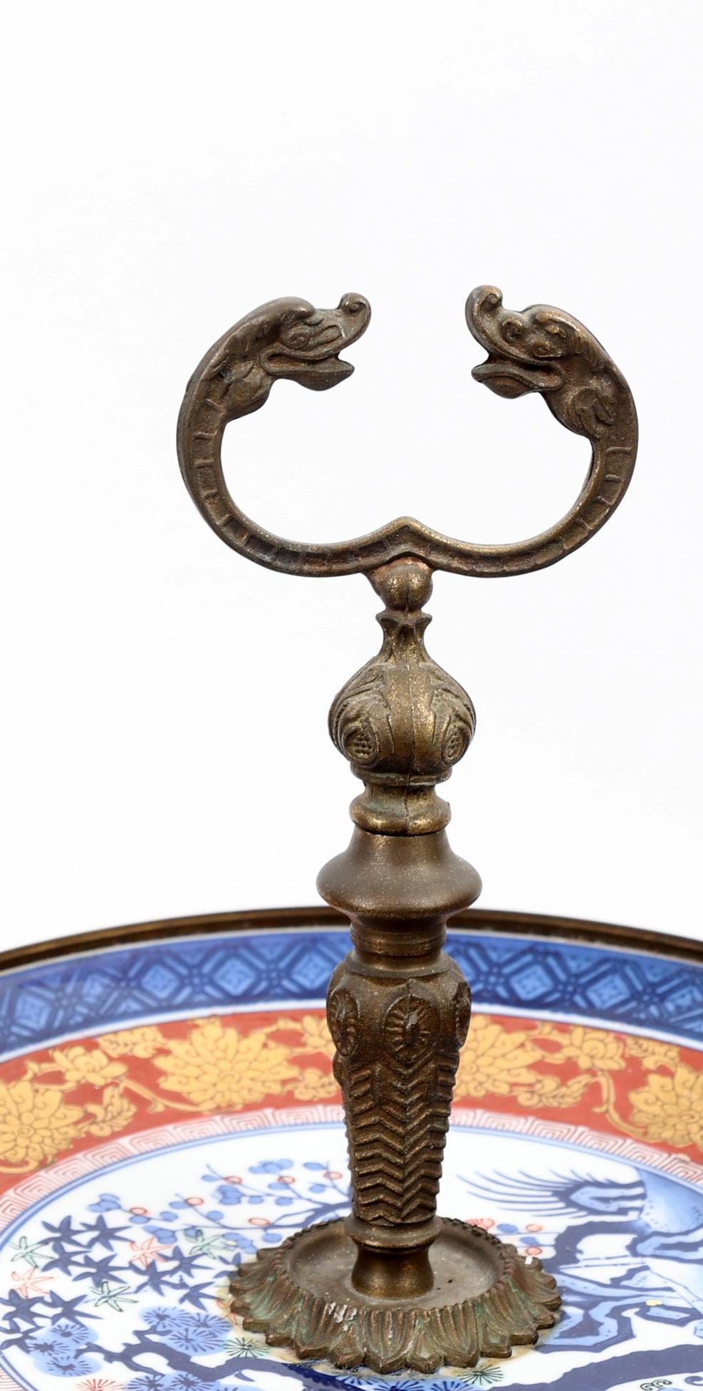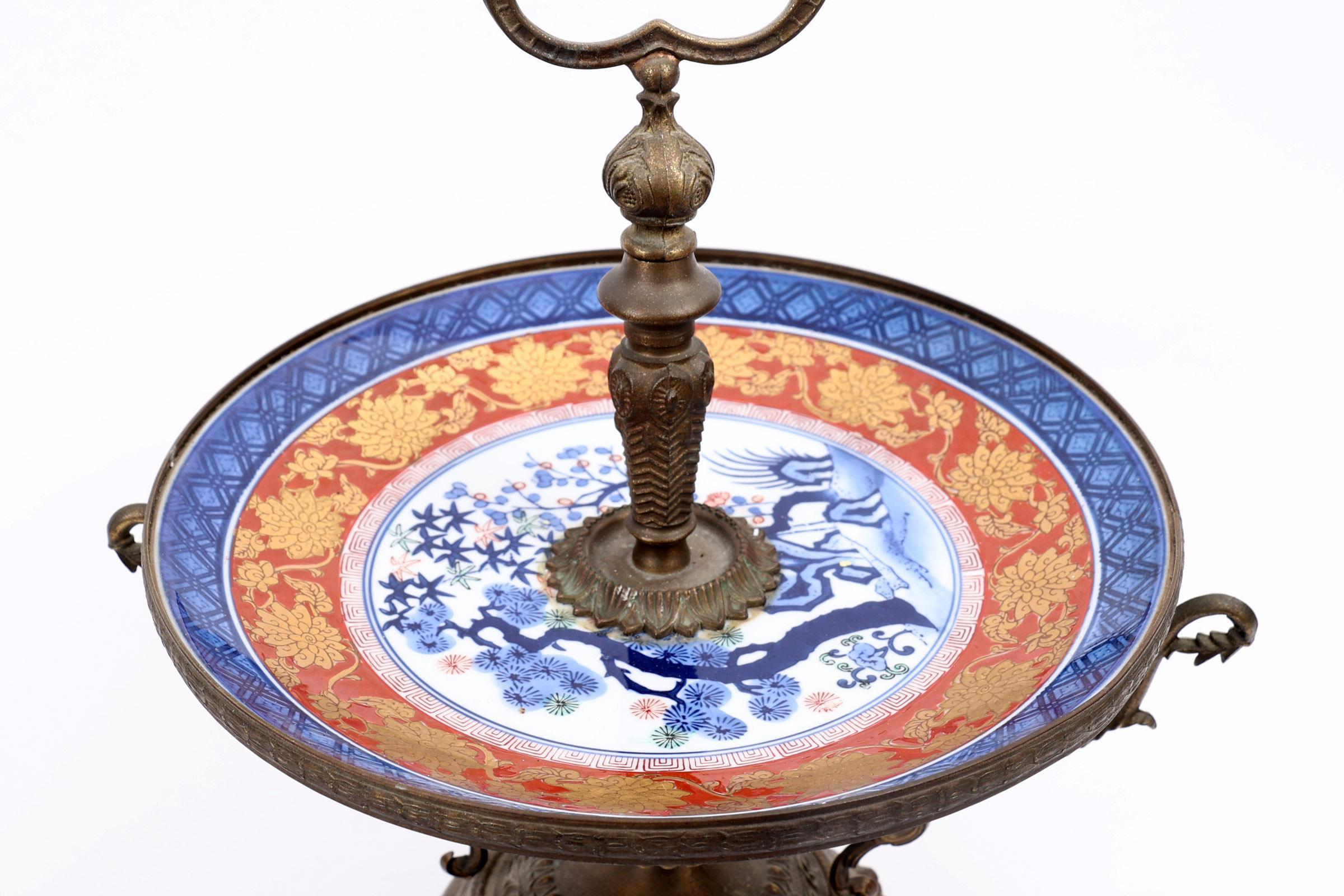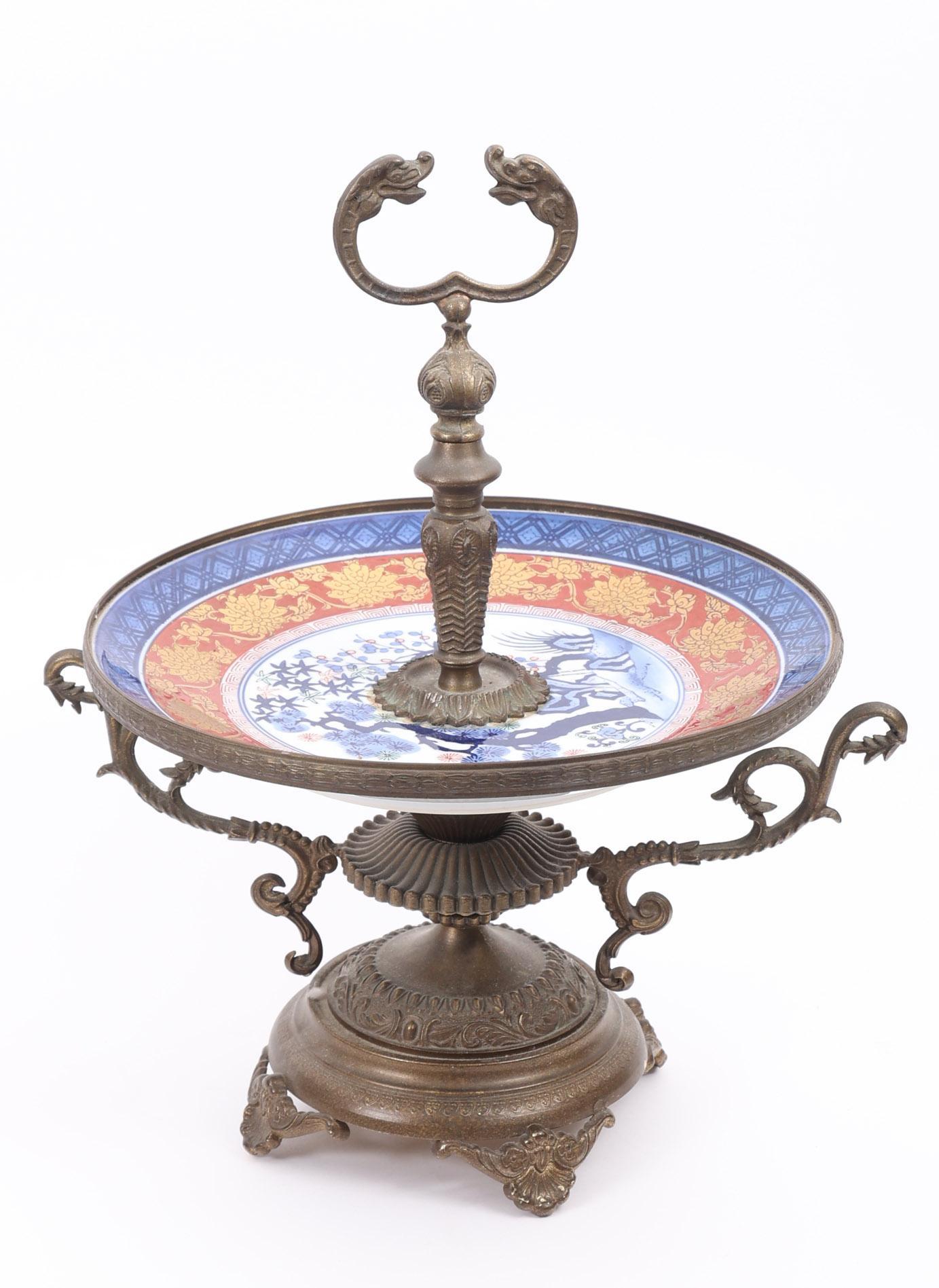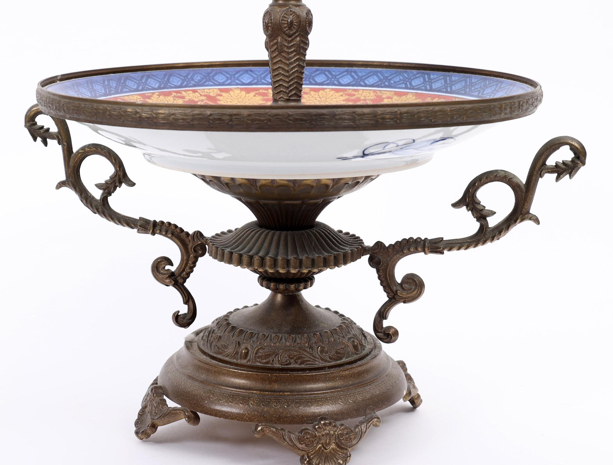 Chinees porseleinen fruitschaal met koperen monturen, h.44 cm.