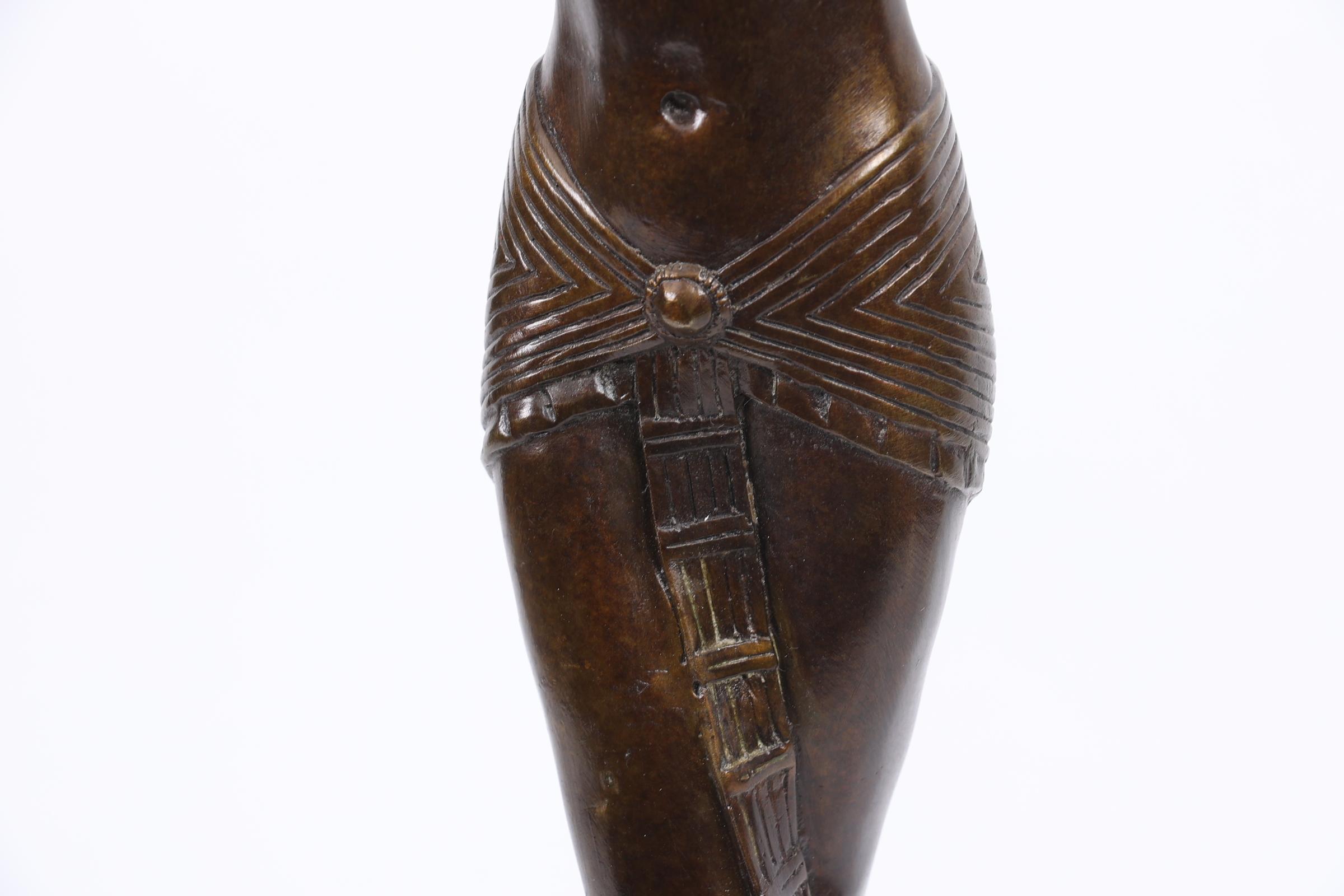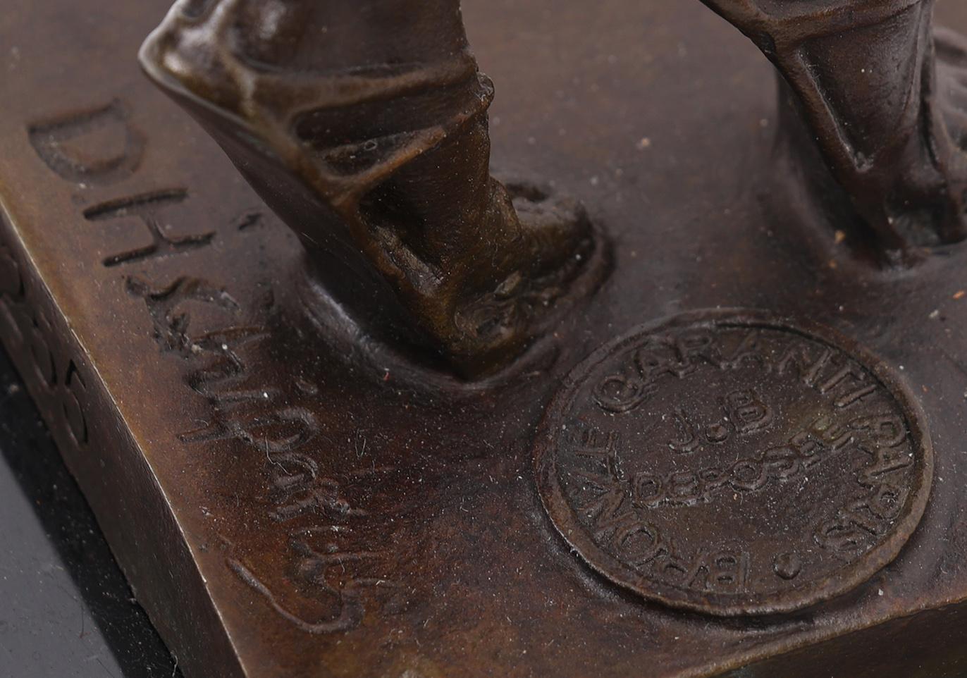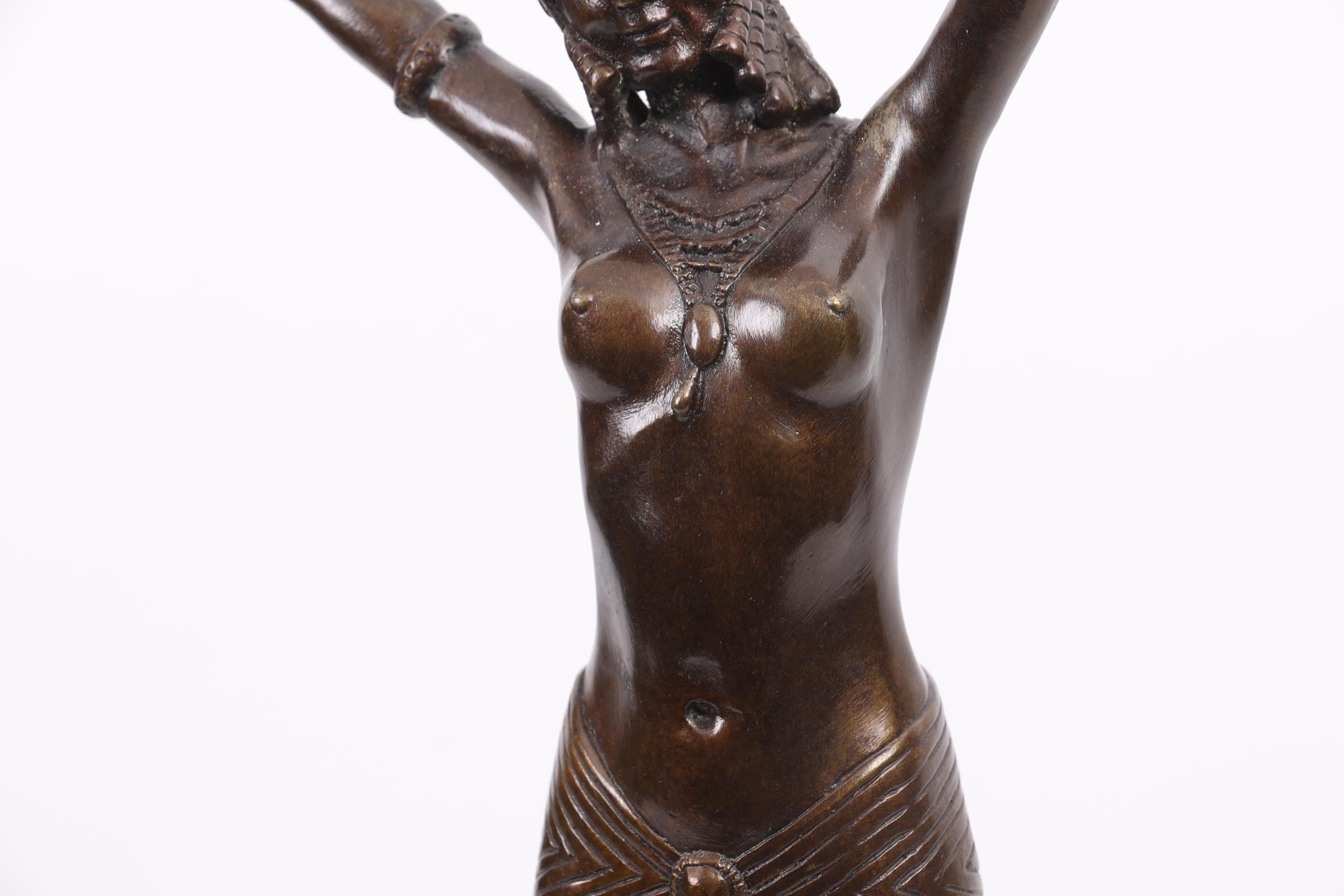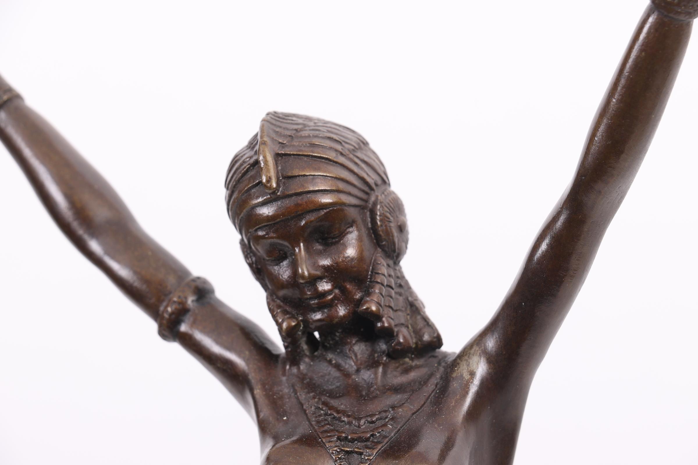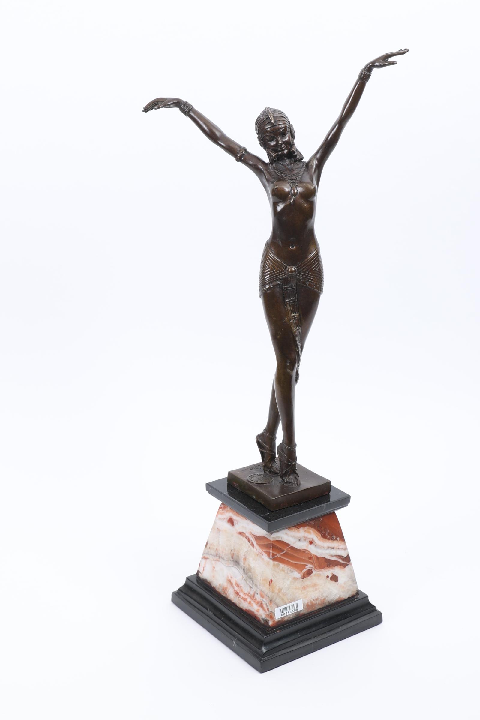 Bronzen art deco-stijl beeld rustend op marmeren sokkel, h.55 cm.