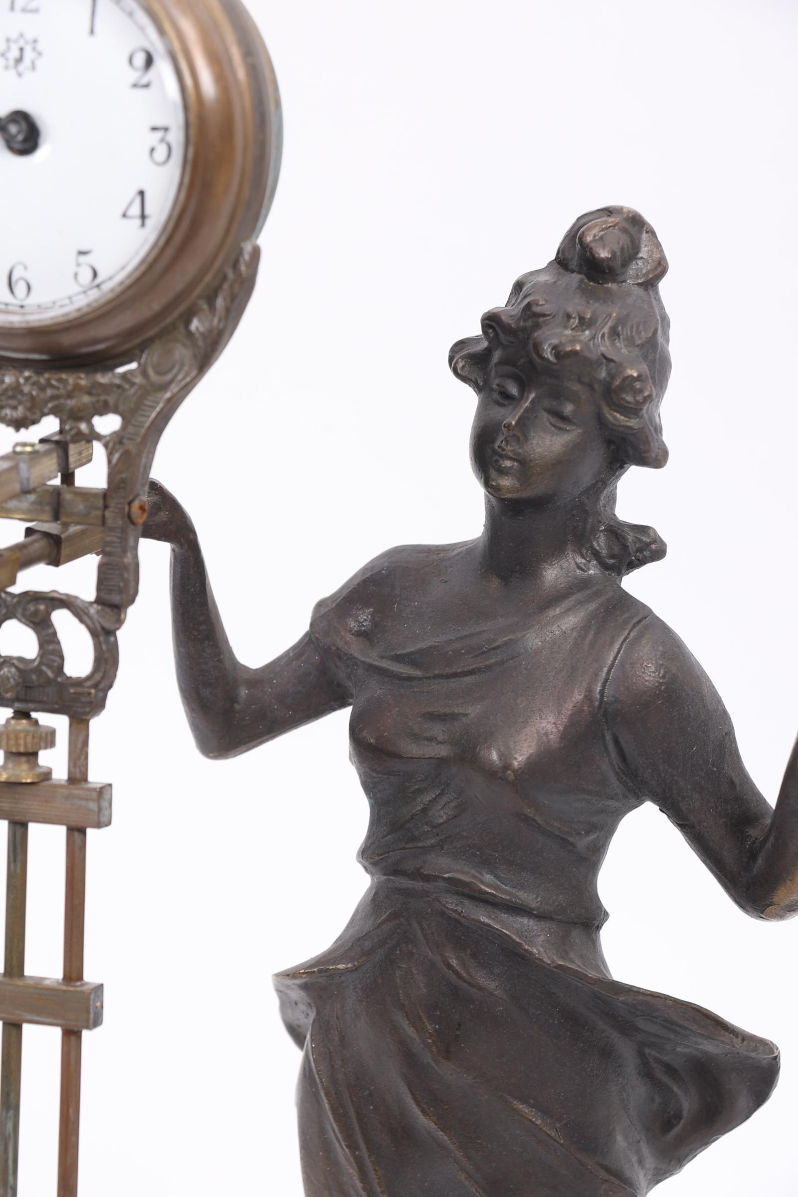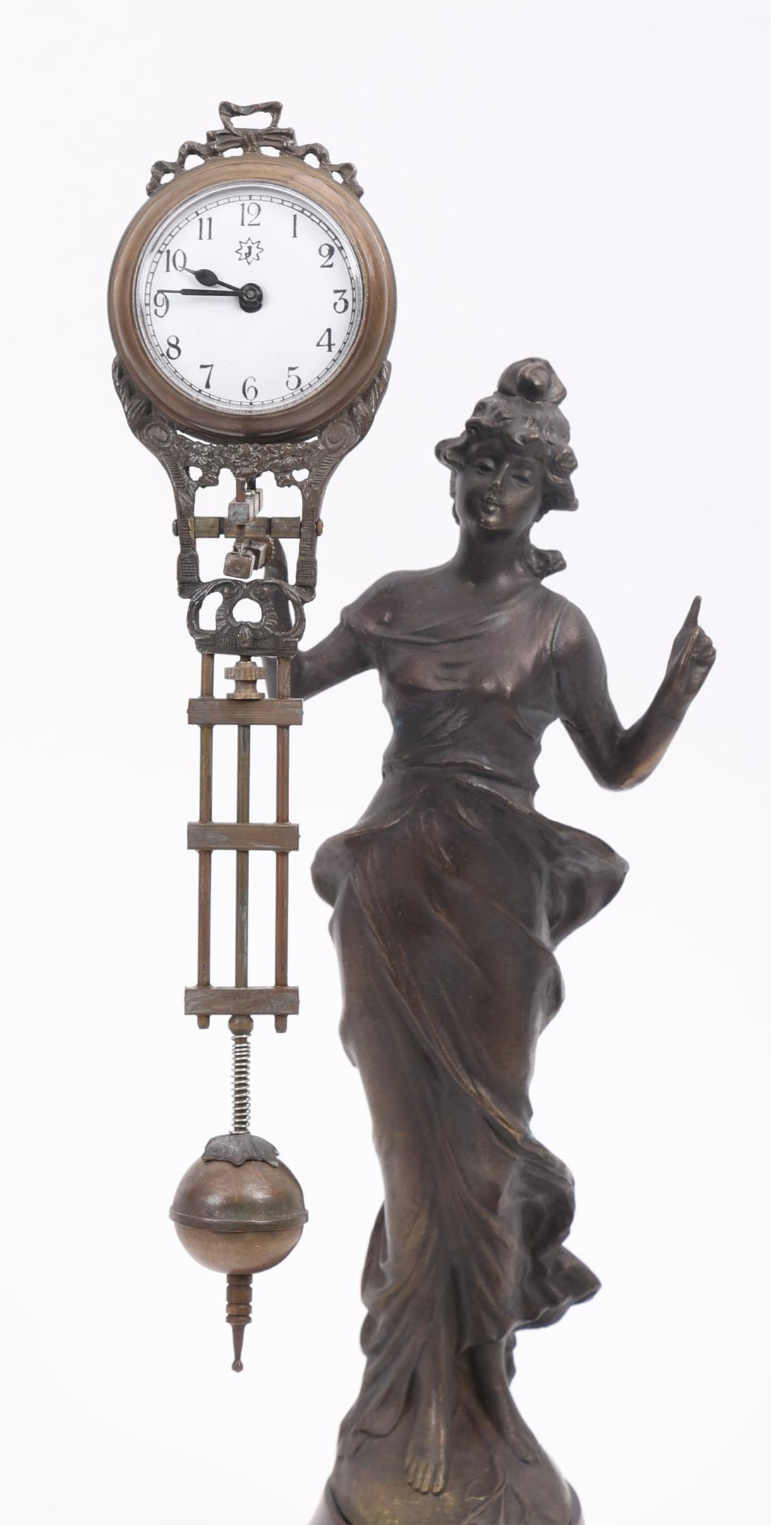 Bronzen mysterieus klokje, h.35 cm.