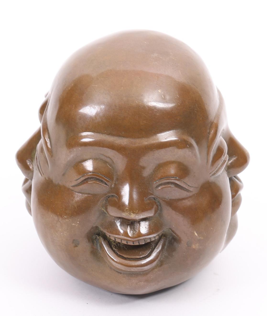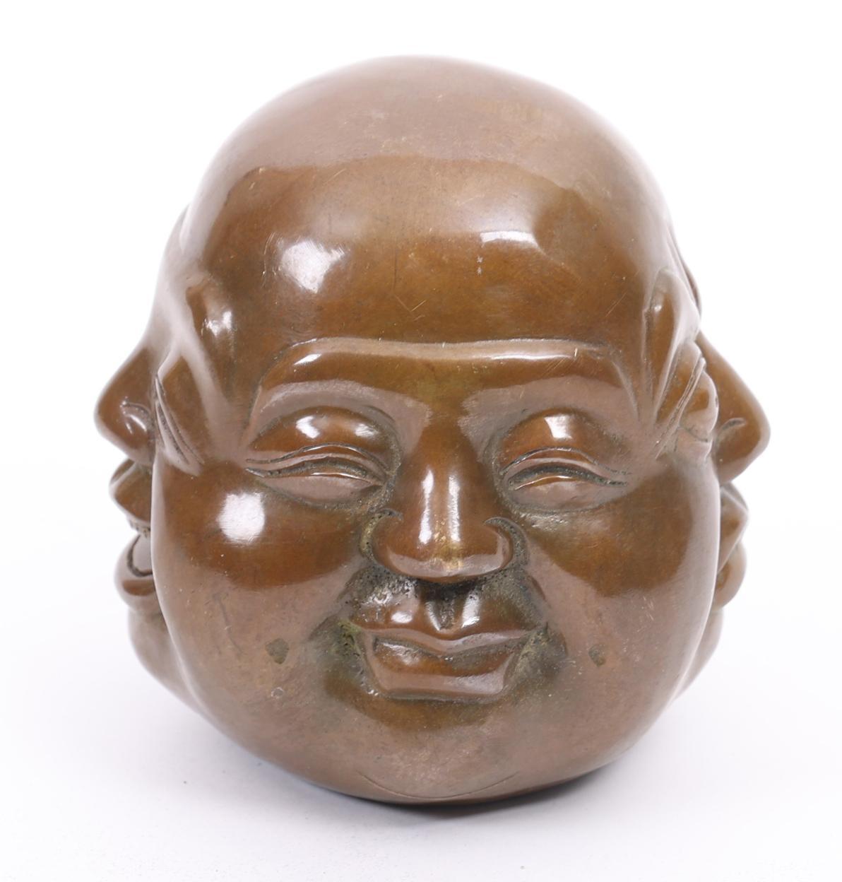 Bronzen Boeddha hoofd met 4 gezichtsuitdrukkingen, h.12 cm.
