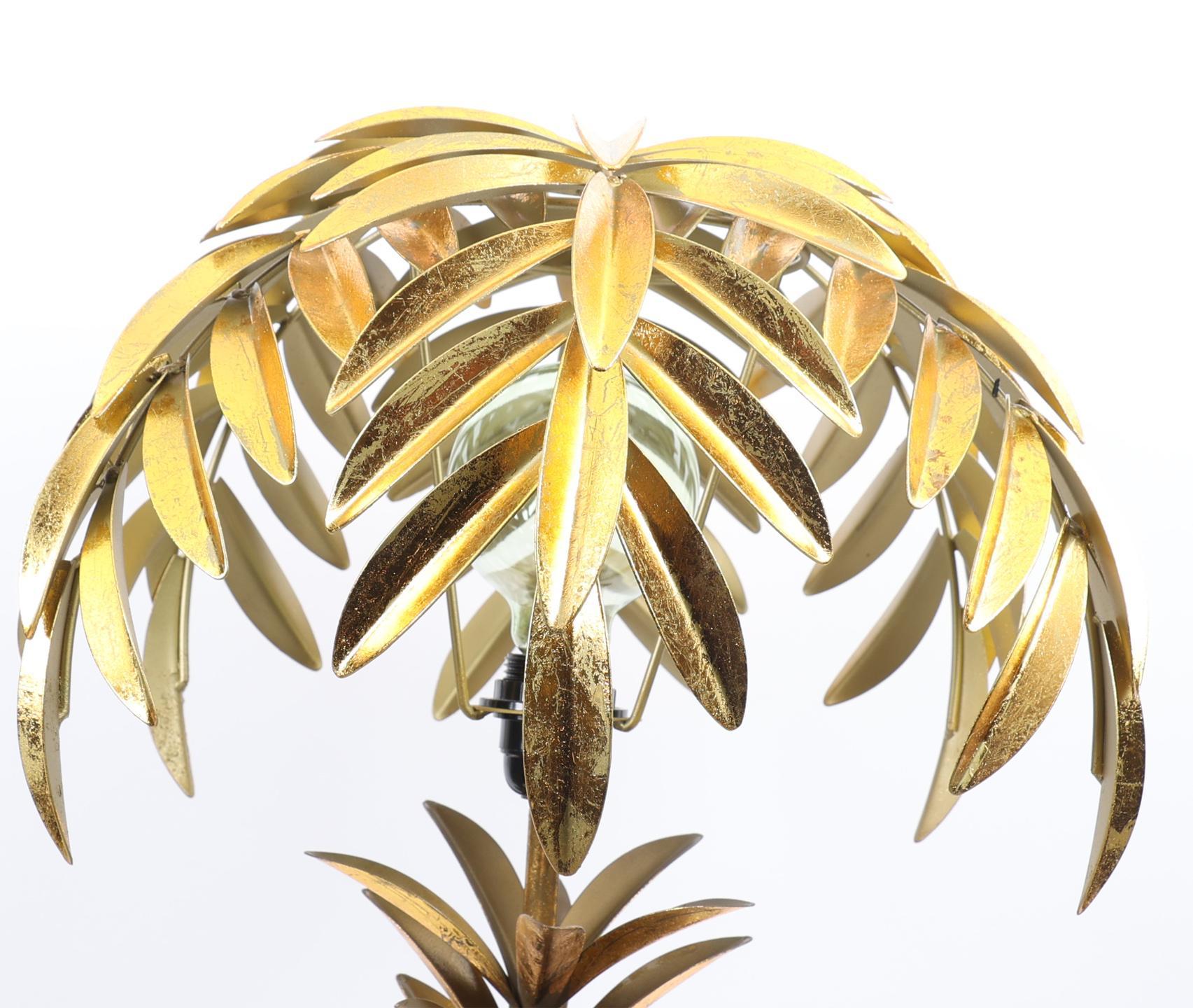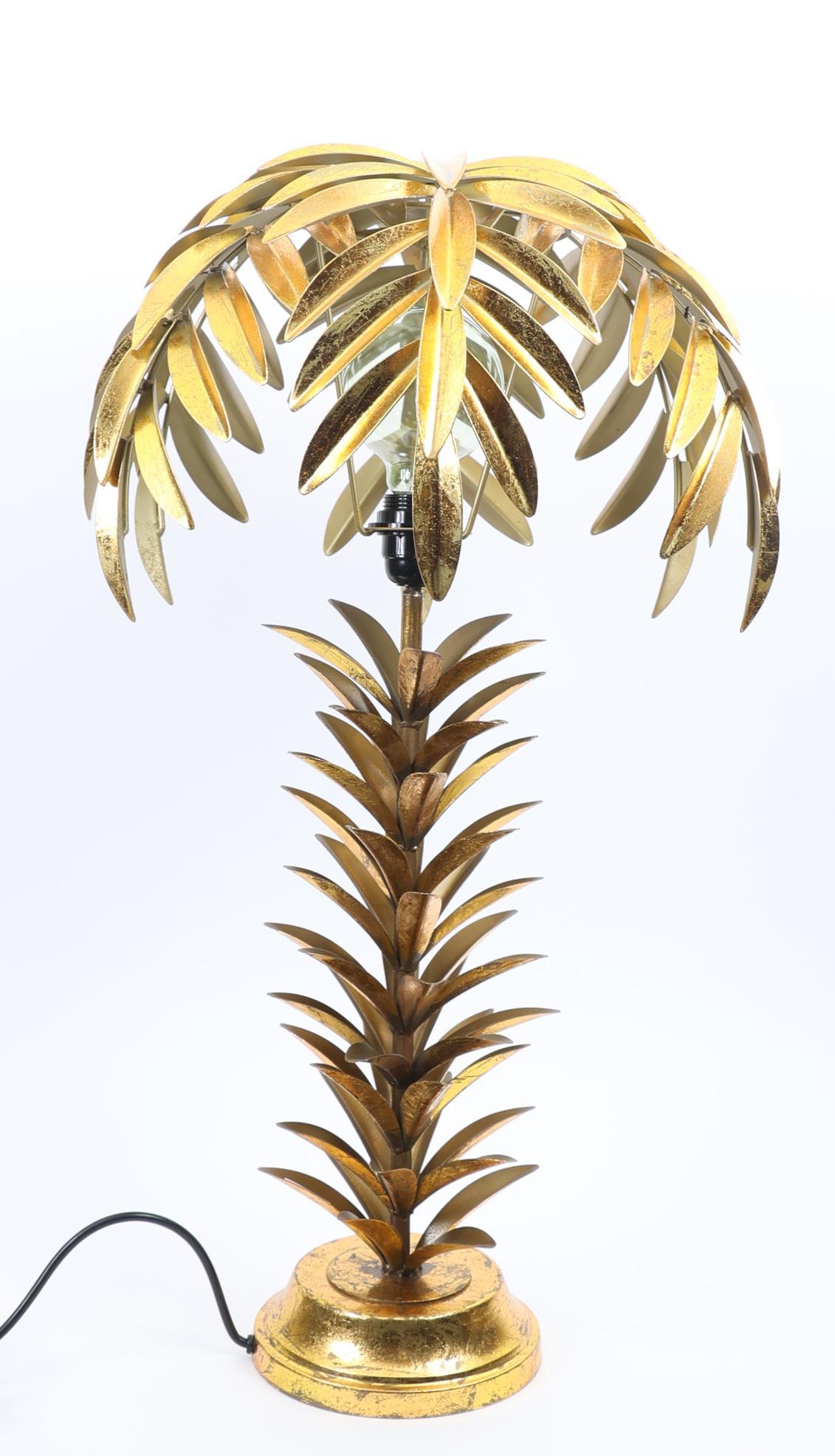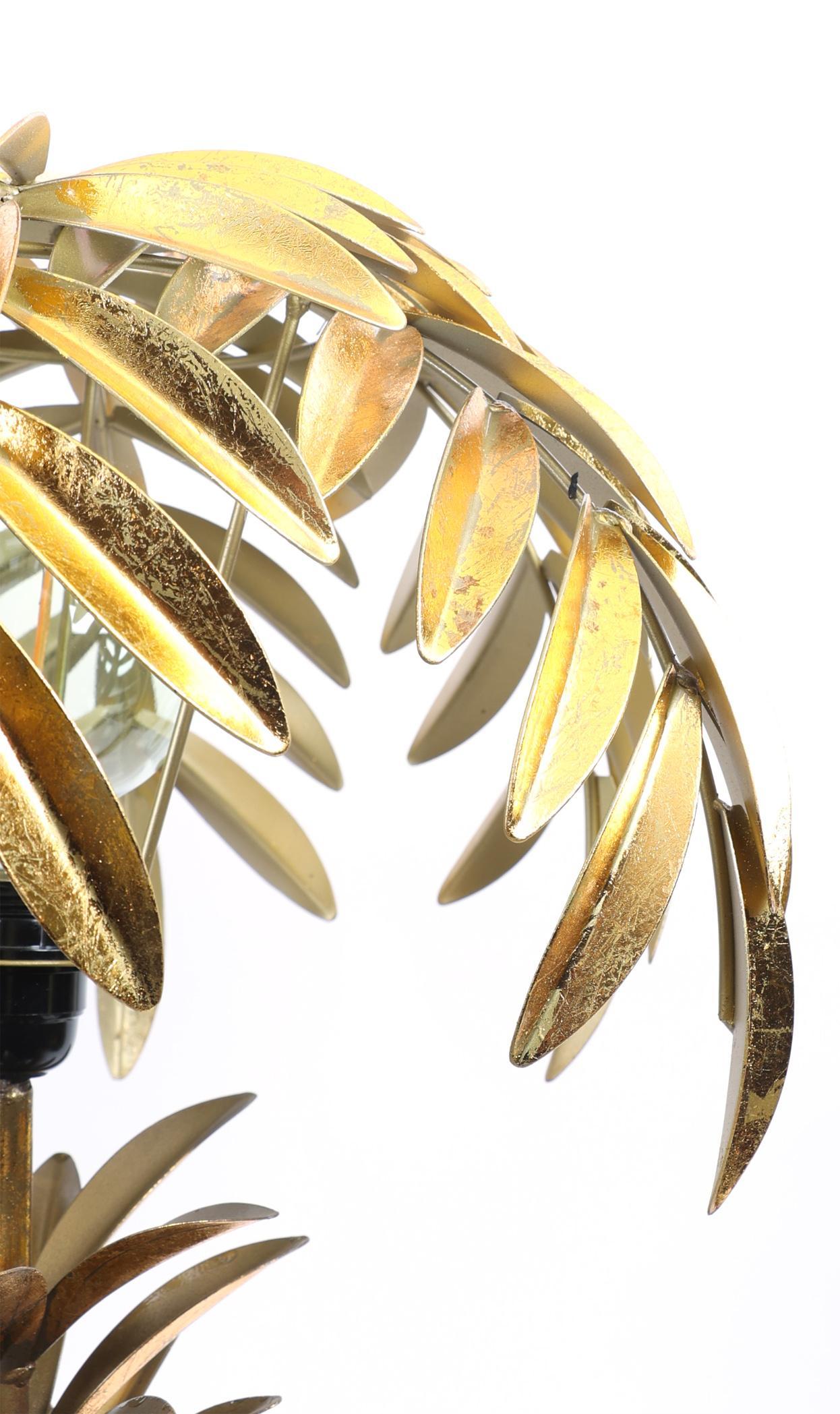 Gouden tafellamp i.v.v. een palmboom, h.72 cm.