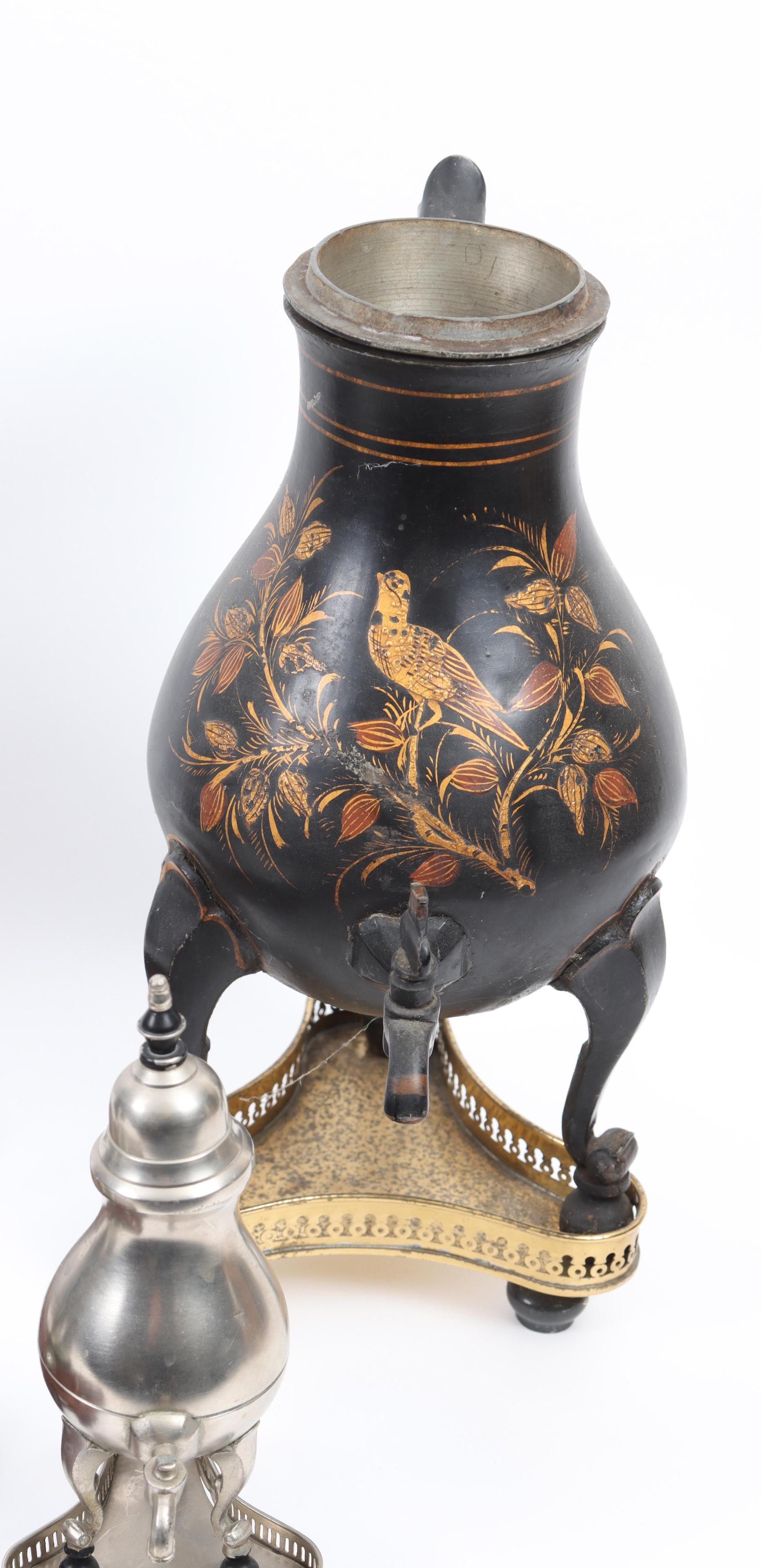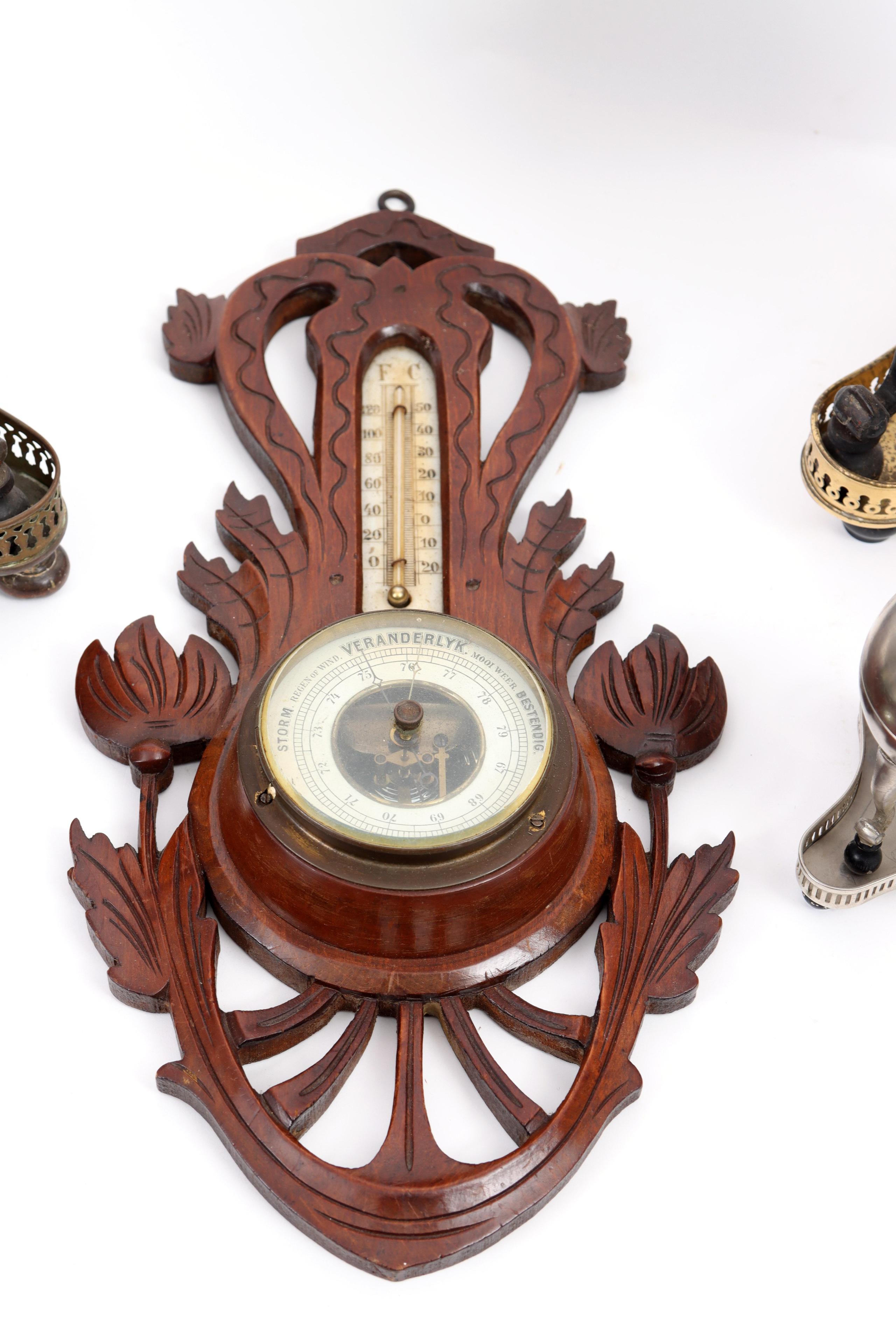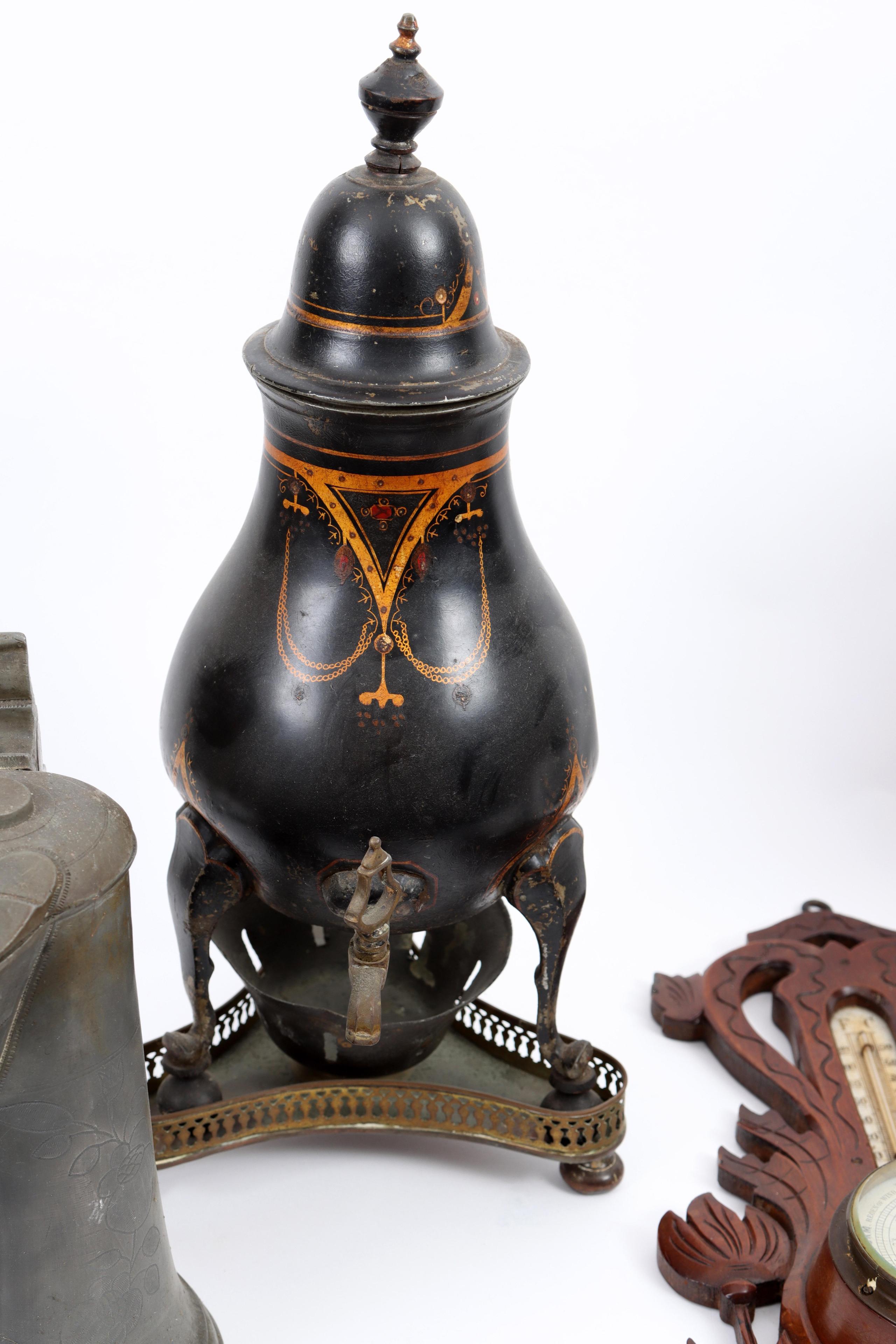 Koop van 2 antieke tinnen miniatuur kraankannen met klepkan en barometer