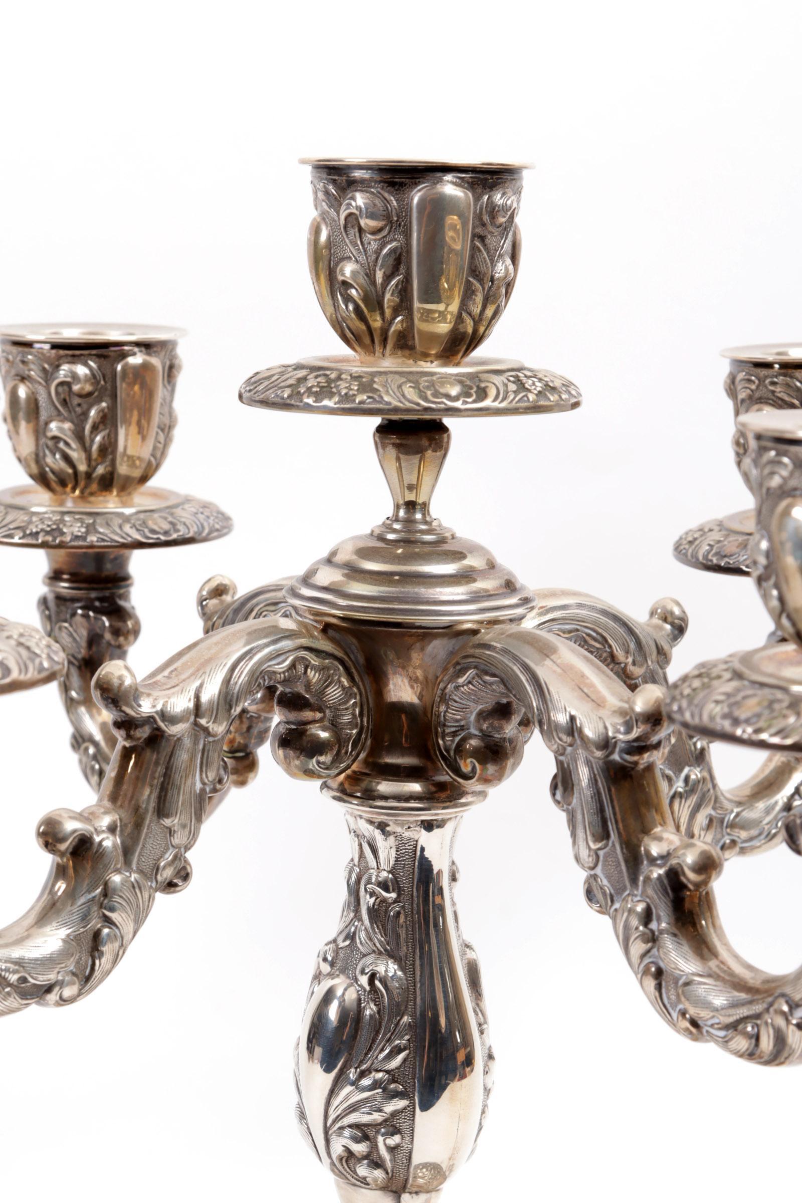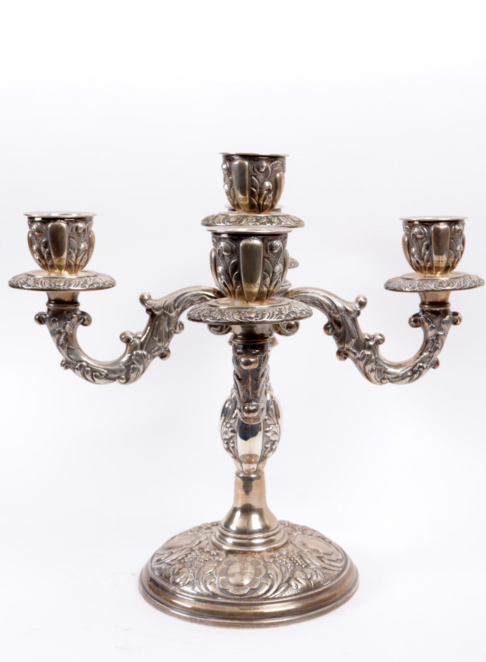 Grote verzilverde 5-lichts kandelaar, h.39 x diam.40 cm.