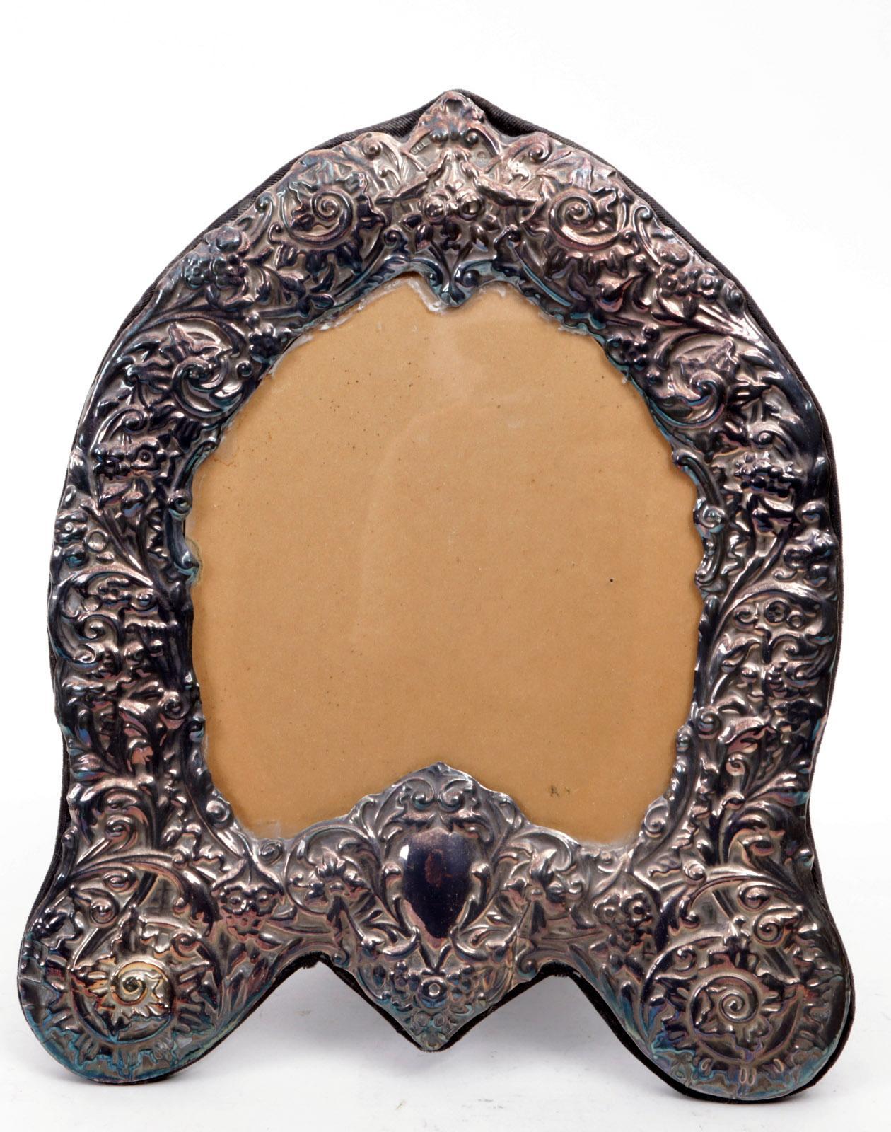 Rijkbewerkte Engelse zilveren fotolijst, h.29 x b.26 cm.