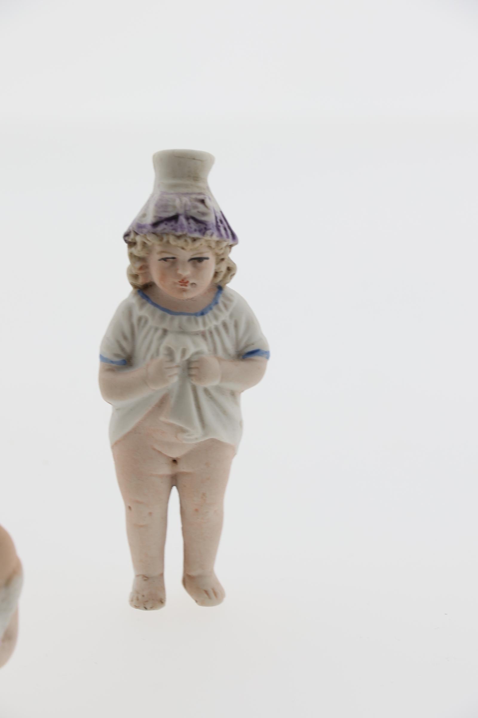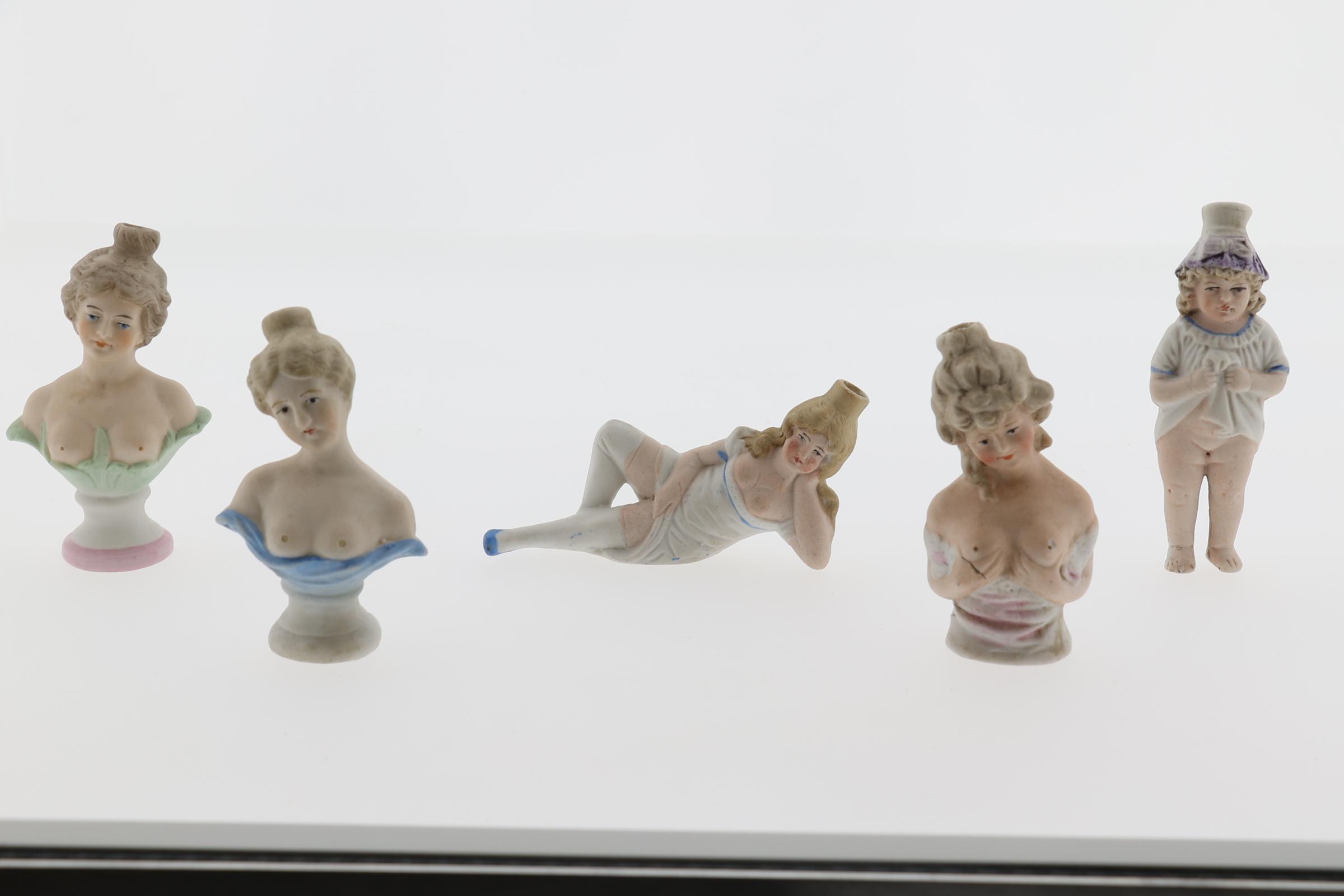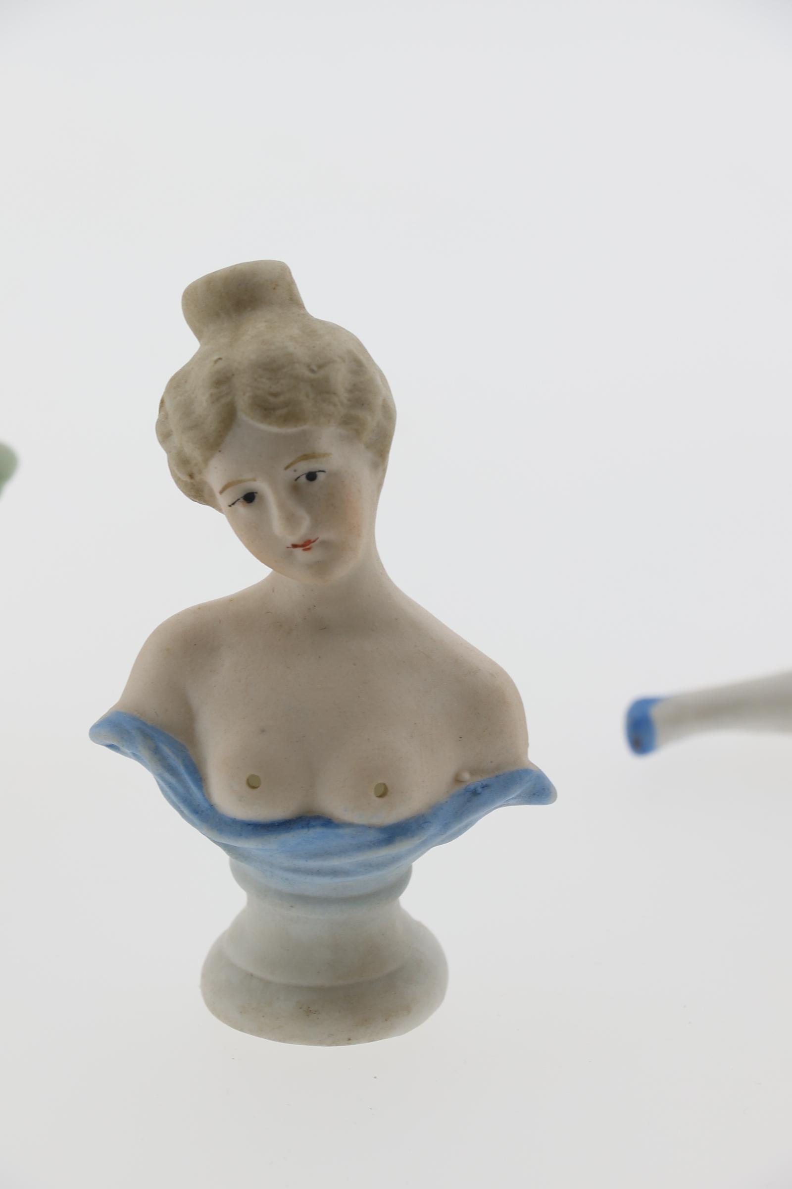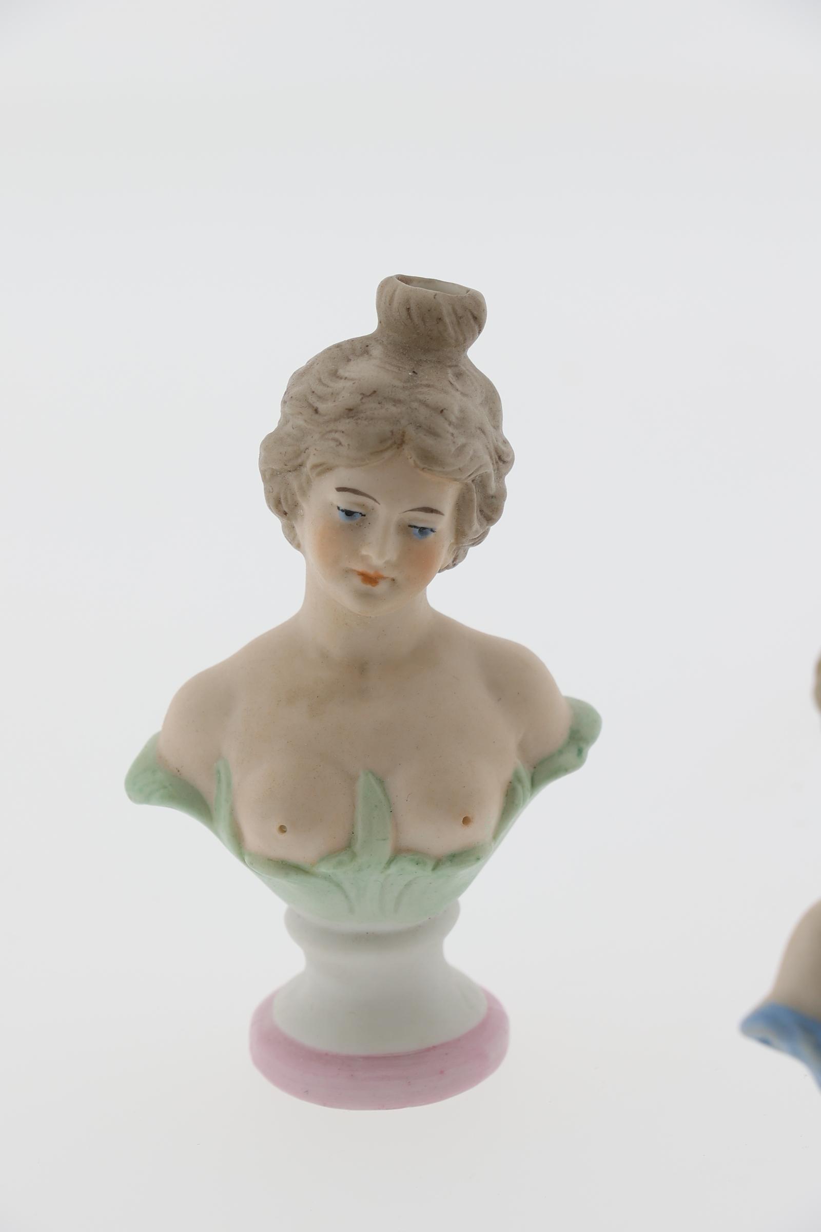 Koop van biscuit odeurflacons met voorstelling van bustes en vrouwen, 19e eeuw, ca.h.8 cm.