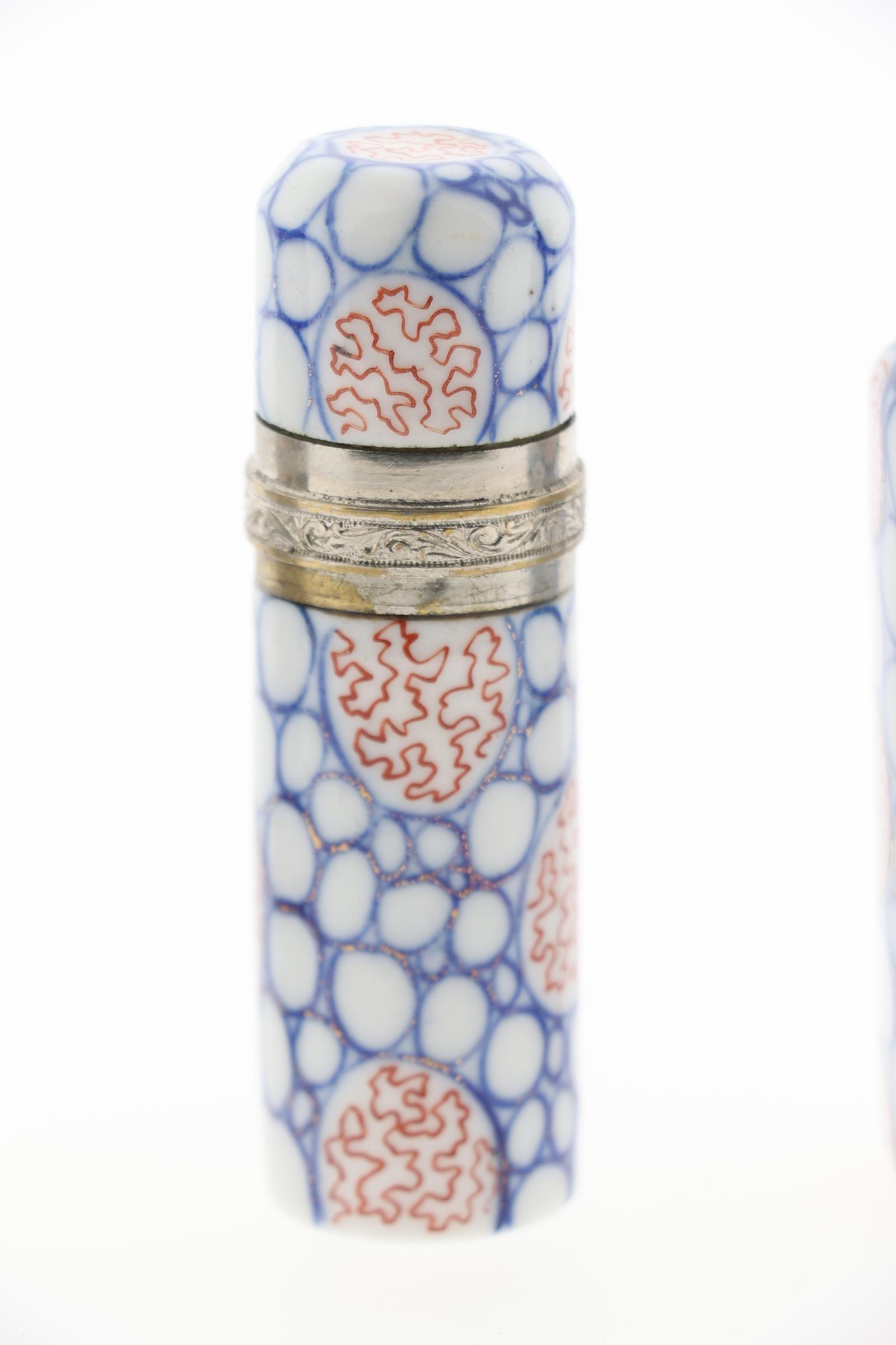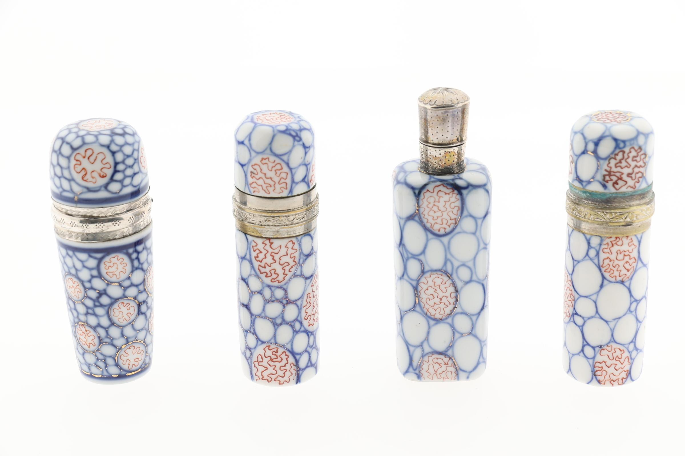 Koop van 4 Europees porseleinen odeurflacons w.o. met zilver, 19e eeuw, ca.h.8,5 cm.