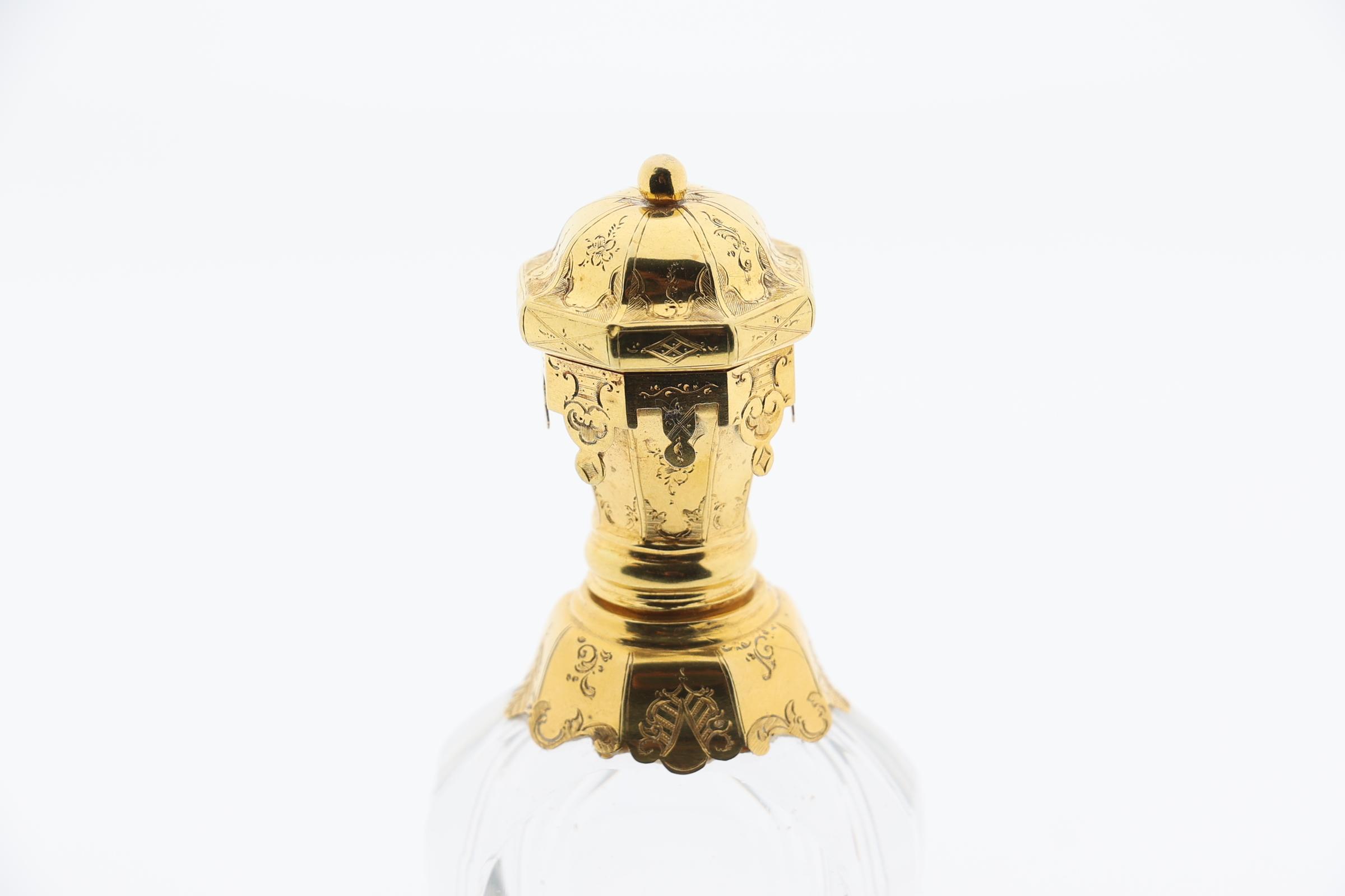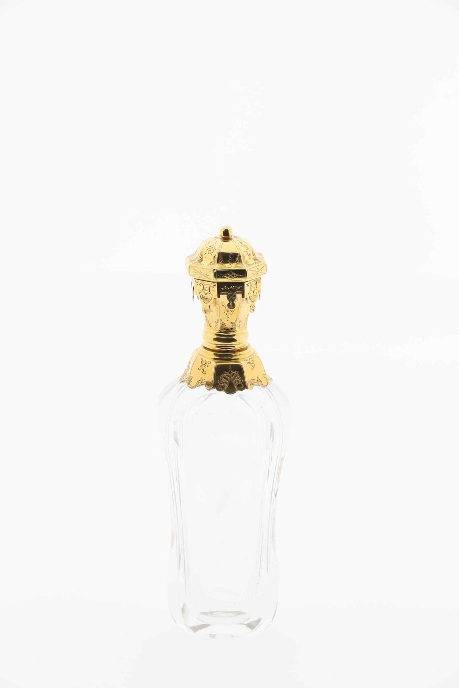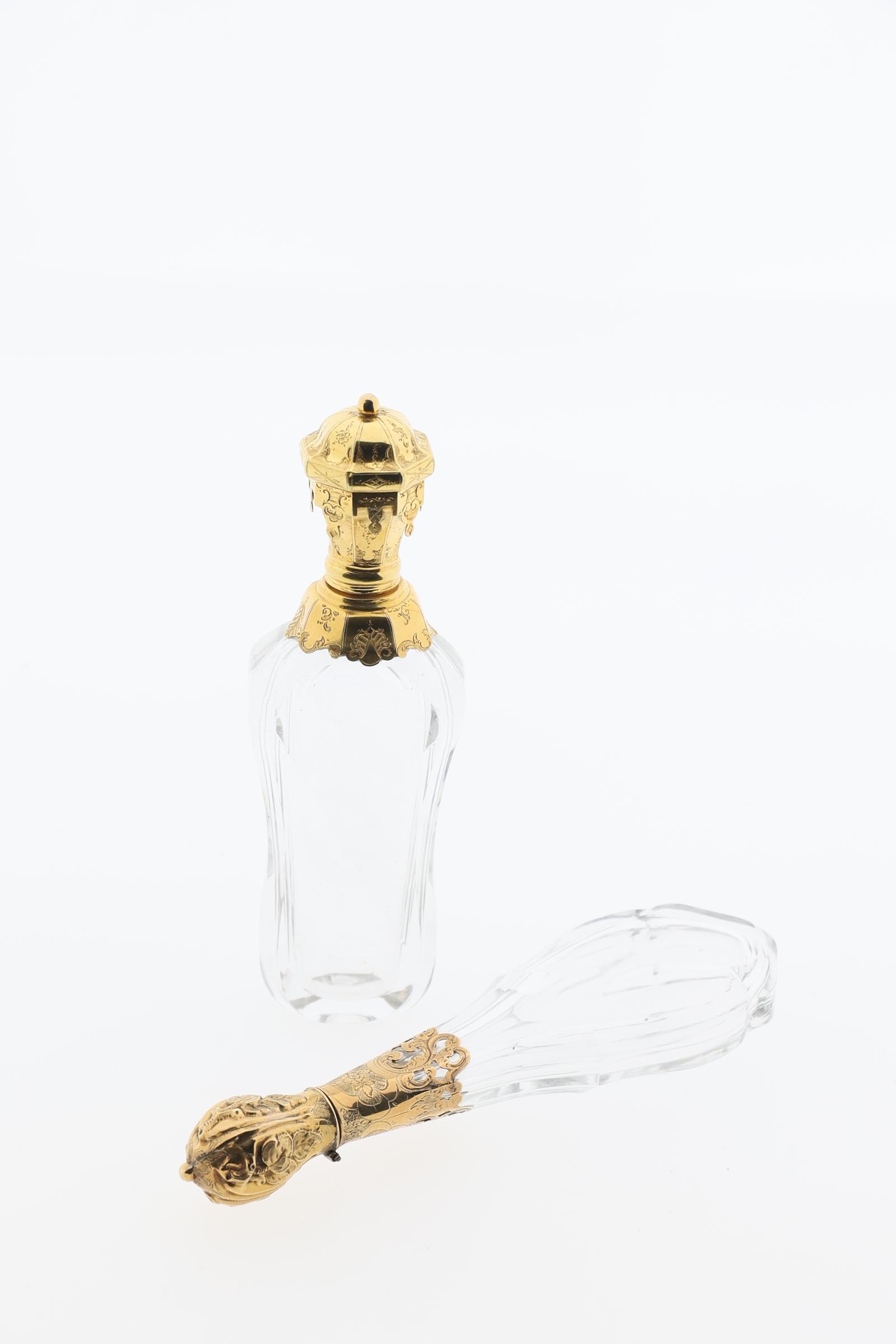 2 Kristallen met gouden odeurflacons, ca.L.13 cm., 19e eeuw