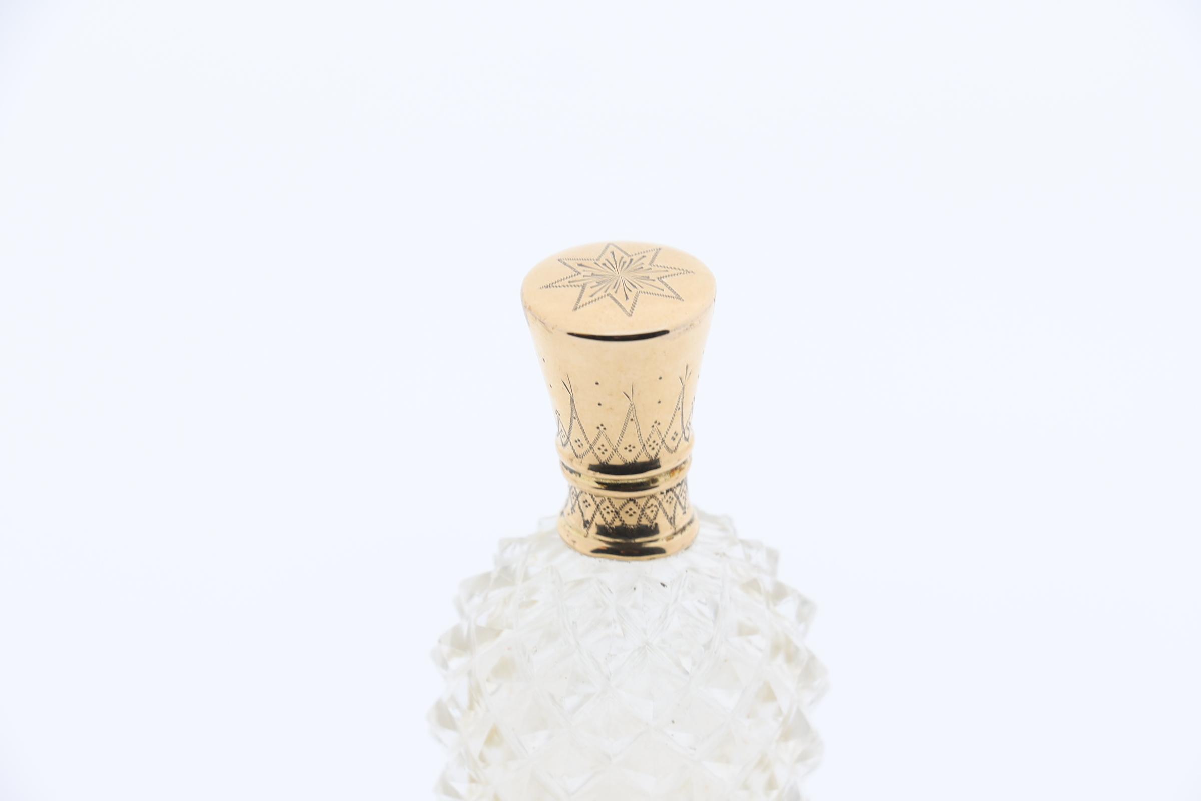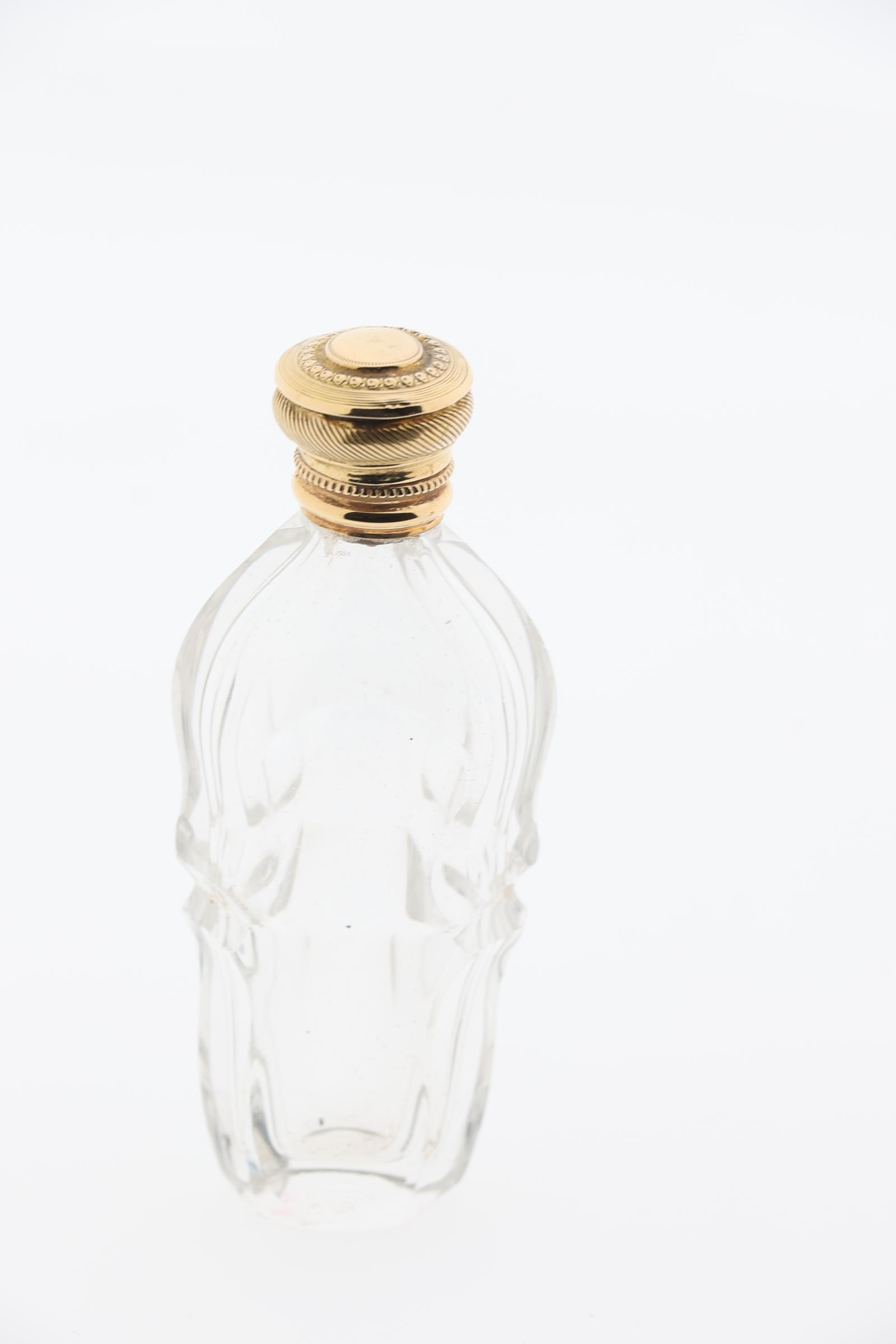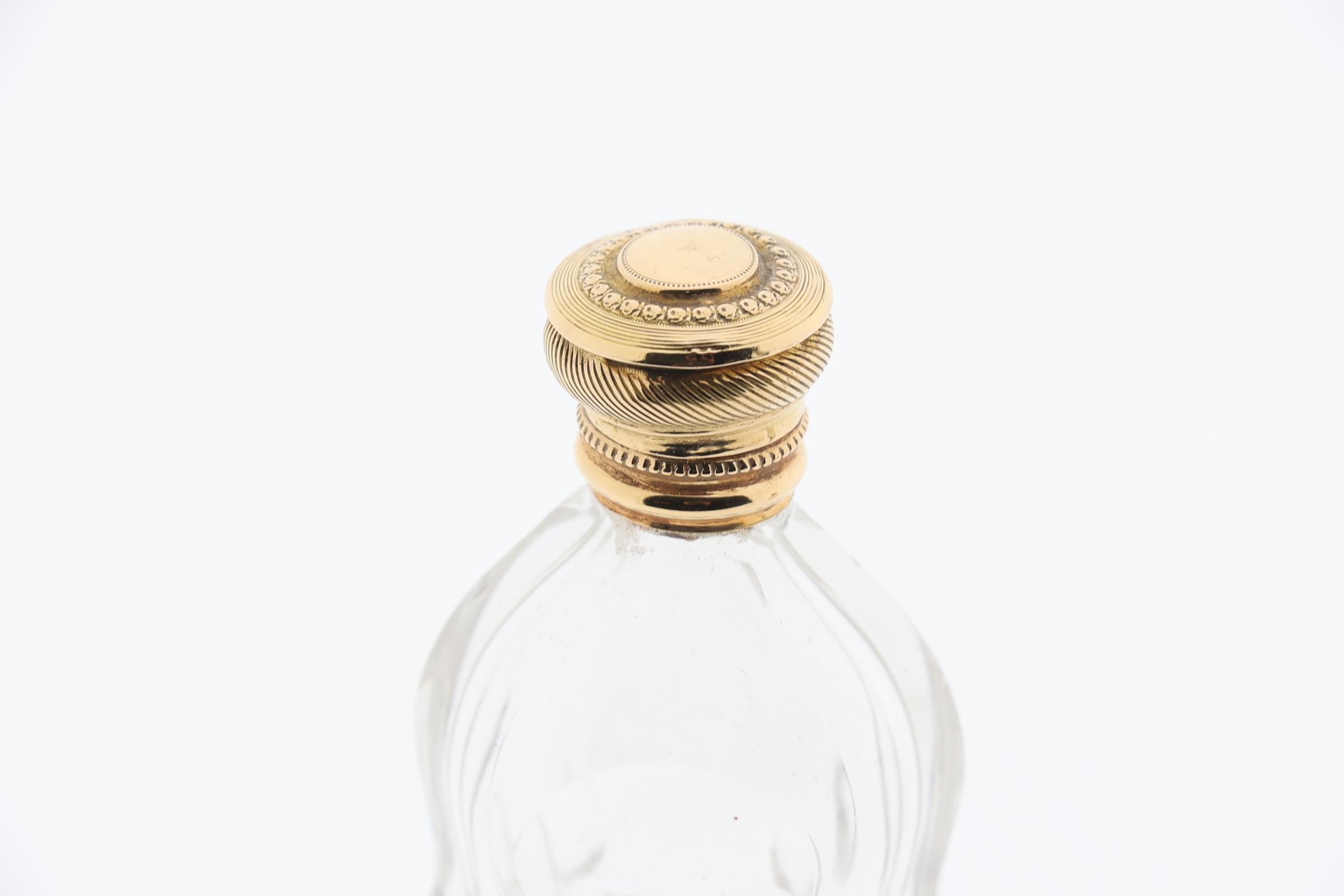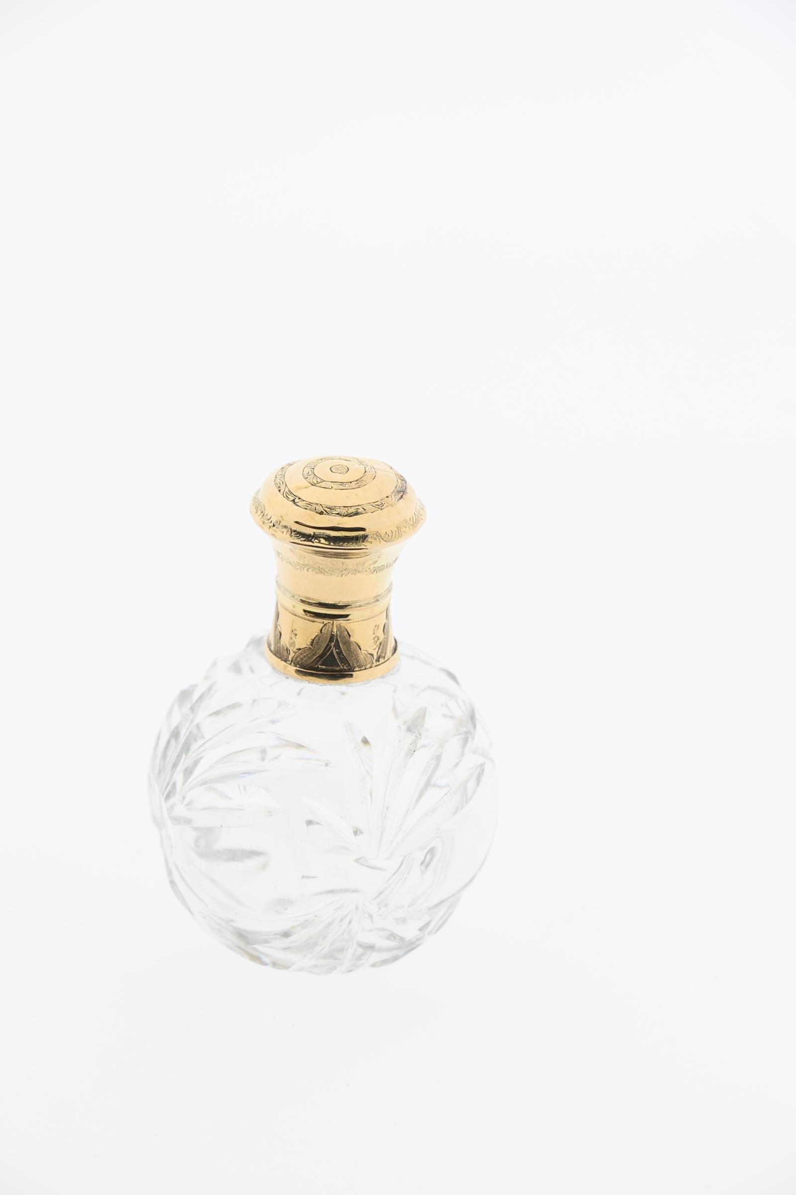 3 Kristallen met gouden odeurflacons met gouden dop, 19e eeuw, h.11, 10 en 7 cm.