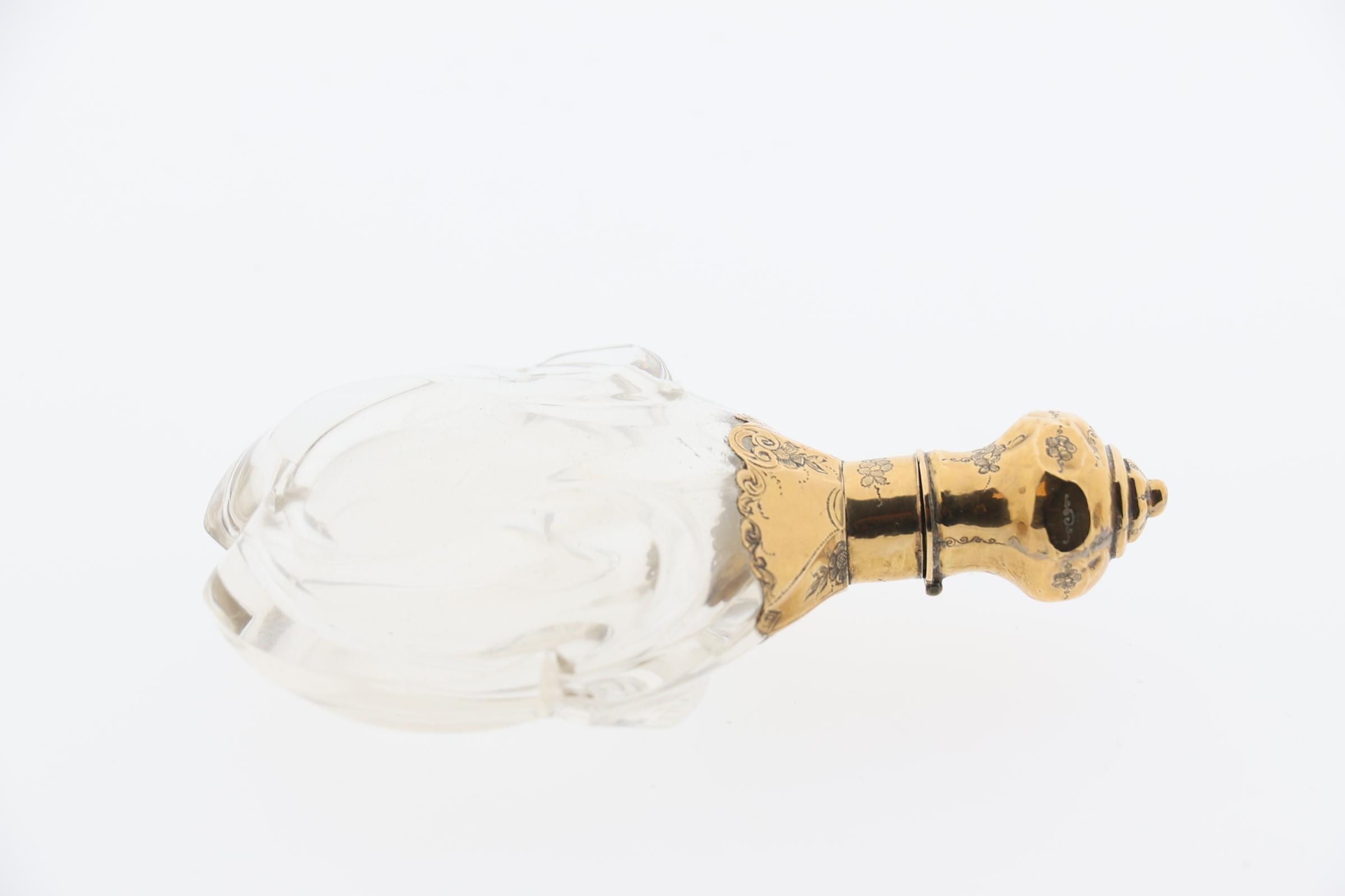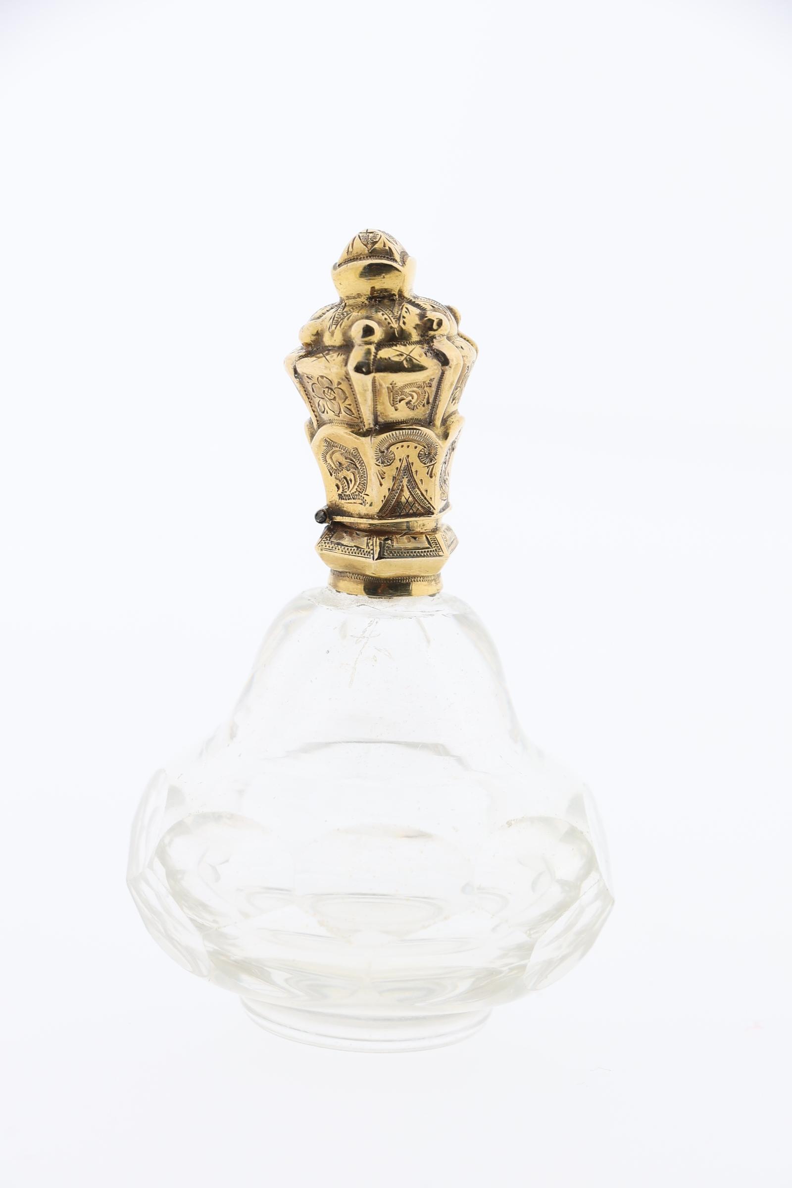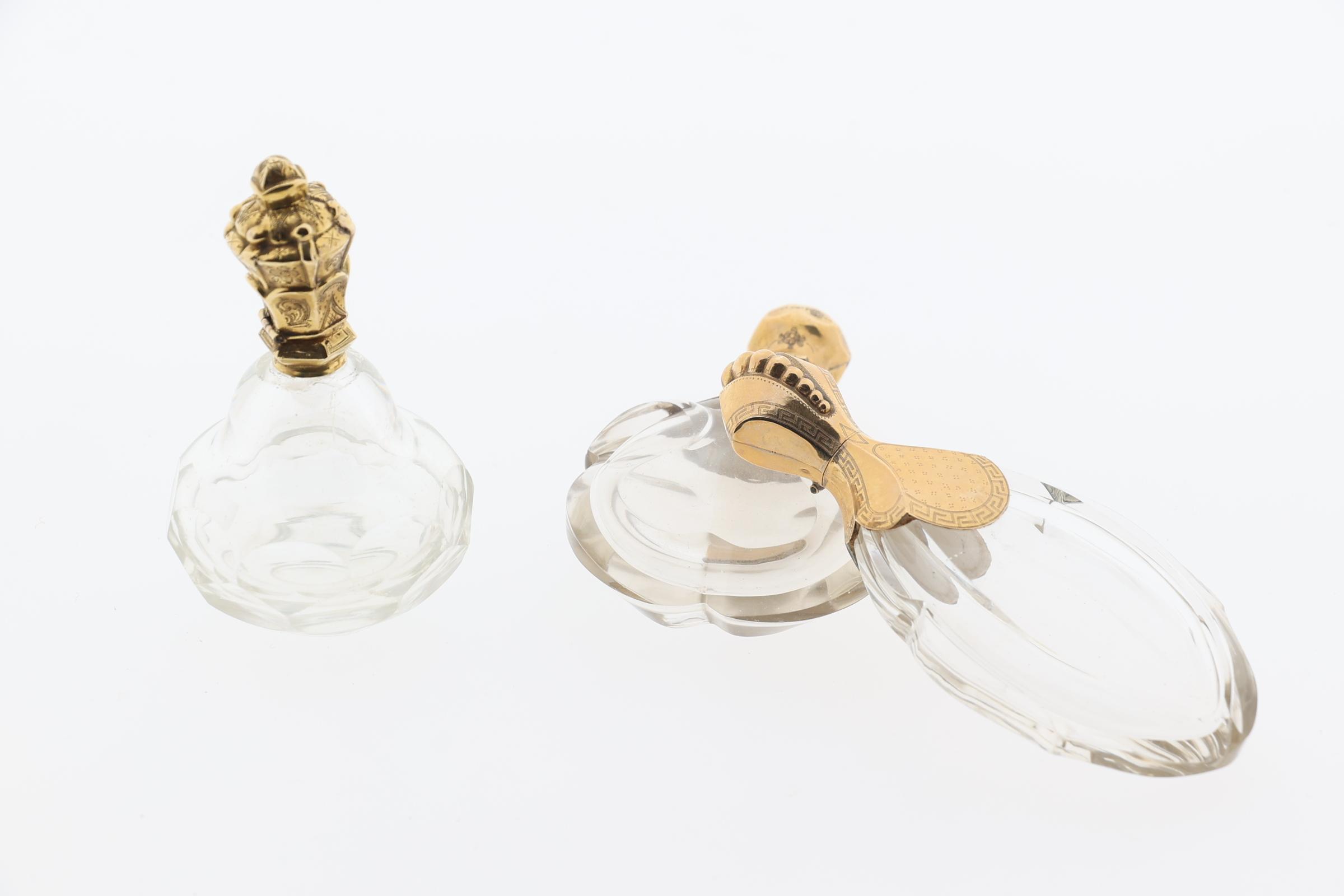 3 Kristallen met gouden odeurflacons, 19e eeuw, h.8, 10 en 8 cm.