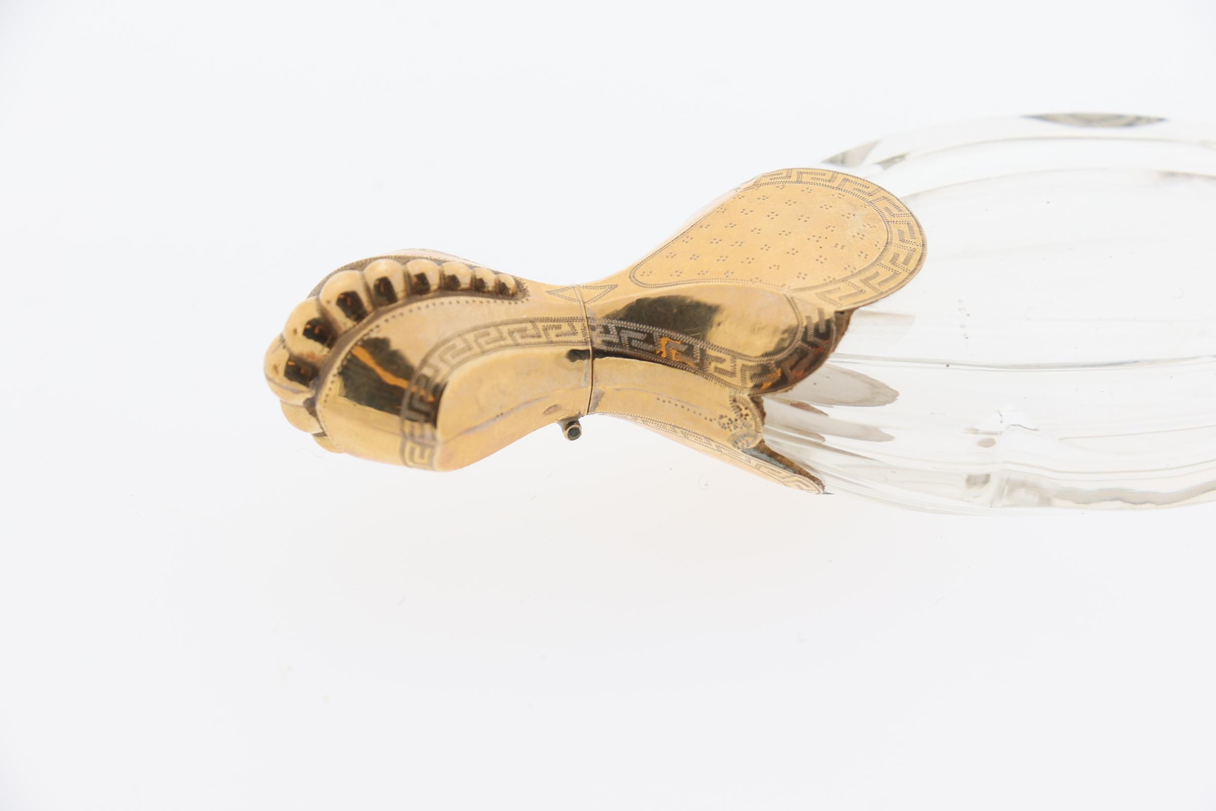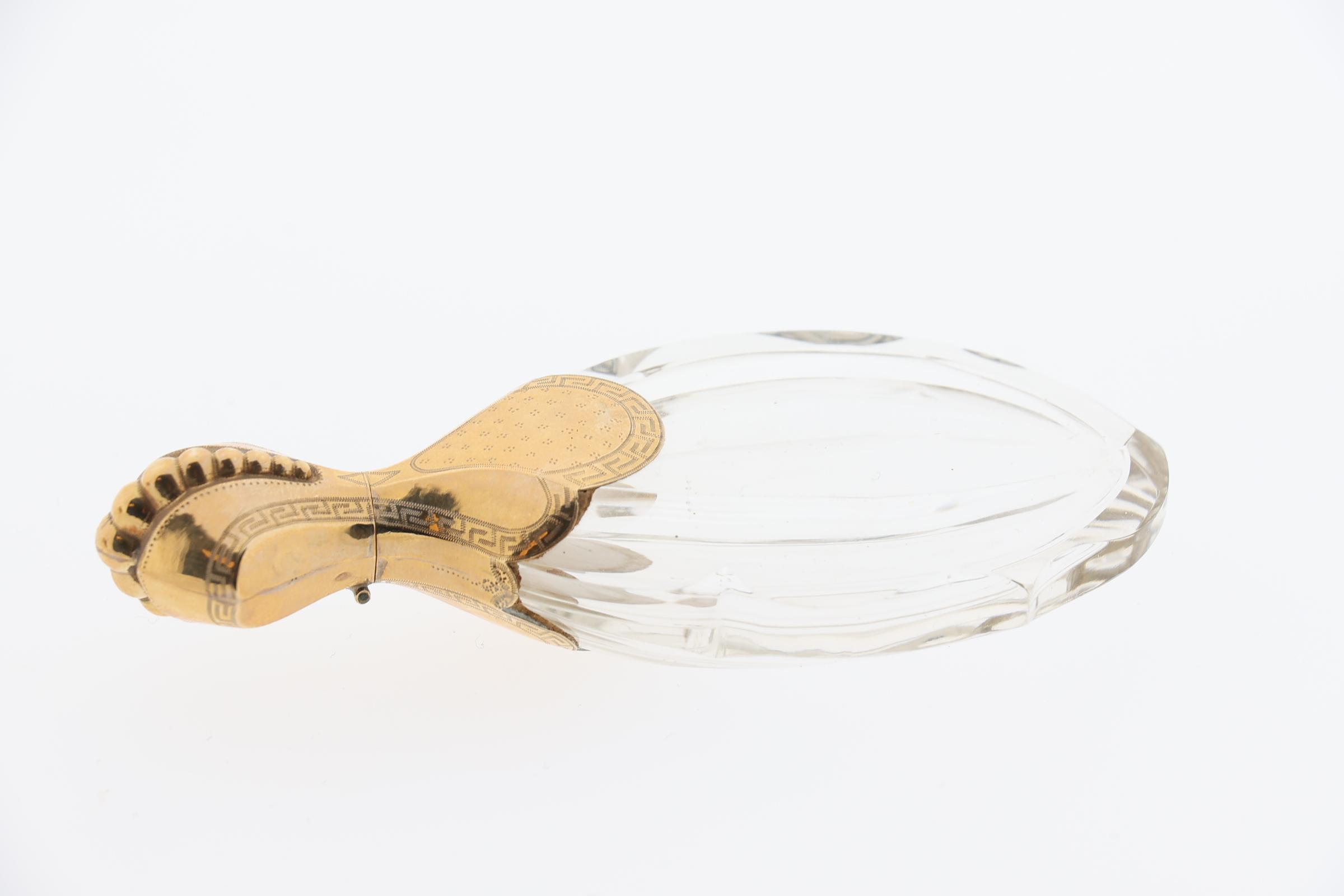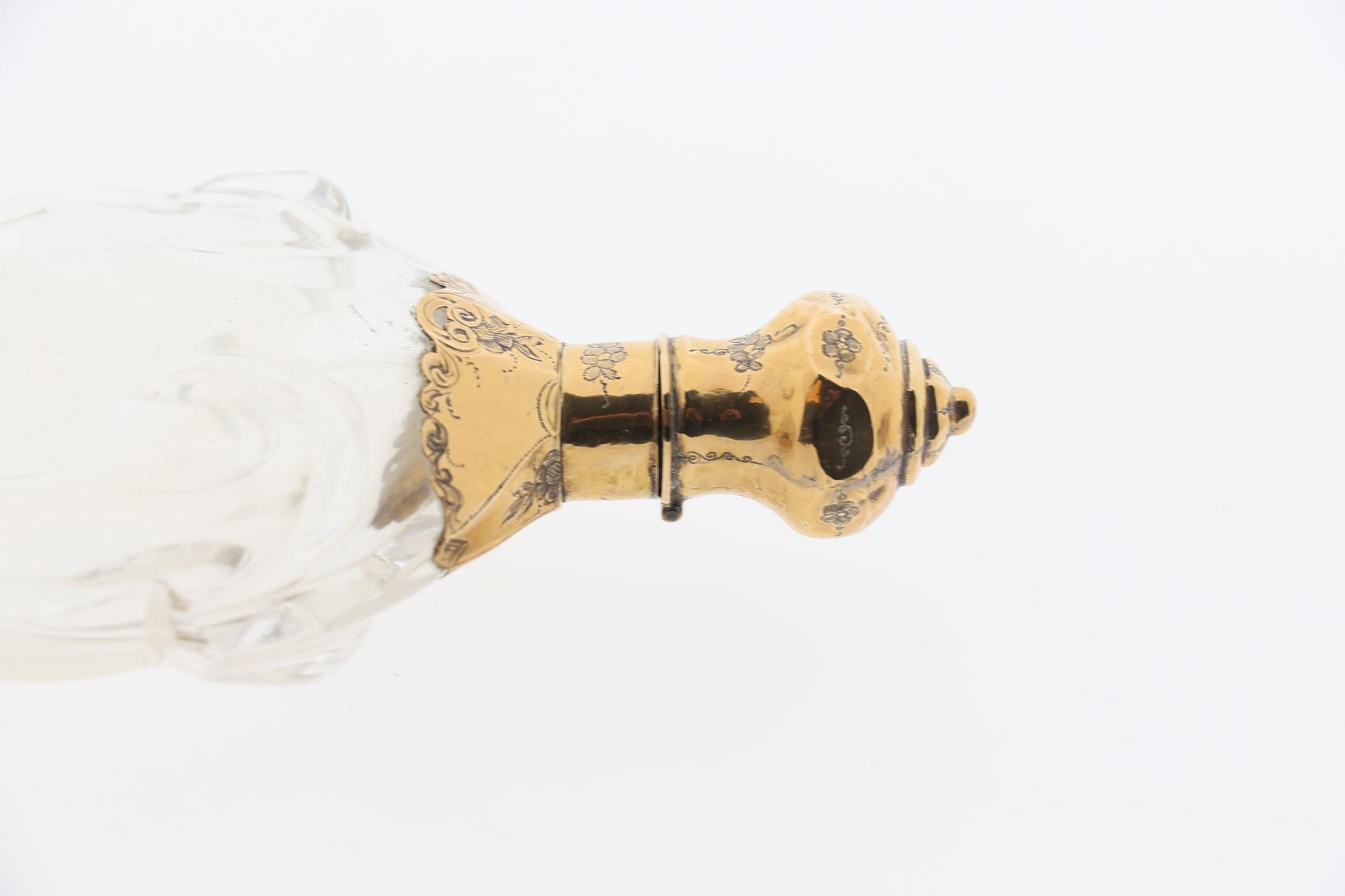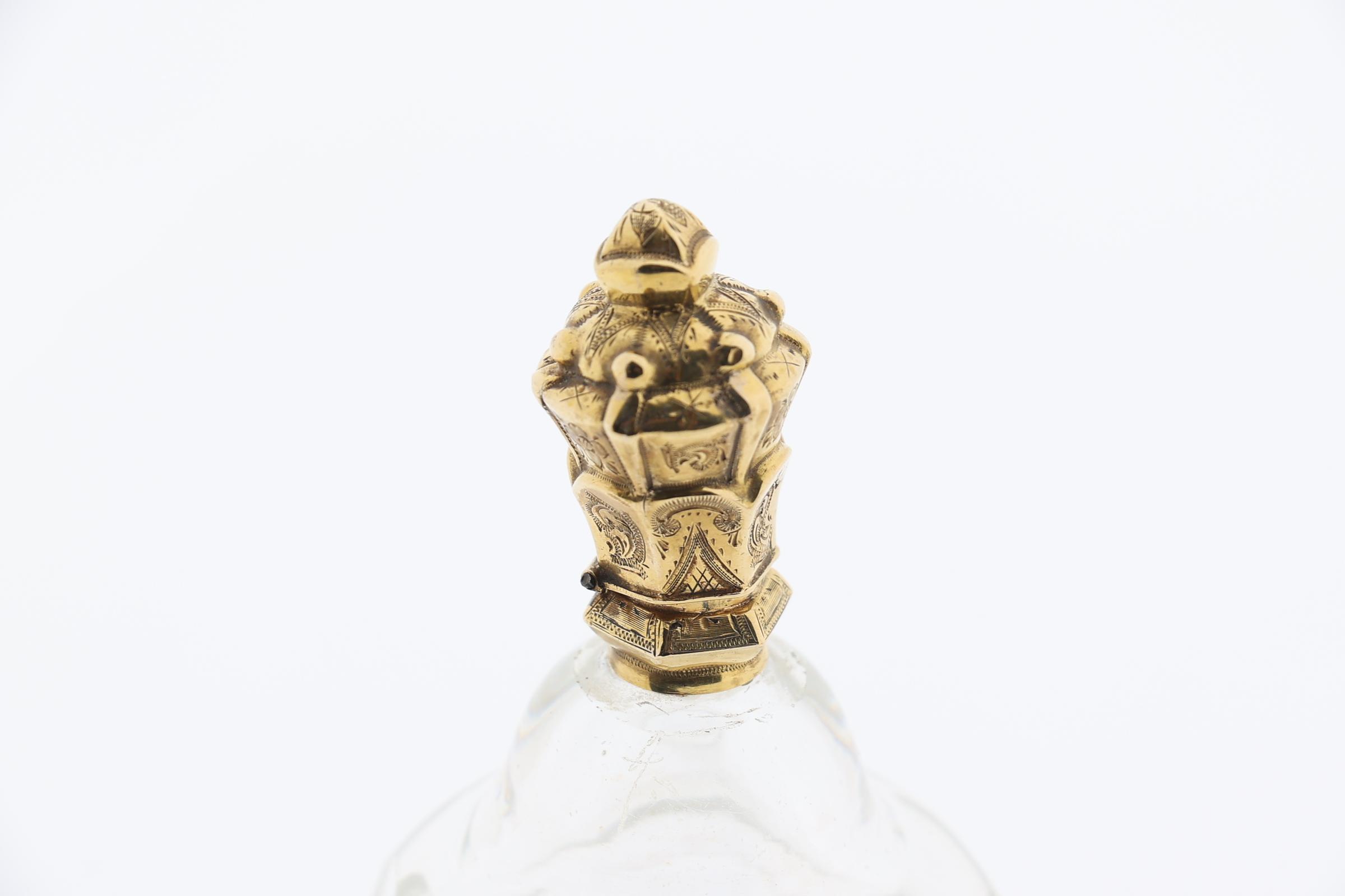 3 Kristallen met gouden odeurflacons, 19e eeuw, h.8, 10 en 8 cm.