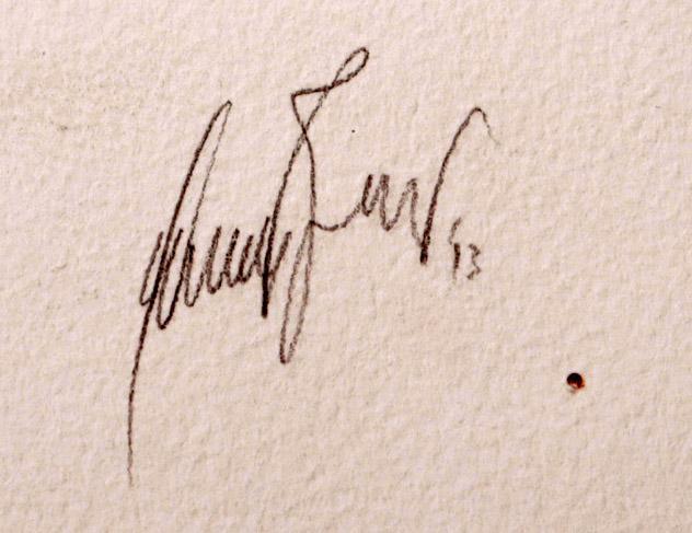 Wim Botha (1974), Zonder titel, handgesigneerde inkttekening op papier, gedateerd 2013, 41 x 55 cm.