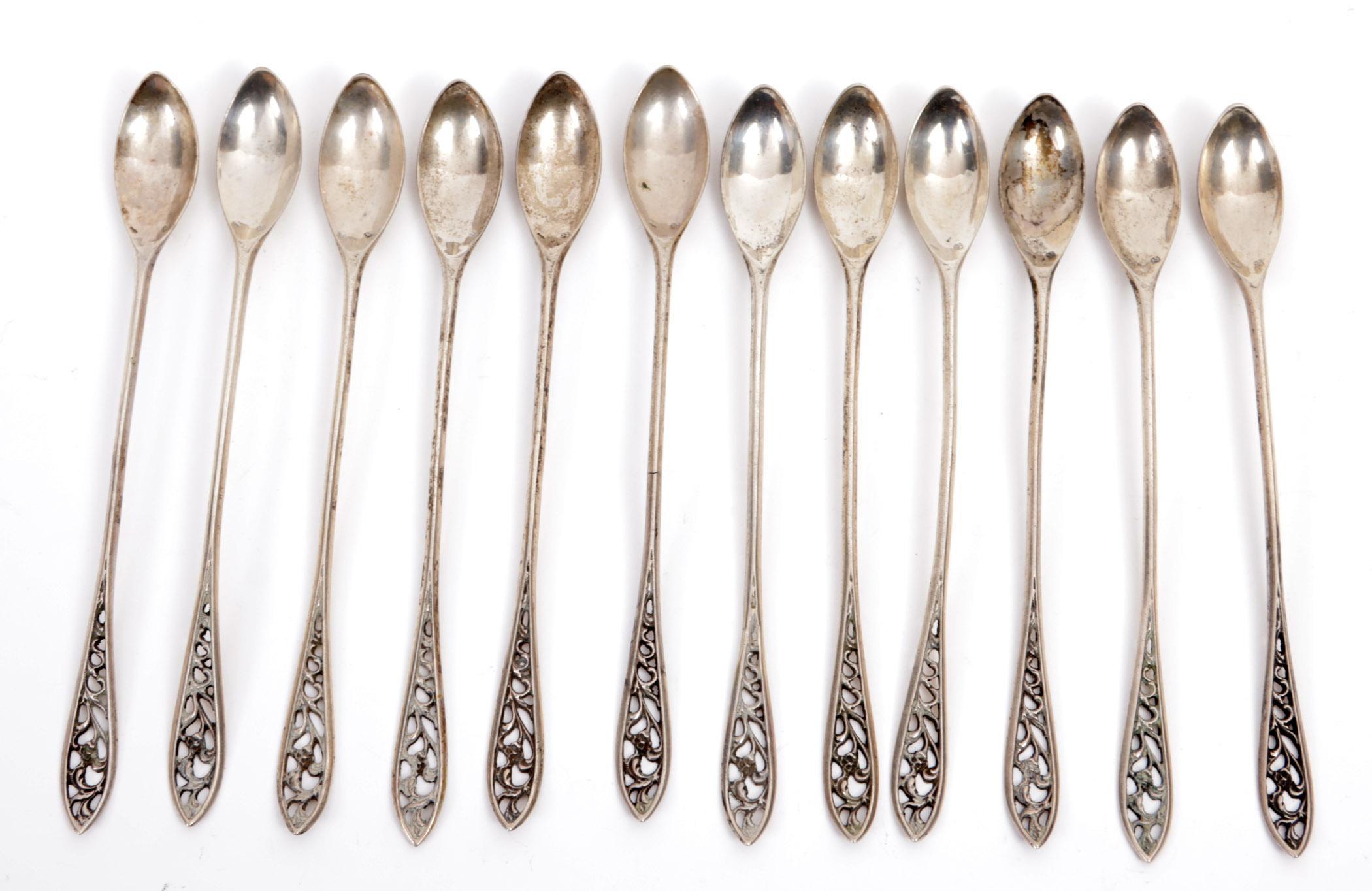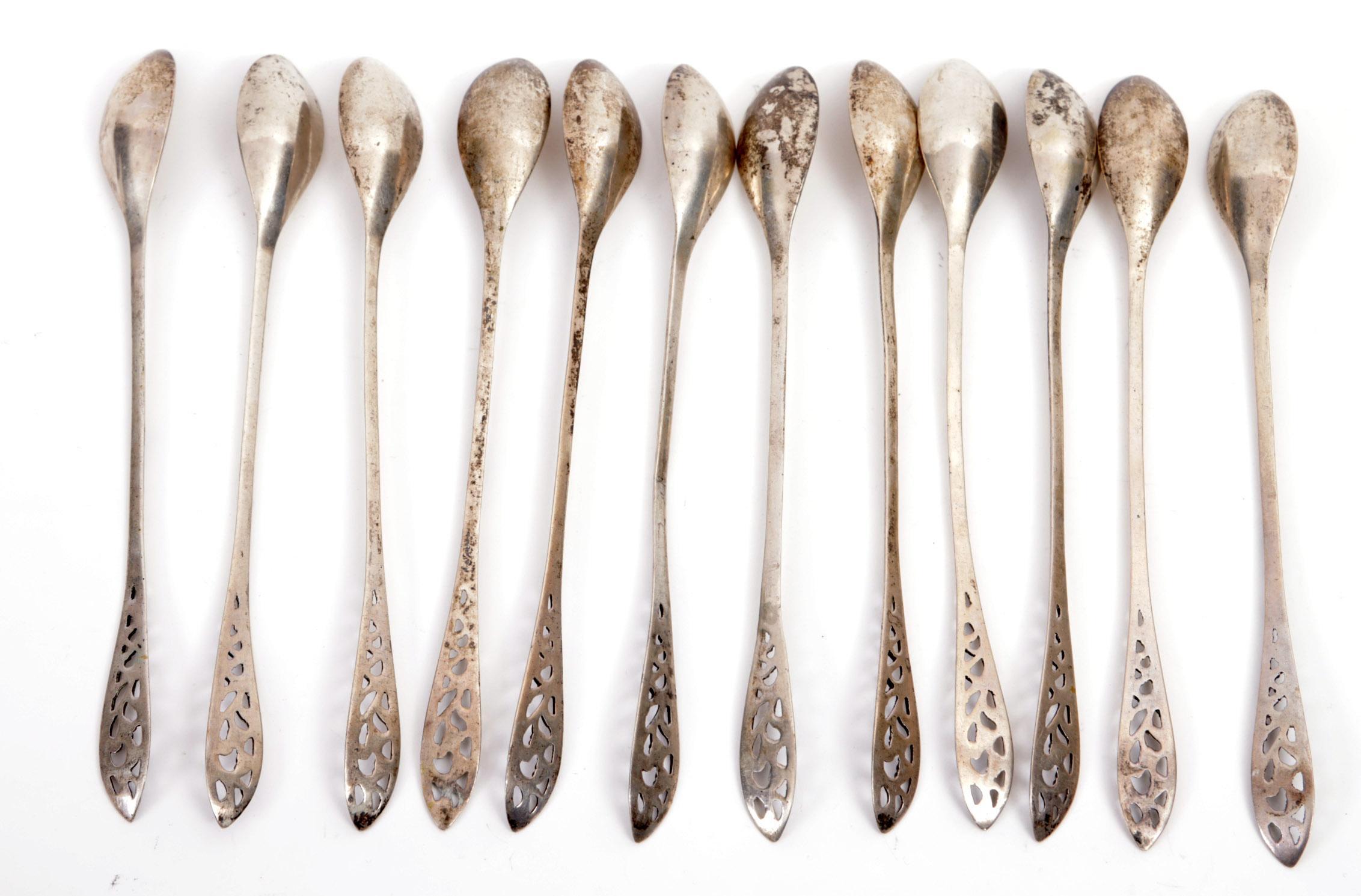 12 Opengewerkte 2e gehalte zilveren limonadelepels, 122 gram