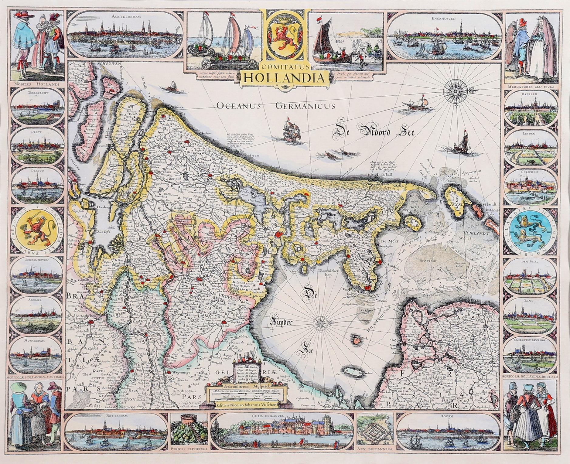 Ingekleurde kaart, Hollandia, 53 x 43 cm.