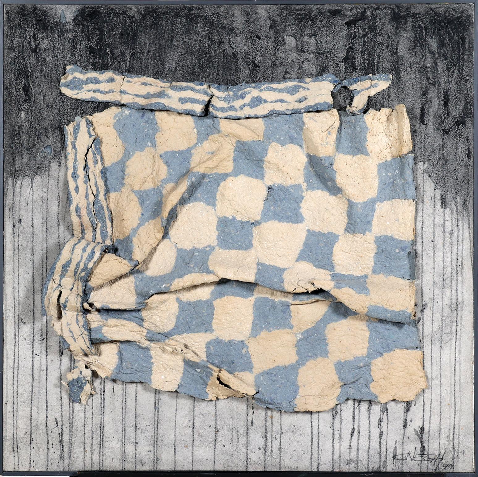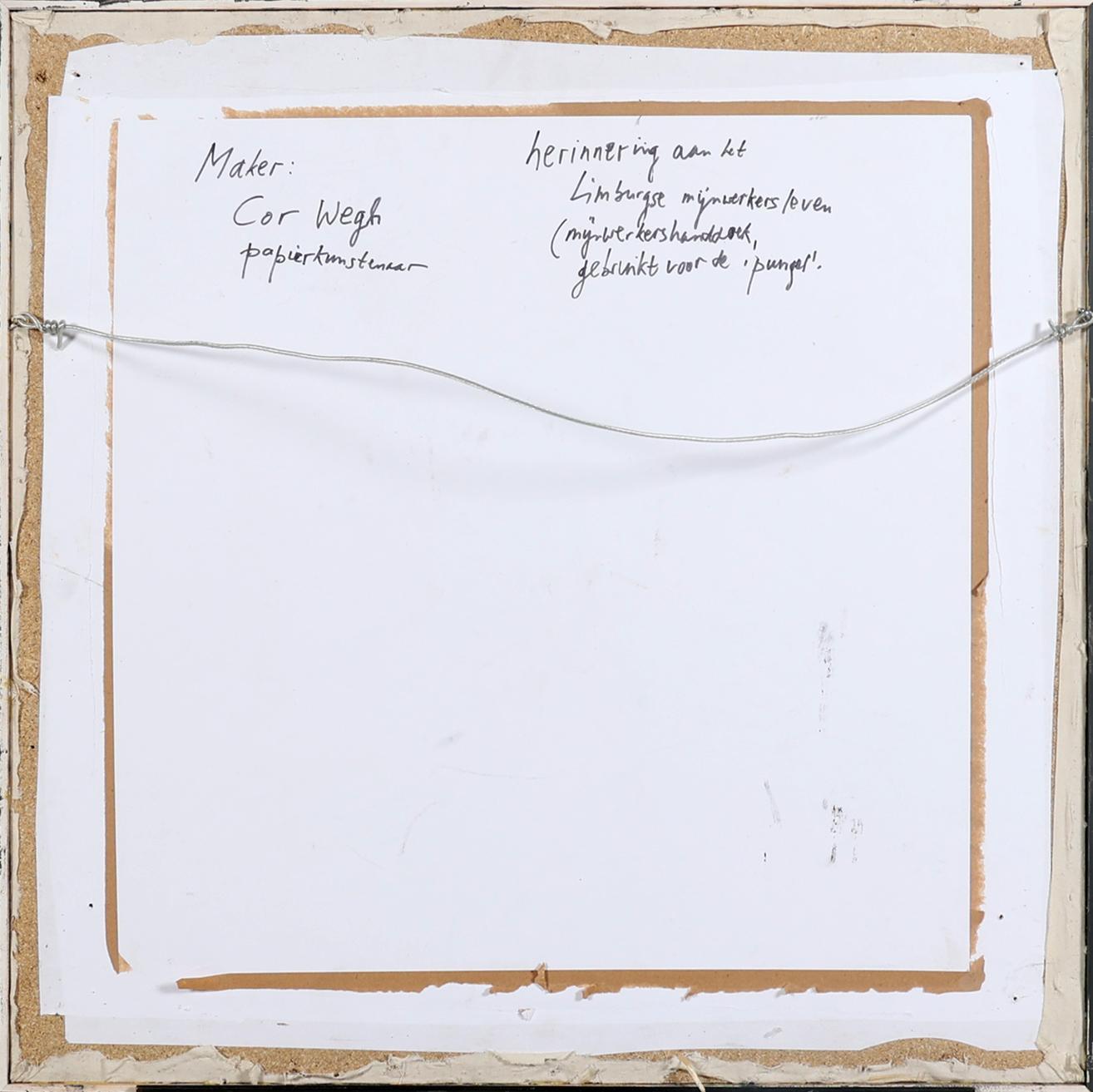 Cor Wegh, Ode aan de Limburgse mijnwerkers, voorstellend de handdoek die de mijnwerkers standaard droegen, papier machete, 77x 72 cm.