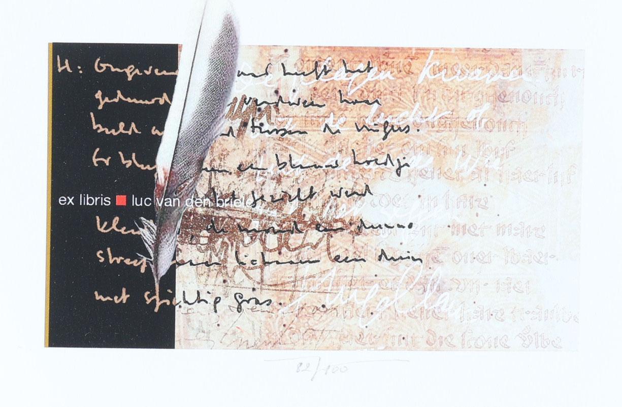 Braspenninckx, W., exlibris voor Van den Briele, plm. 40 stuks (restoplage), S/4, 1987, calligrafie.