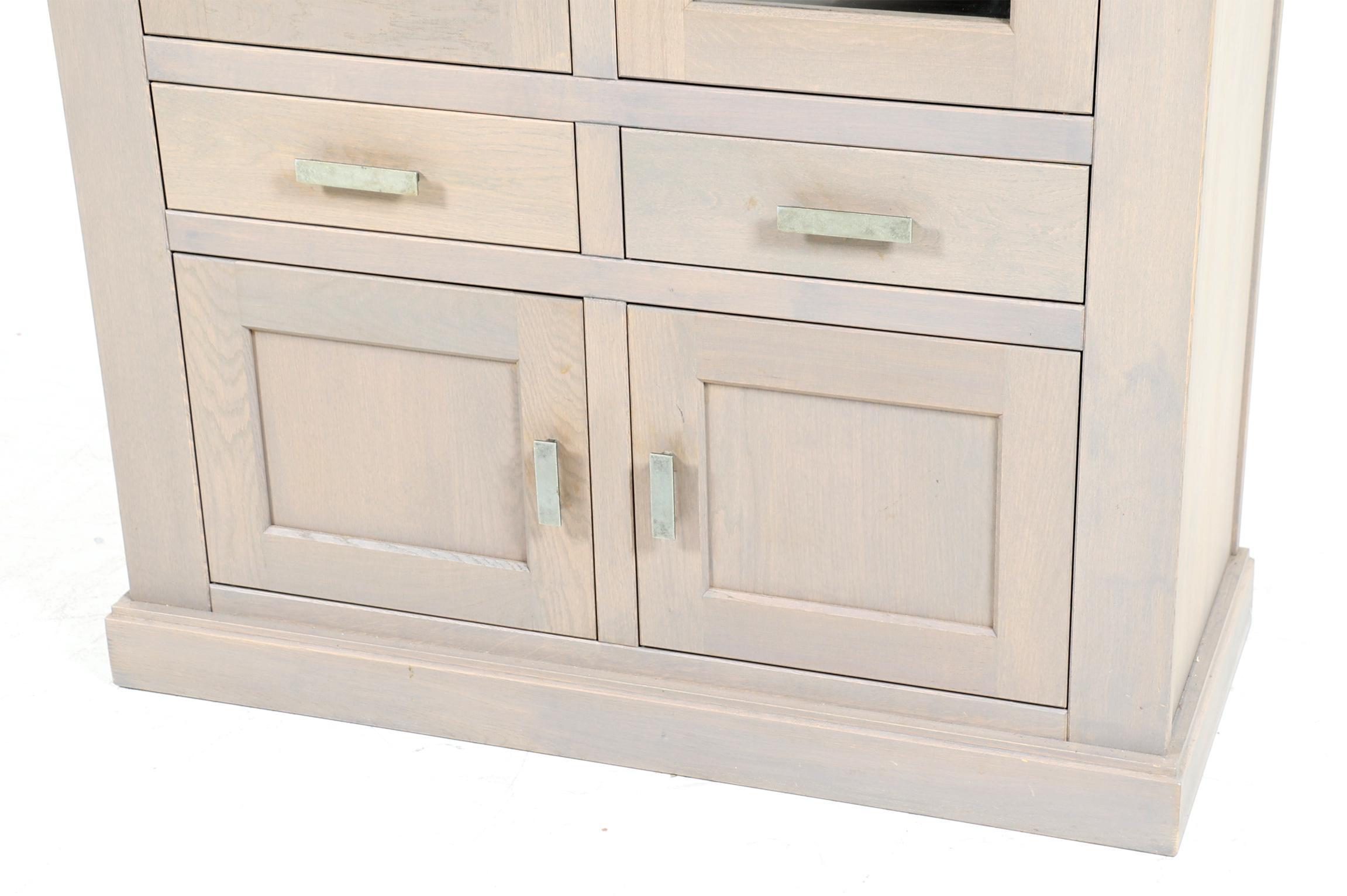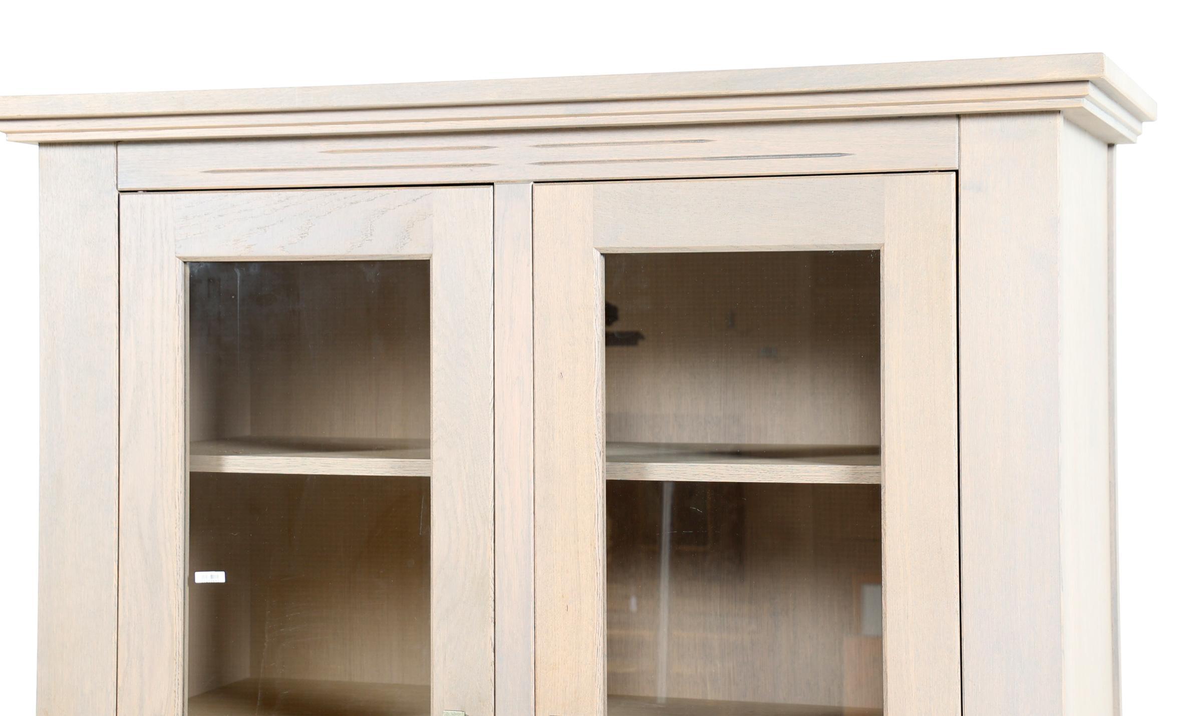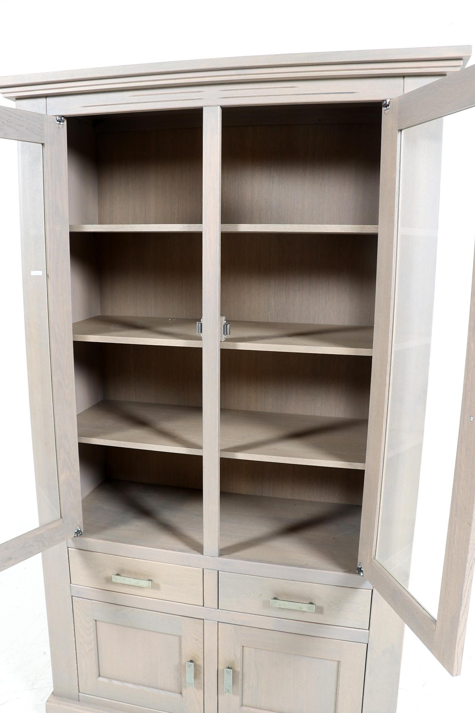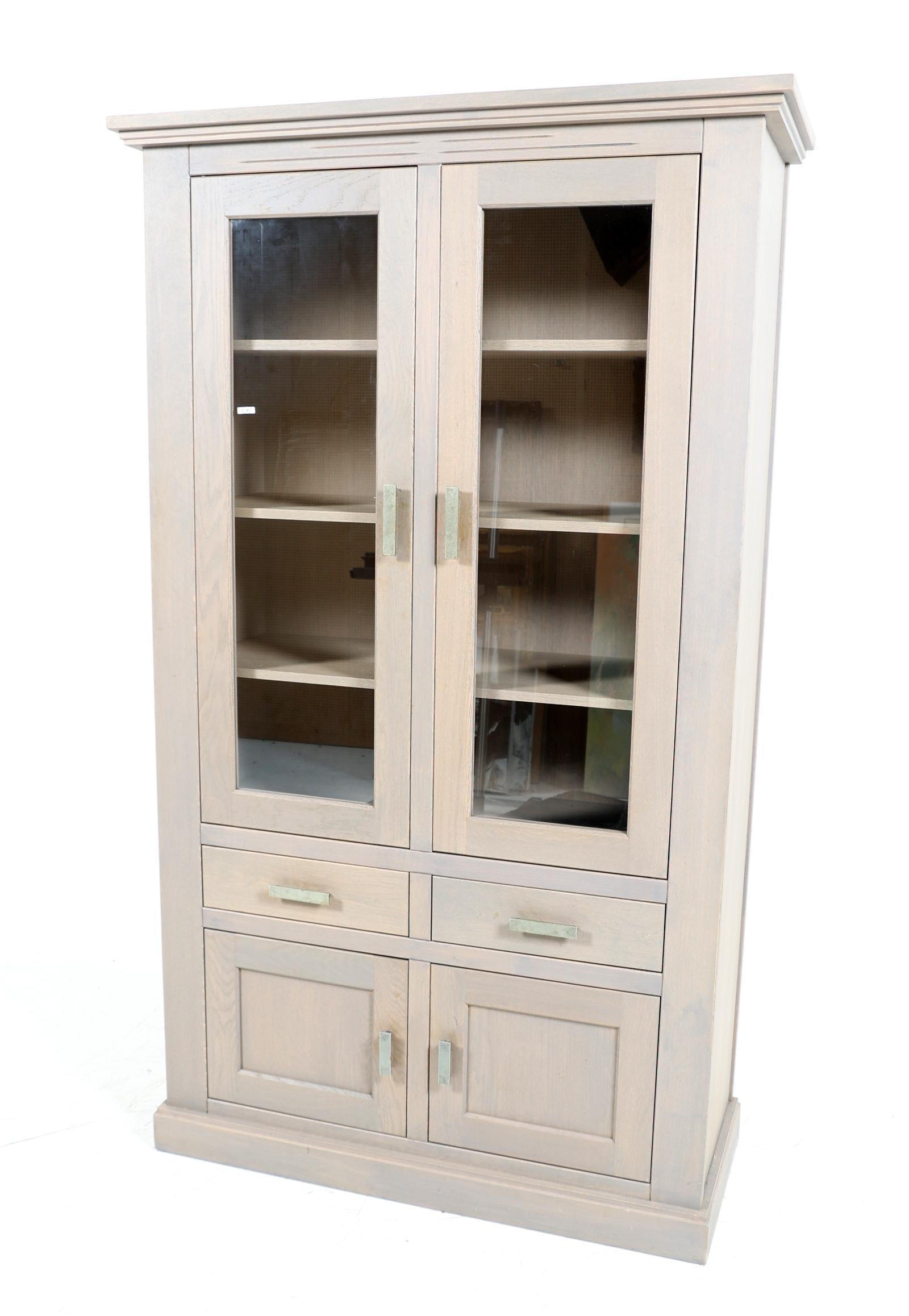 Grijs gelakte houten vitrinekast, h.191 x b.112 x d.47 cm.