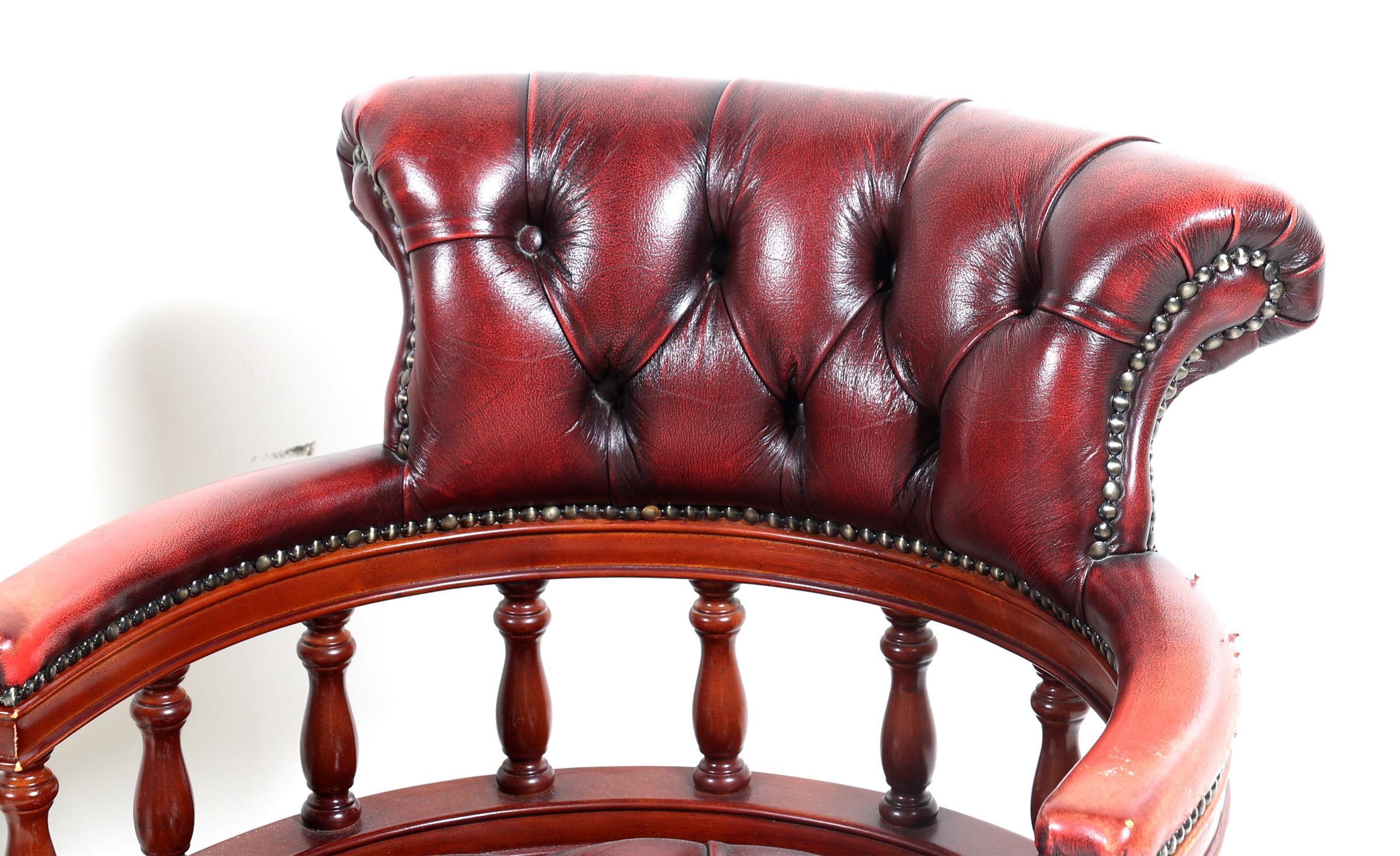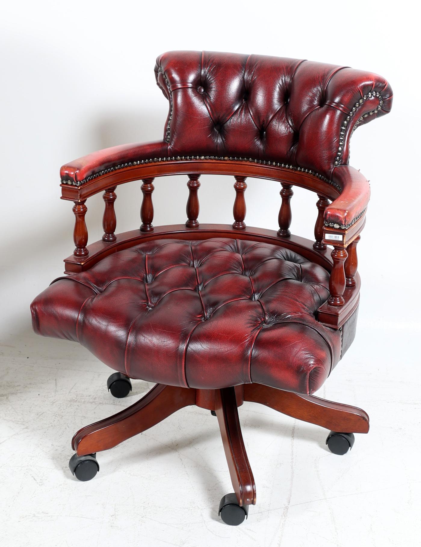 Gecapitonneerde rood lederen bureaustoel
