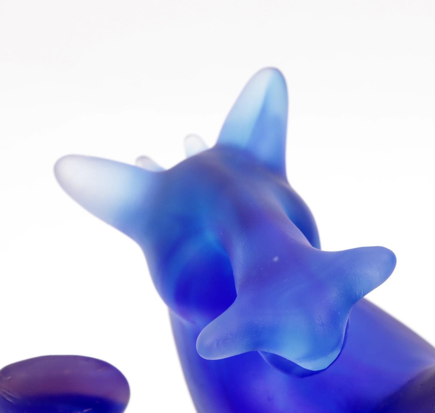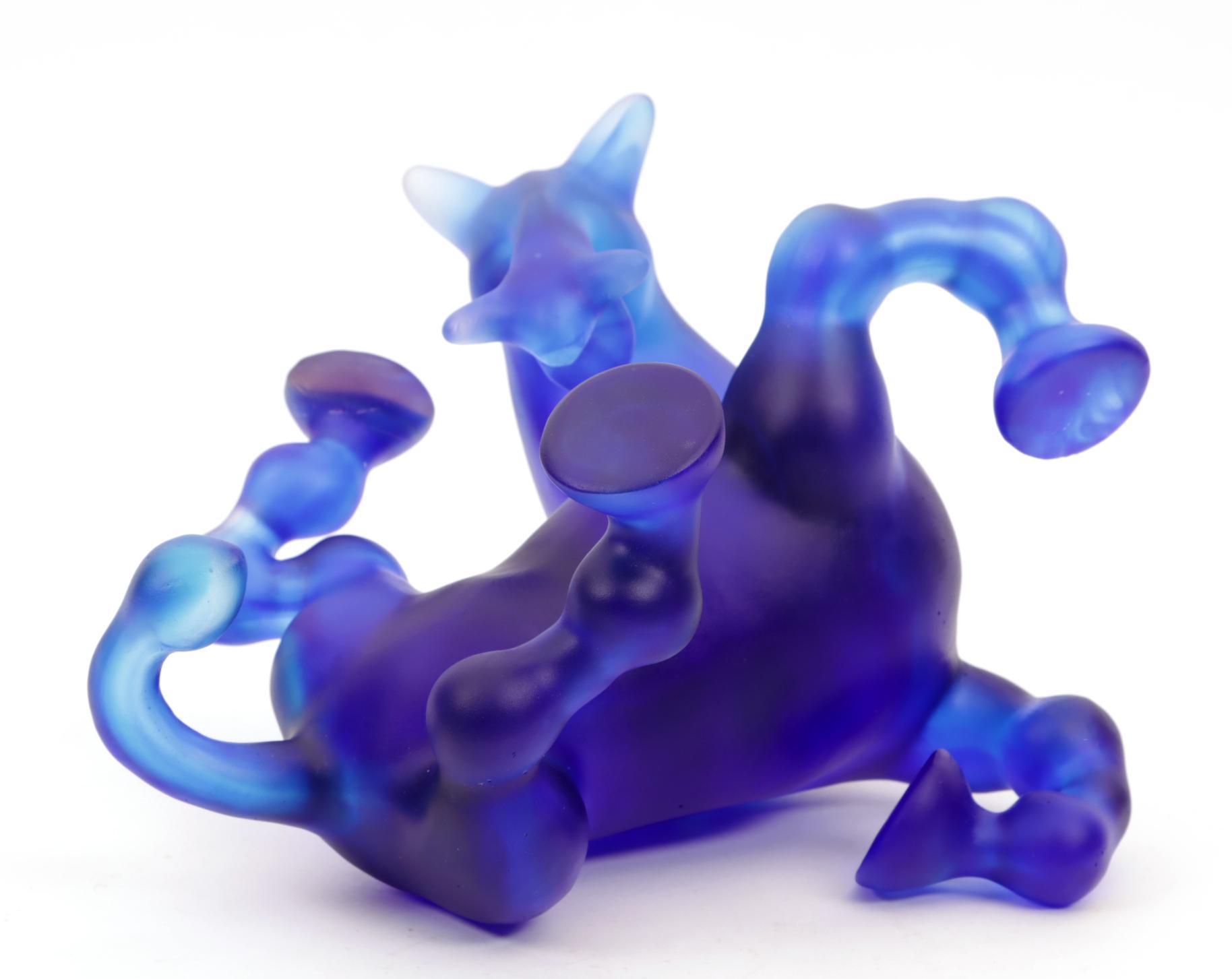 Sculptuur gegoten glas(kiln cast glass) van de Chinese kunstenaar Zhen Ning Li; blauw; Titel: ‘Weightlessness’ Unica; h.18 x b.28 x d.25 cm.Zhen Ning Li Komt uit Beijing waar hij tussen 2007 en 2010 kunst studeerde aan de Tsing-hui Academy of Art and Design. Hij is Master of Art in Glass en geeft sinds het afronden van zijn studie ook les aan de Beijing University of Civil Engineering and Architecture., De ster van Zhen Ning Li is ook rijzende in China omdat de glaskunst sterk in opkomst is. Dit blijkt oa door de erkenning van diverse kanten zoals zijn grote solo-tentoonstelling ‘WANDERING’ die Zhen Ning Li had in het Shanghai Museum of Glass van december 2017 tot april 2018.