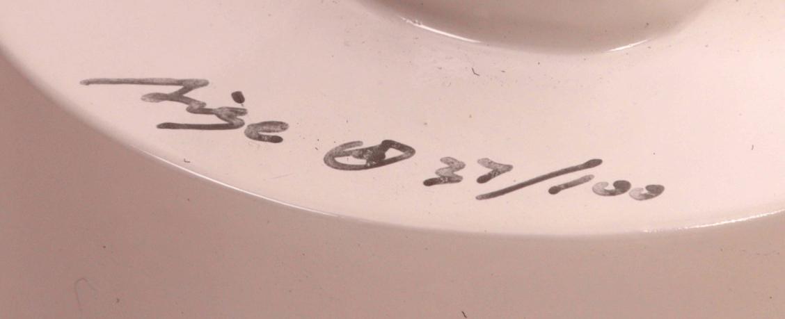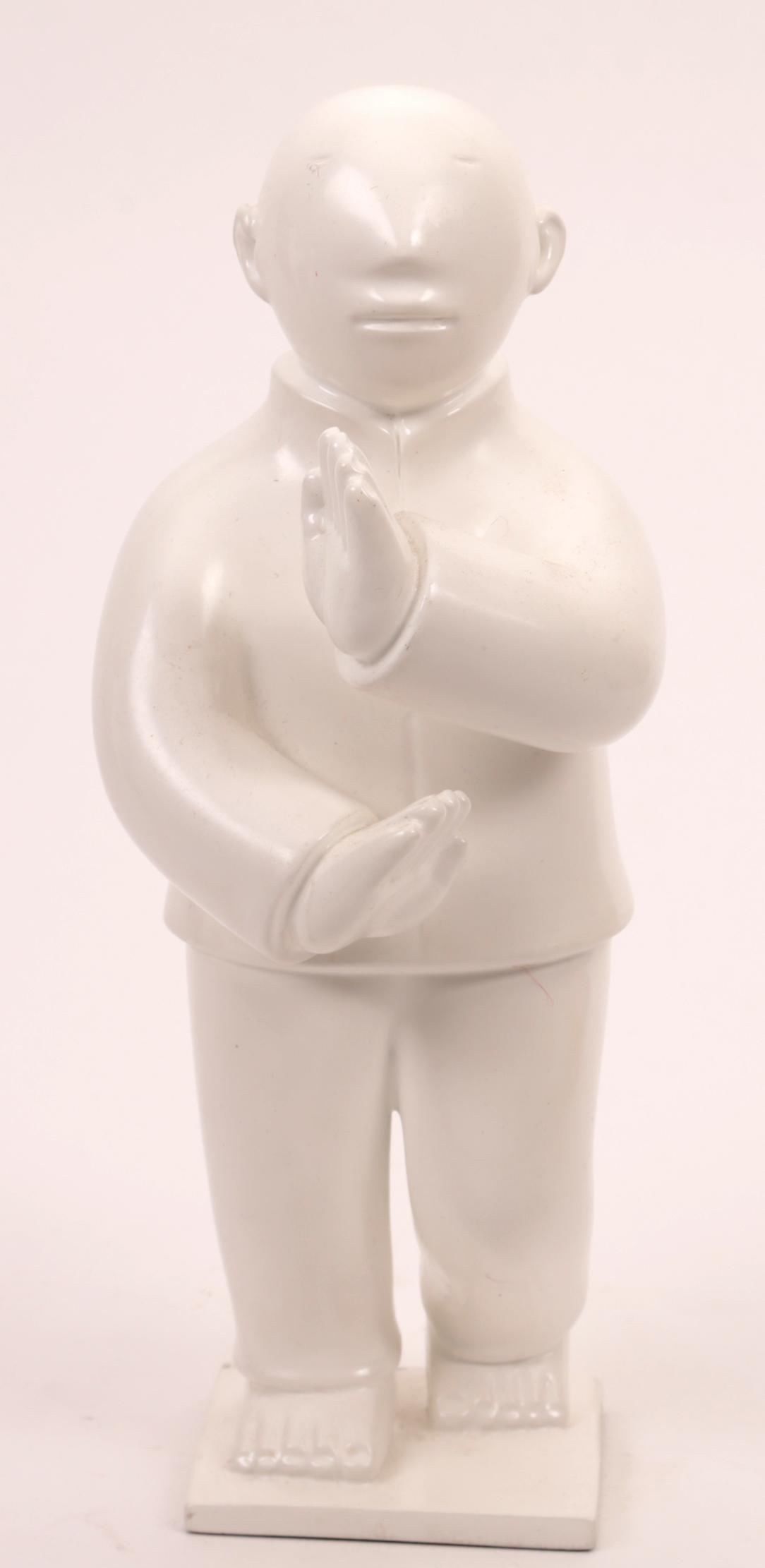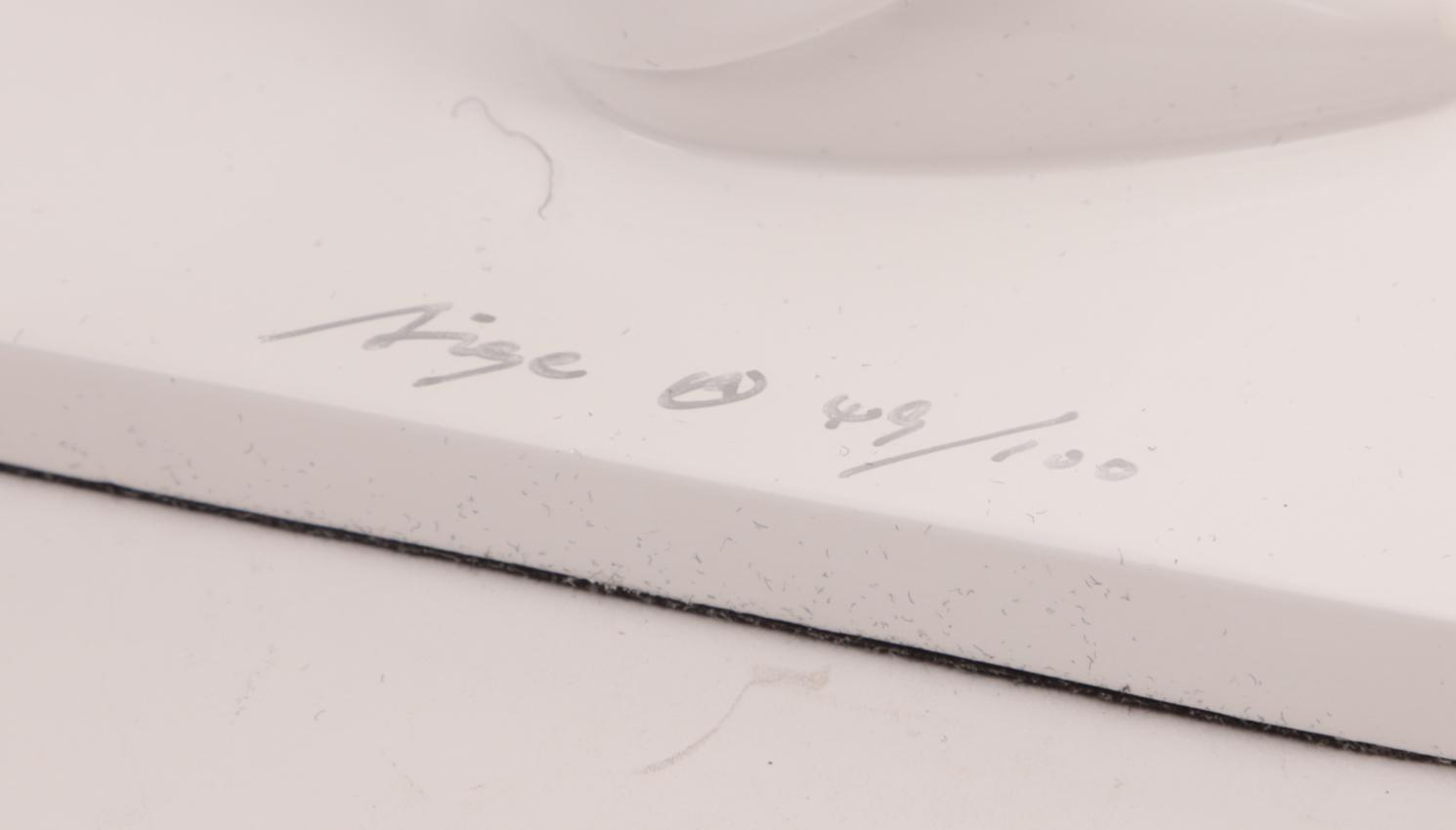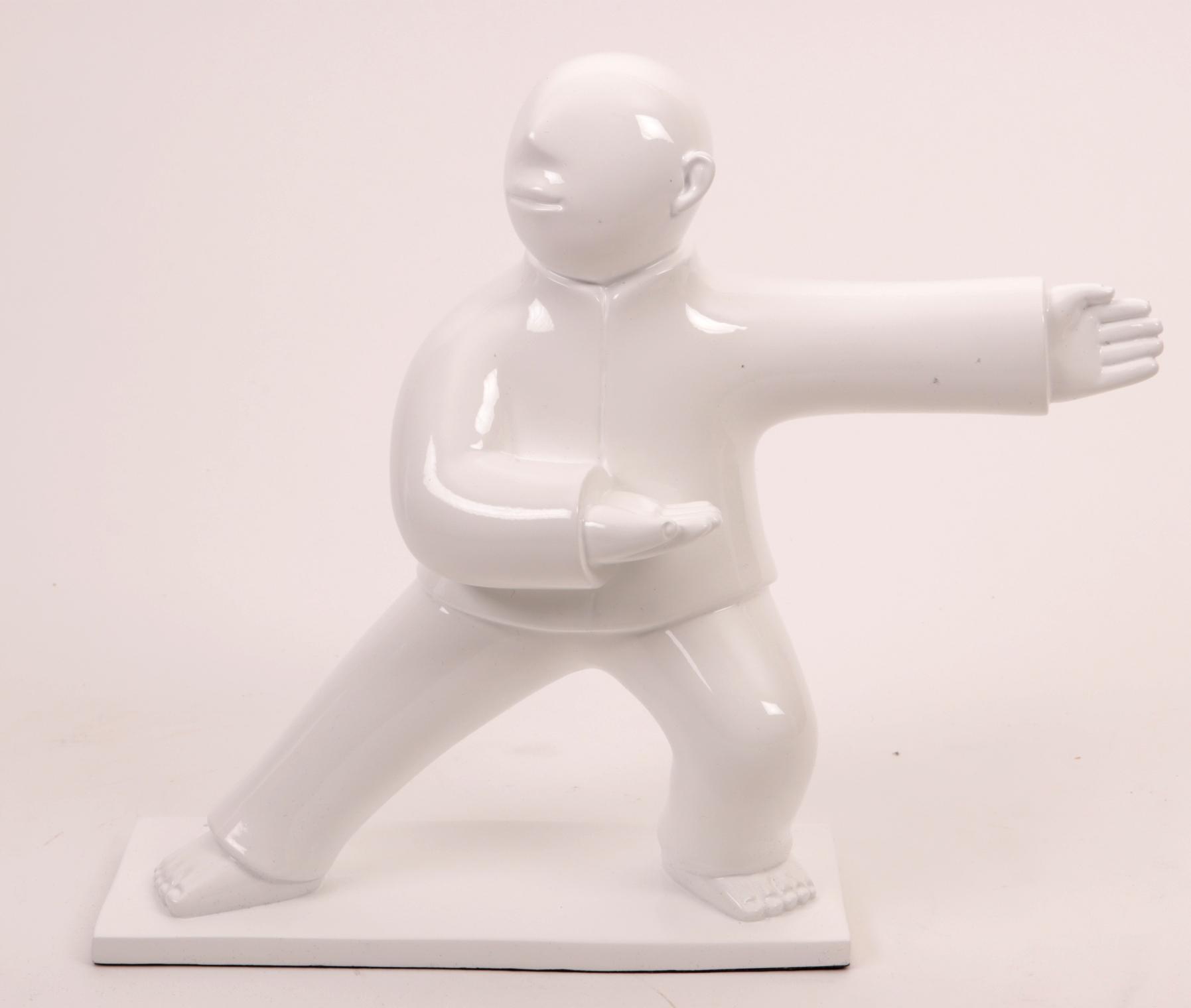 Een drietal sculpturen uit de Tai Chi serie van de Chinese kunstenaresse Xie Aige; wit kunsthars; met certificaat in presentatie box Titel: Tai Chi No : 1/3/8, Oplage :99, h.ca.23 cm. Xie Aige zette zichzelf als beeldend kunstenaar opmerkelijk snel op de internationale kaart. Tijdens haar eerste expositie (Shanghai Duolon Museum of Modern Art/ 2005) trok zij met haar originele werk de aandacht van internationale kunstliefhebbers.