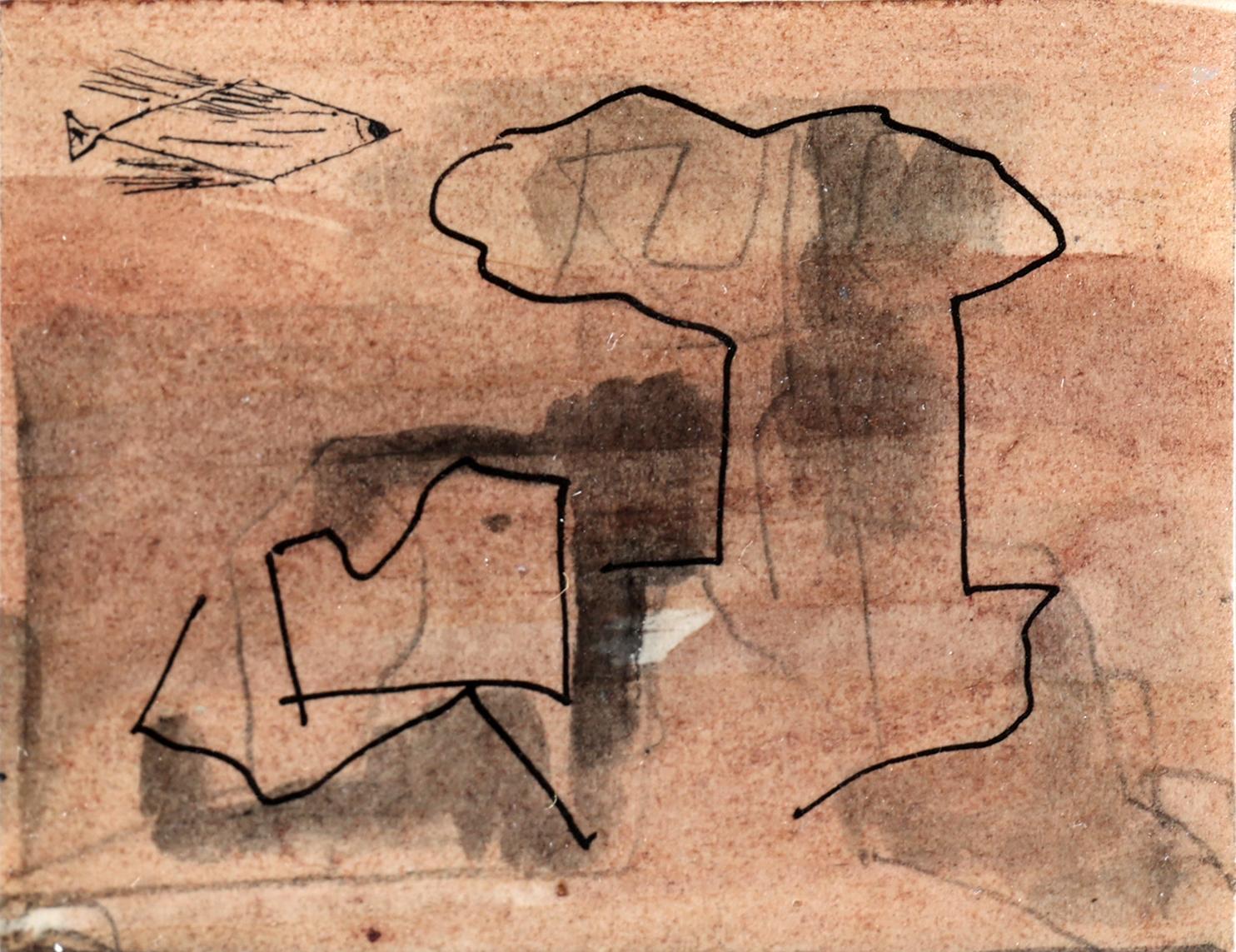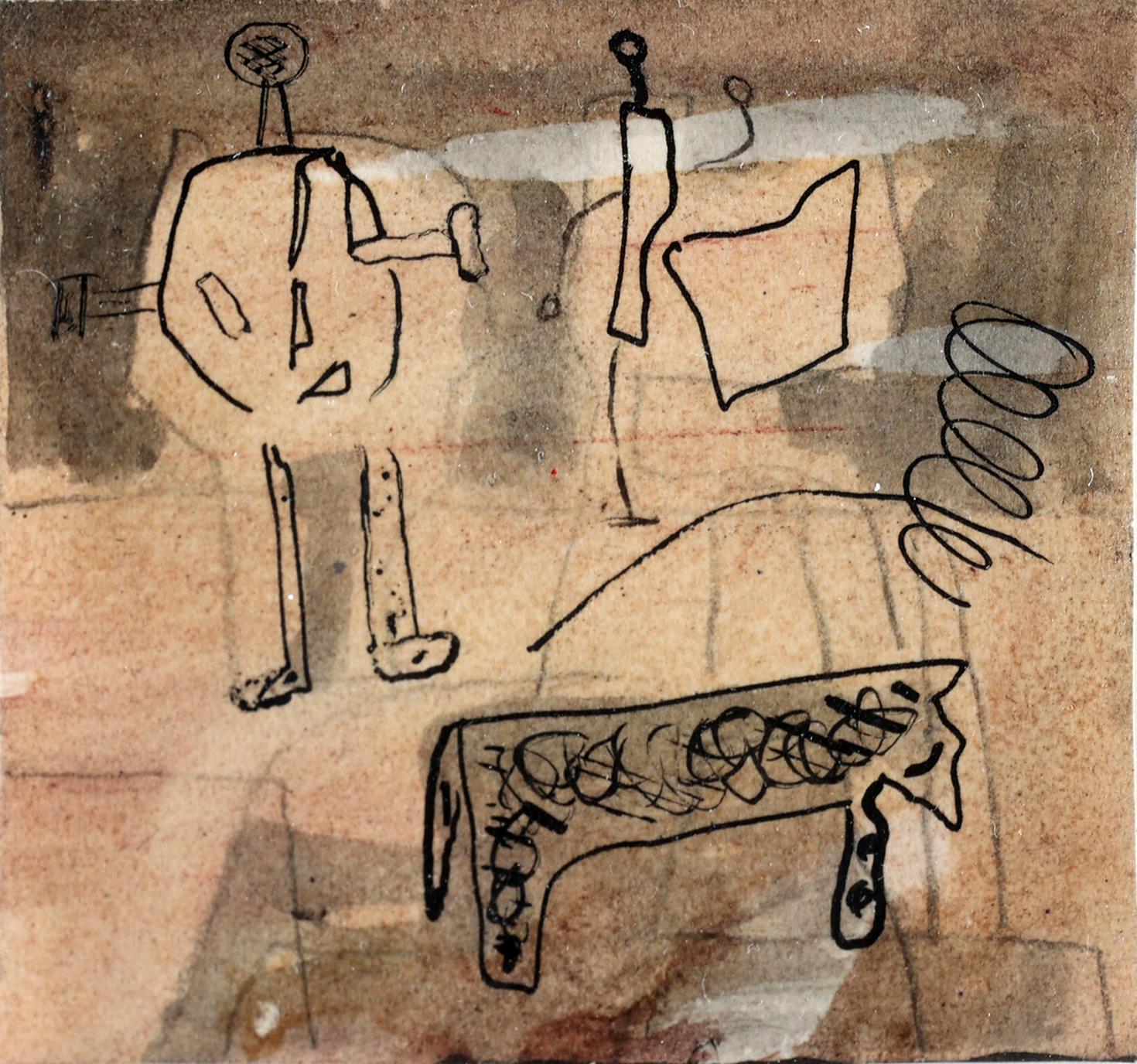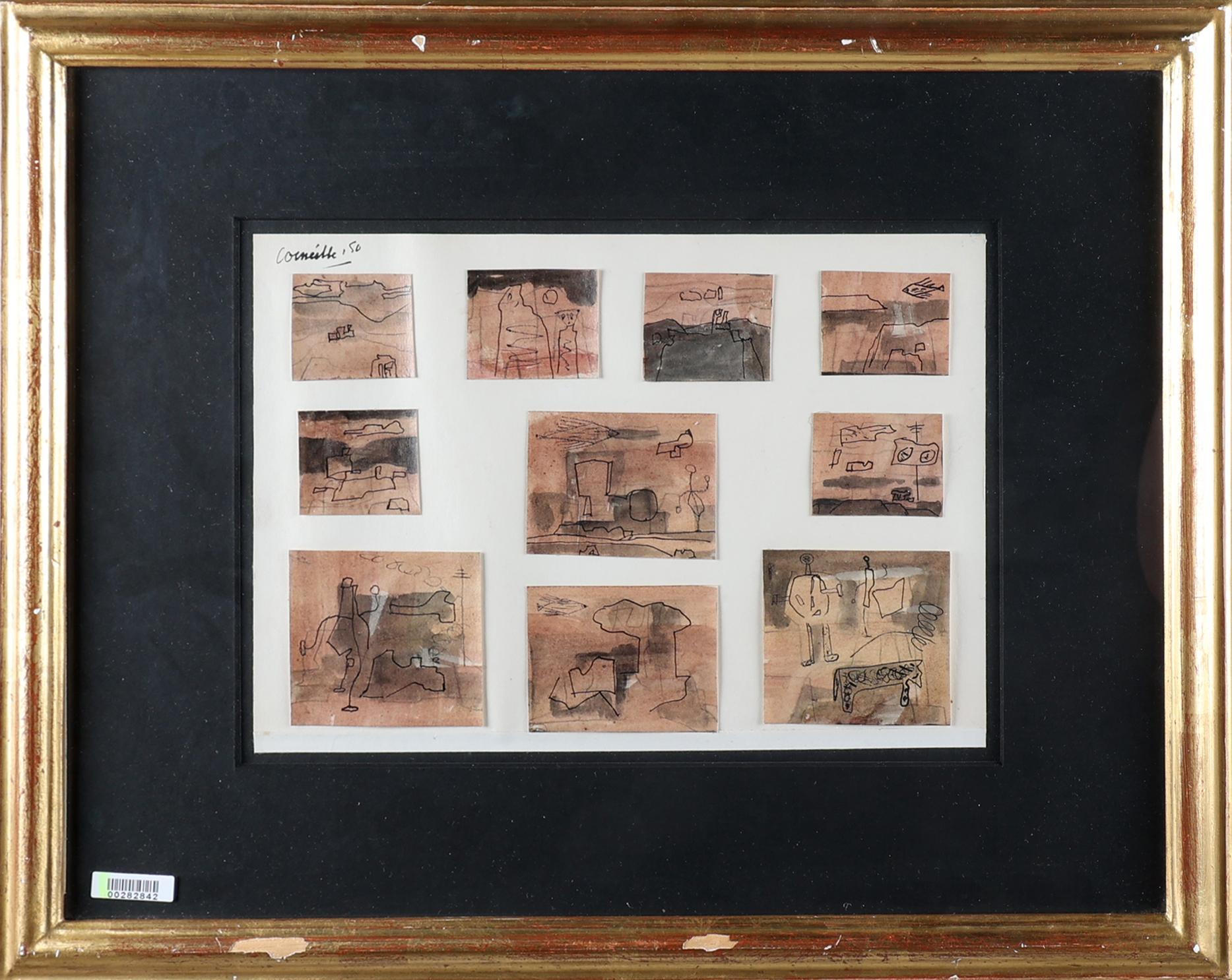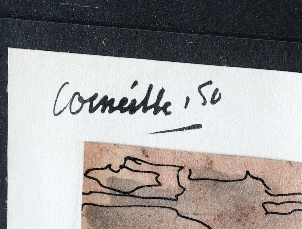 'Corneille', alias van Cornelis Guillaume van Beverloo, (1922- 2010), collage van gemengde techniek op papier, gedateerd '50, 21,5 x 29 cm.