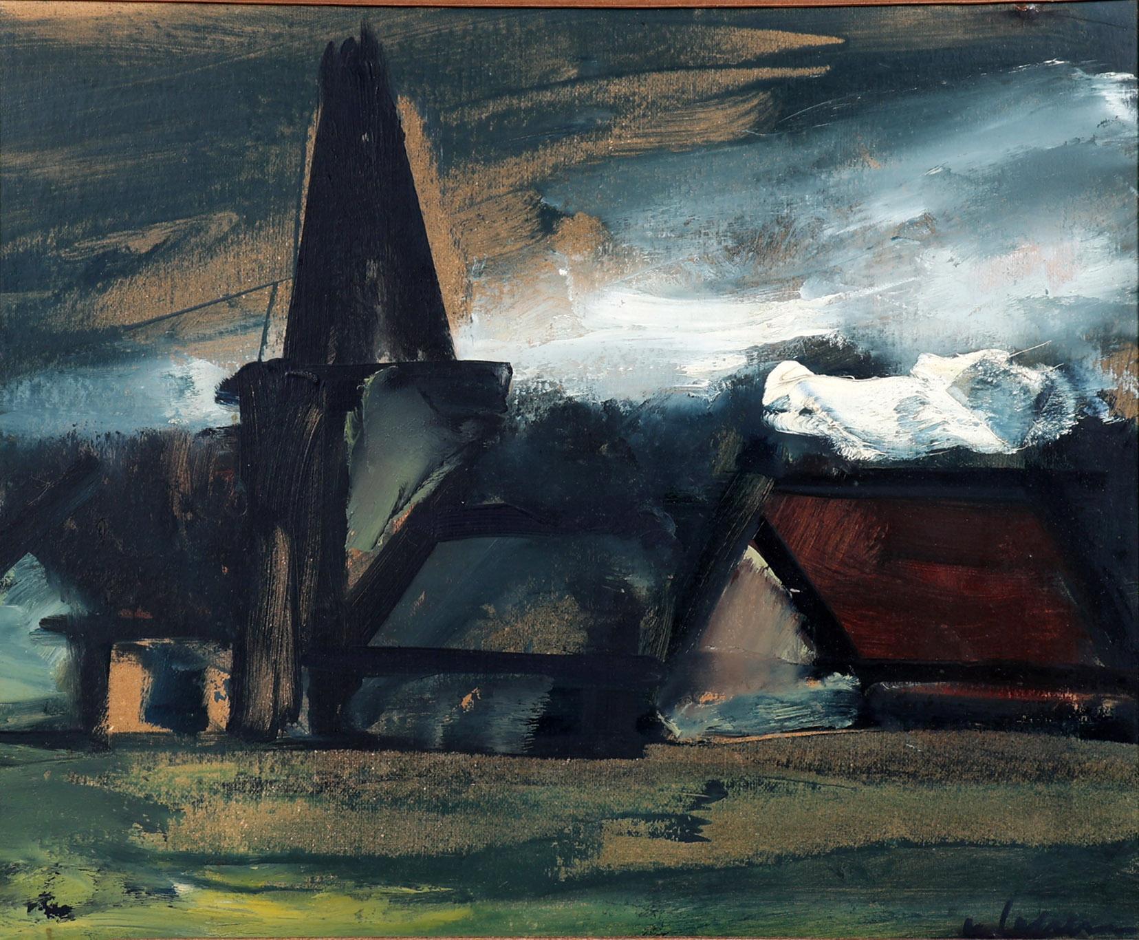 Johan Hendrik (Hans) van Ieperen (1909-1995), Dorpsgezicht met kerk, olieverf op board, 64 x 77 cm.