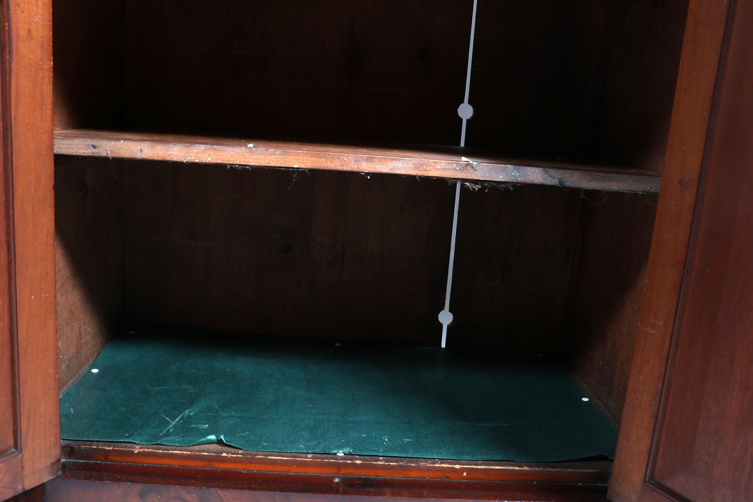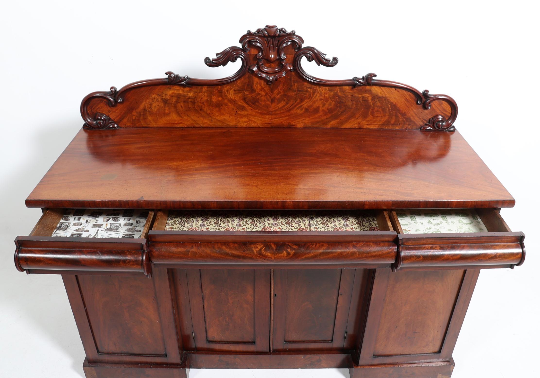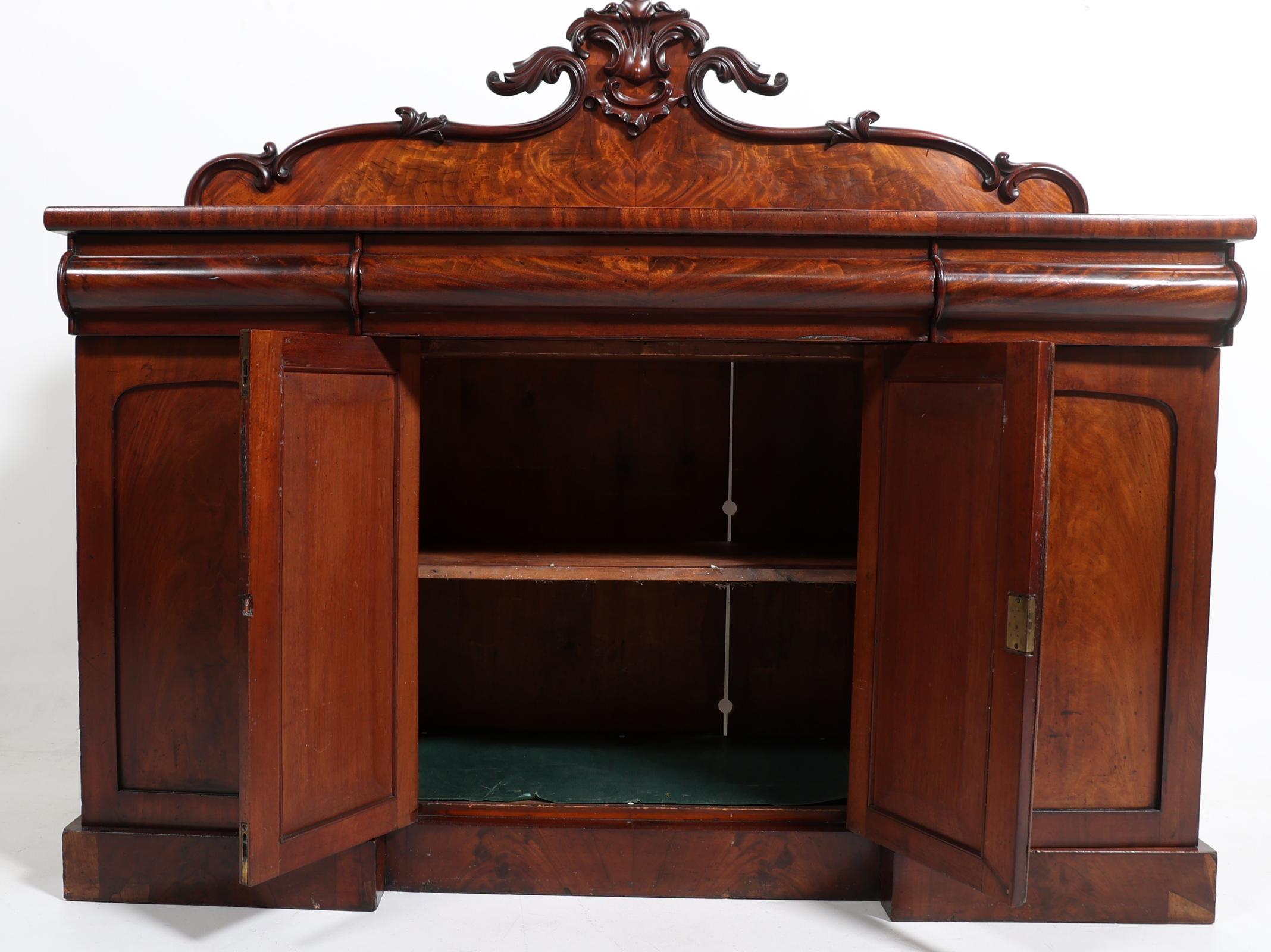 Antieke mahoniehouten buffetkast met gestoken kuif, h.135 x b.154 x d.58 cm.