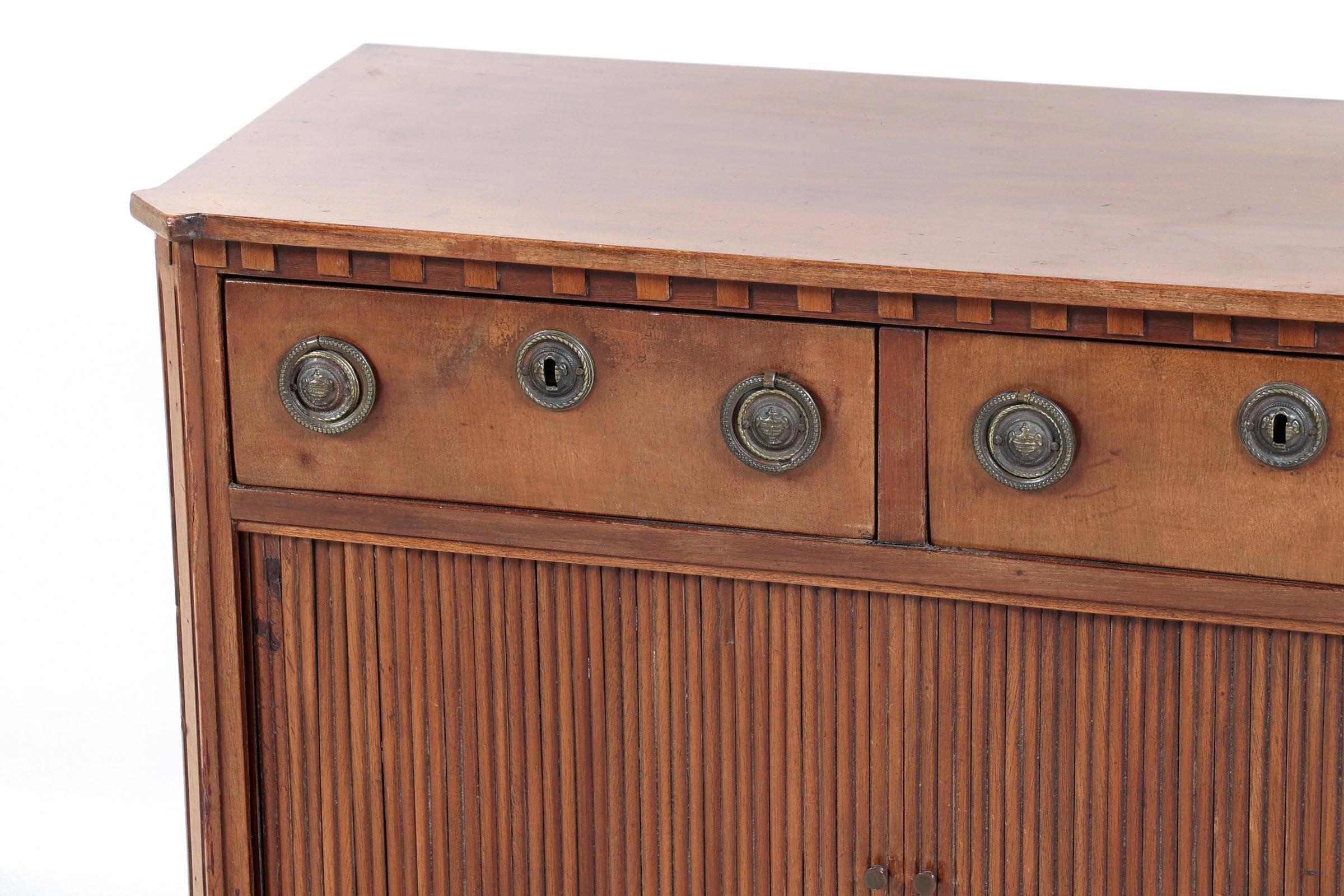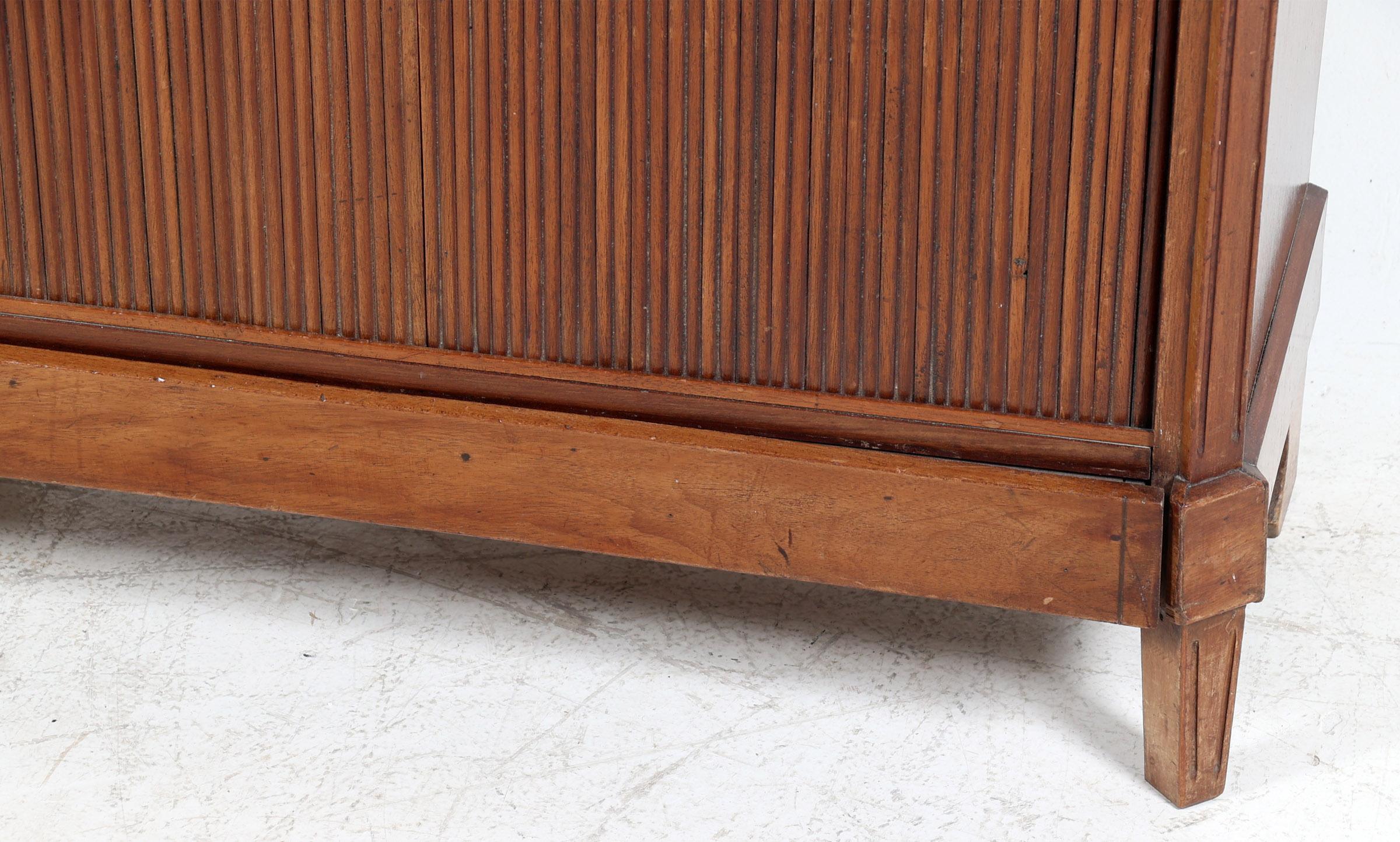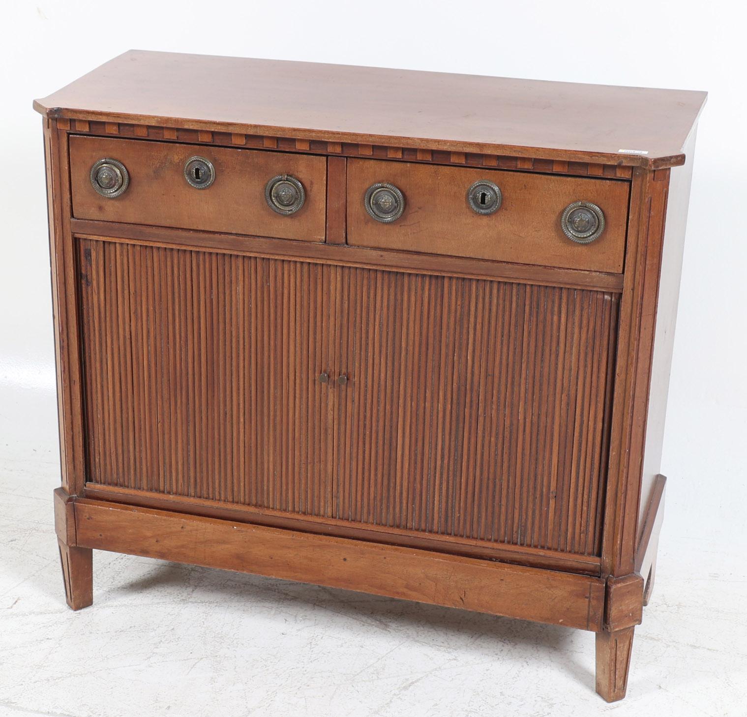 Mahoniehouten Louis Seize-stijl penantkast met jaloeziedeuren en 2 laden, h.73 x b.82 x d.34 cm.
