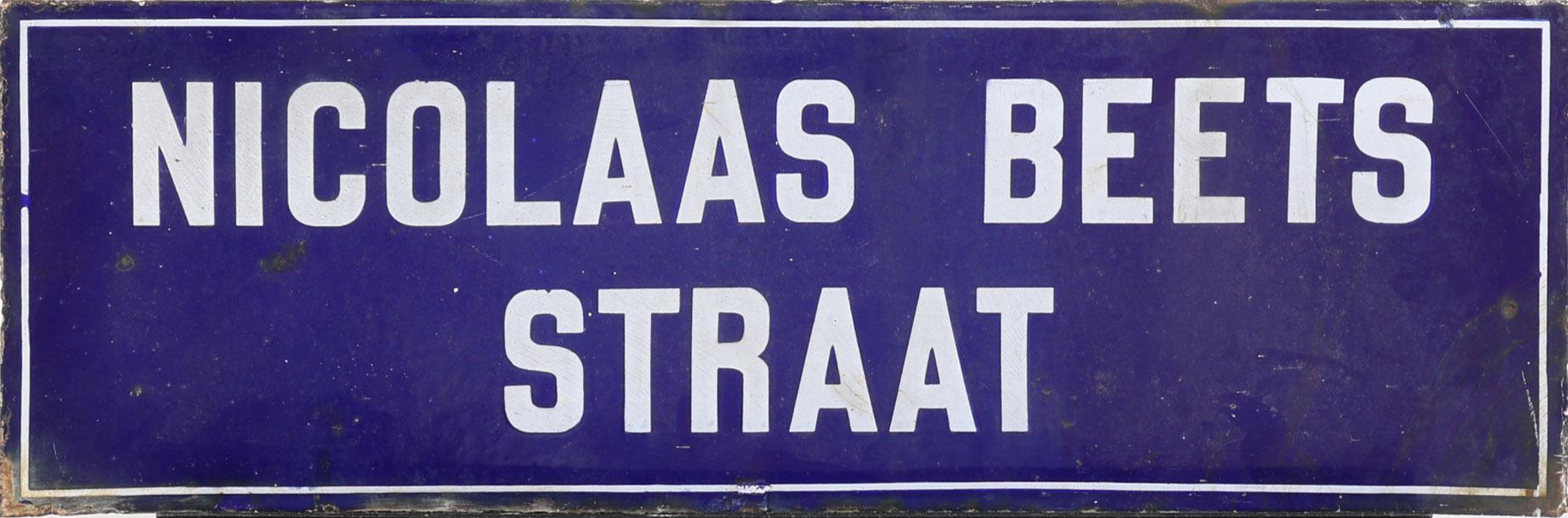 Oud geëmailleerd straatbord Nicolaas Beetsstraat, 72 x 25 cm.