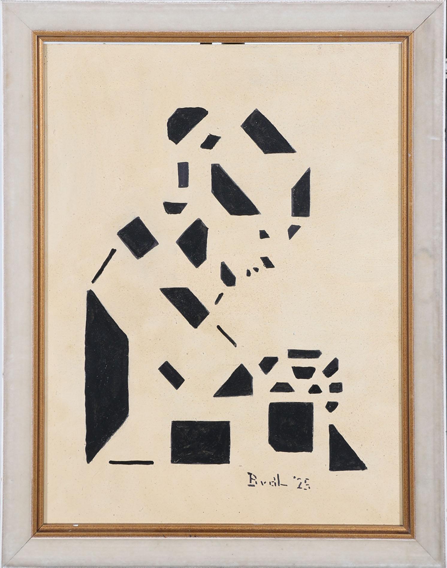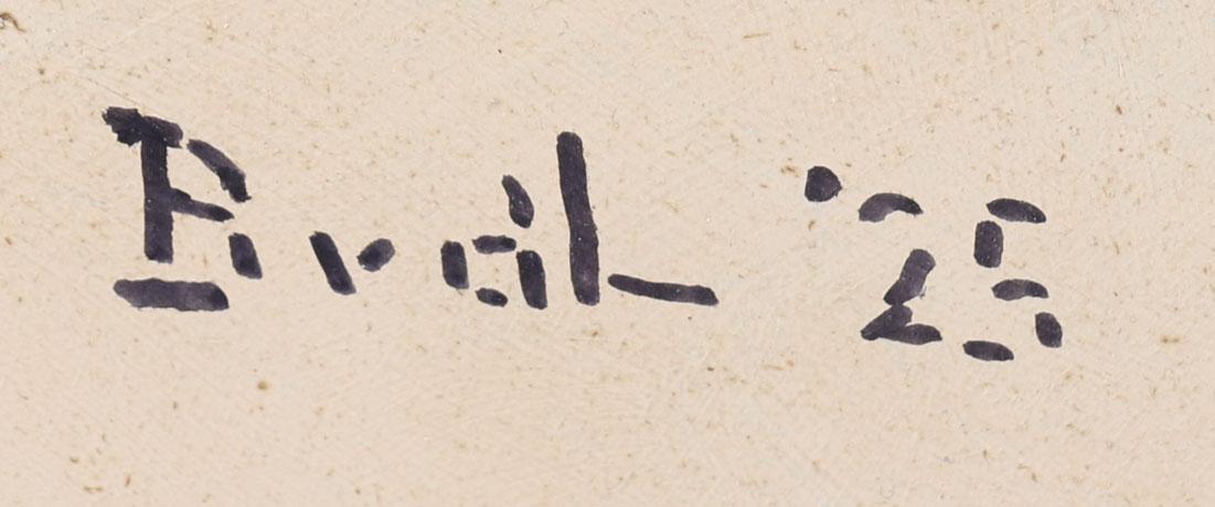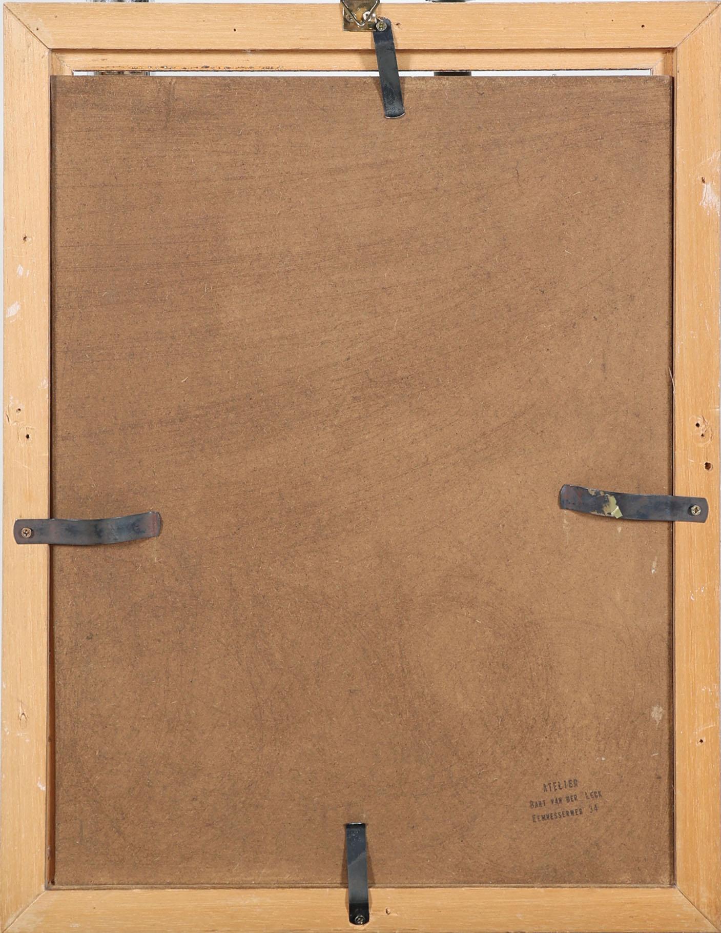 Monogram B. vd L.(naar Bart van der Lek), Handwerkende vrouw, inkt op paneel, 39 x 30,2 cm.