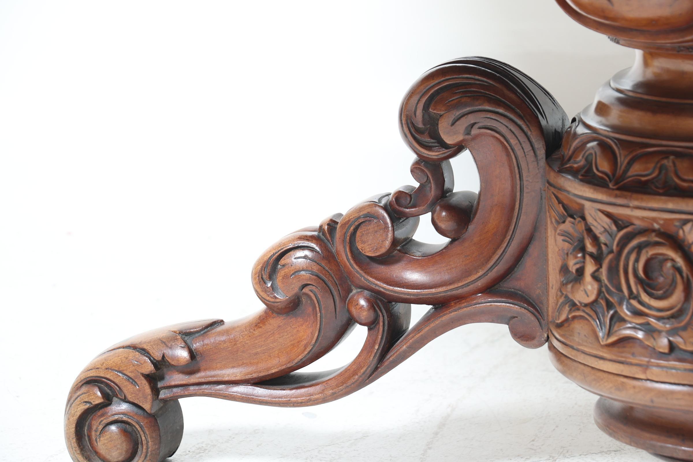 Antieke mahoniehouten ronde eetkamertafel rustend op 3 span poot, h.73 x diam.132 cm.