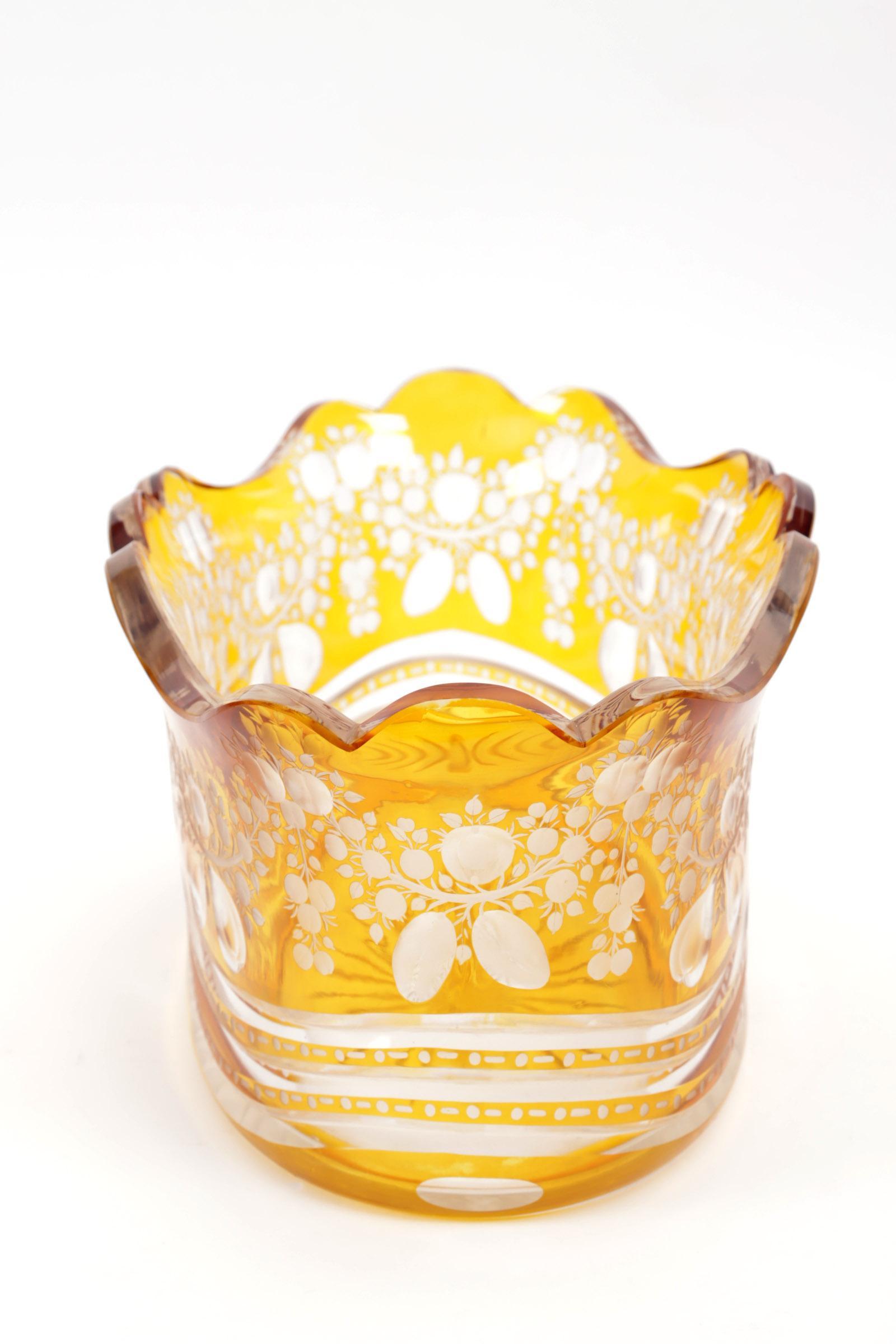Geel Boheems kristallen schaal, h.15 x b.32 x d.19 cm.