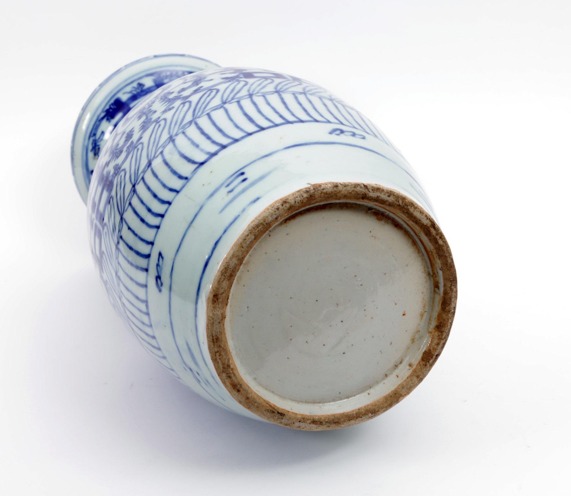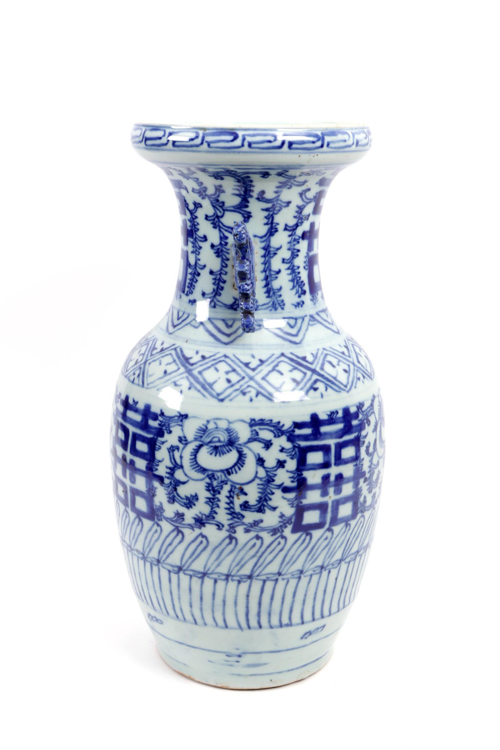 Blauw/wit gedecoreerde Chinees porseleinen kraagvaas, h.42 cm.