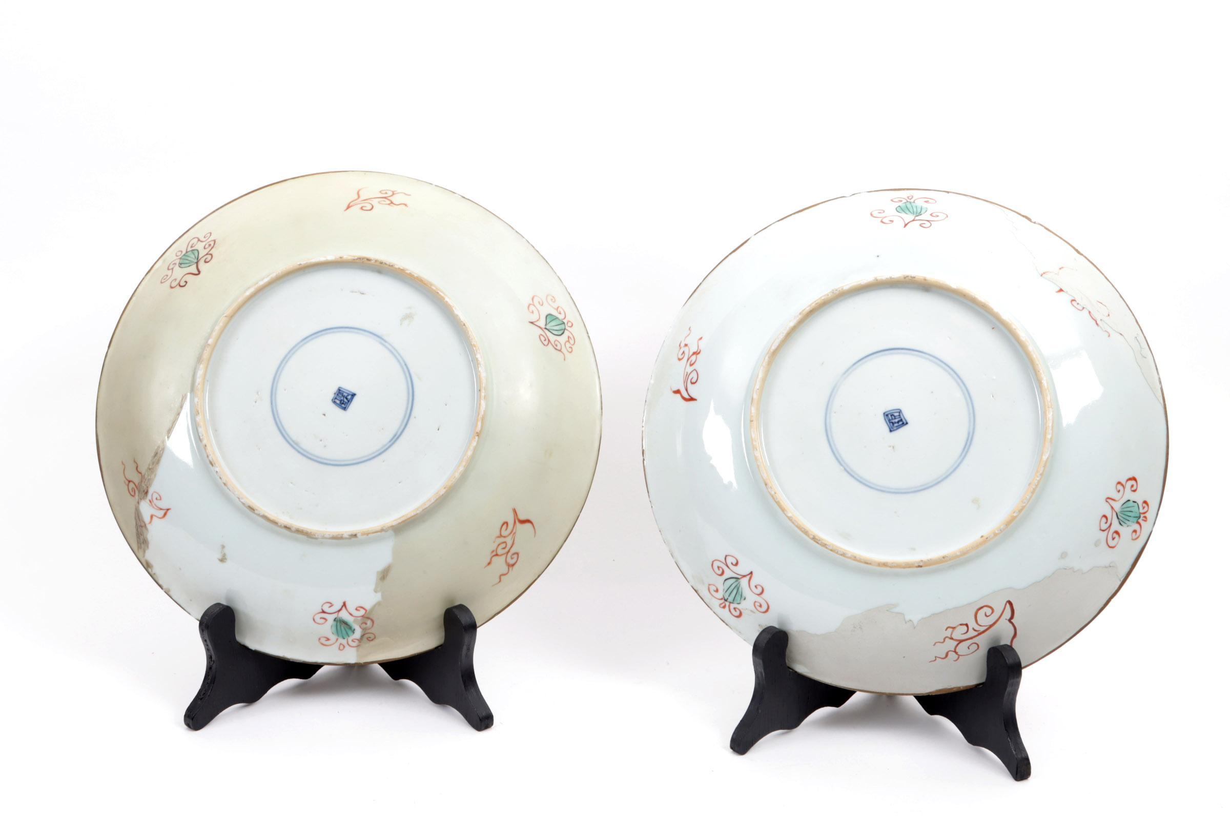 2 Antieke Chine de Commande schotels met monogram (gerestaureerd), diam.27 cm.