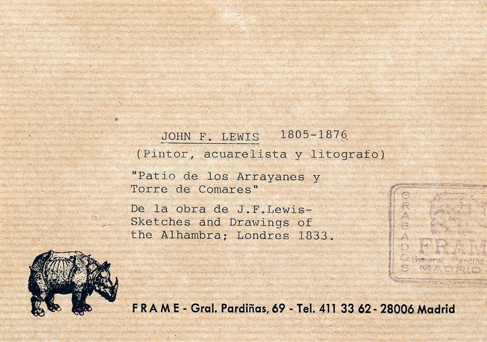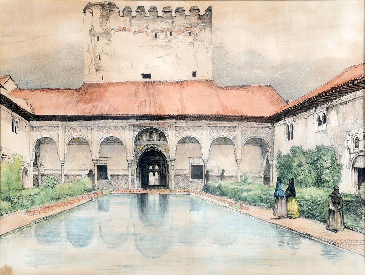 John F. Lewis (1805-1876), Patio de los arrayanes Y Torre de Comares, lithografie, 37 x 29 cm.