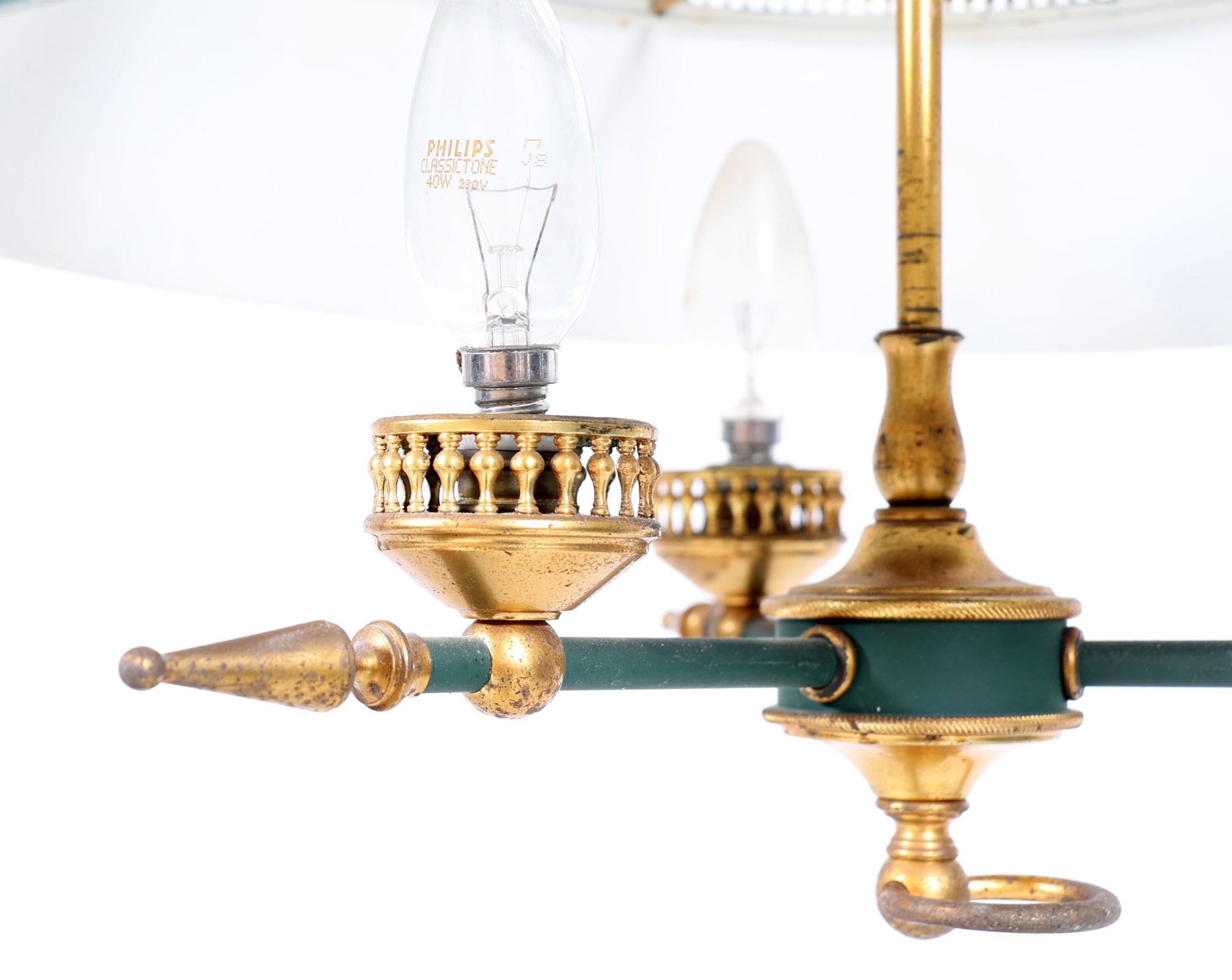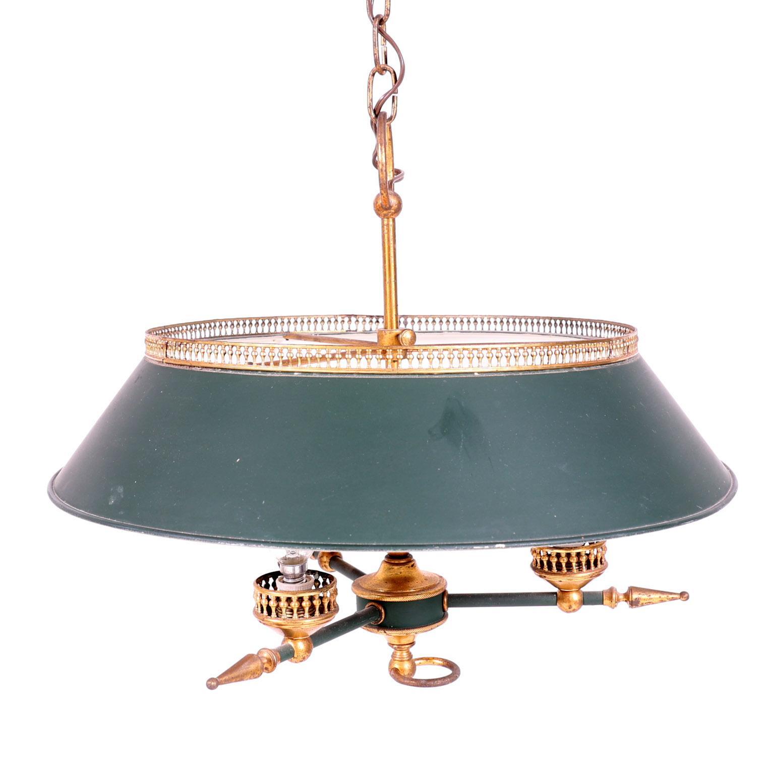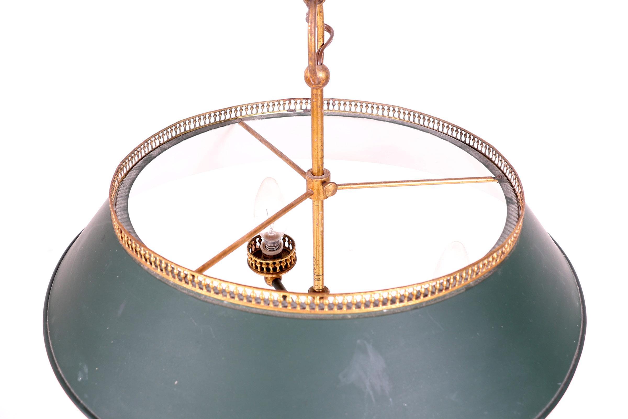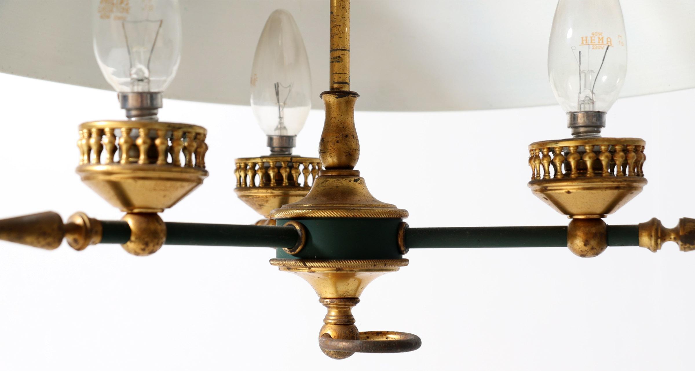 Oude groen/goud gelakte 3-lichts bouillotte hanglamp