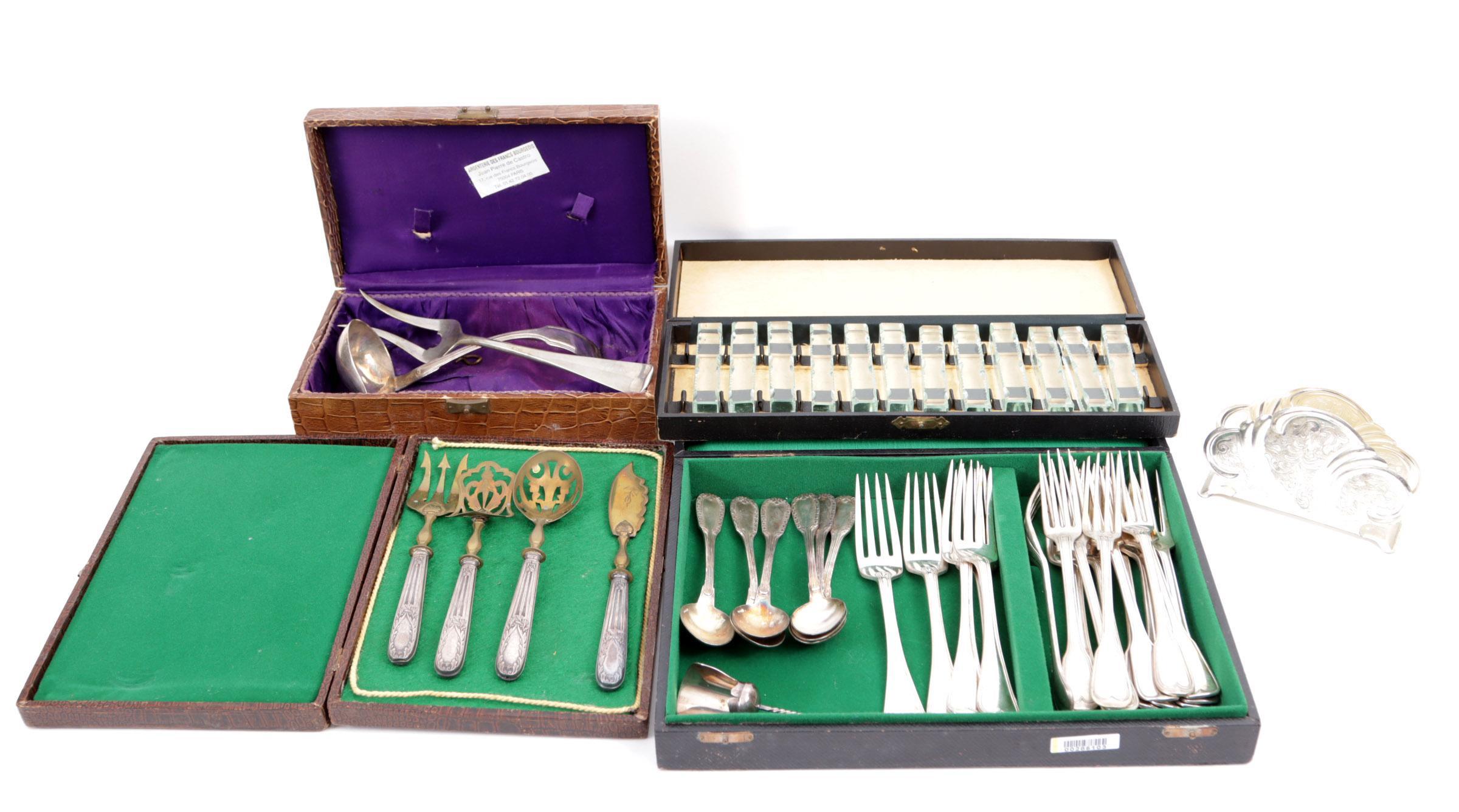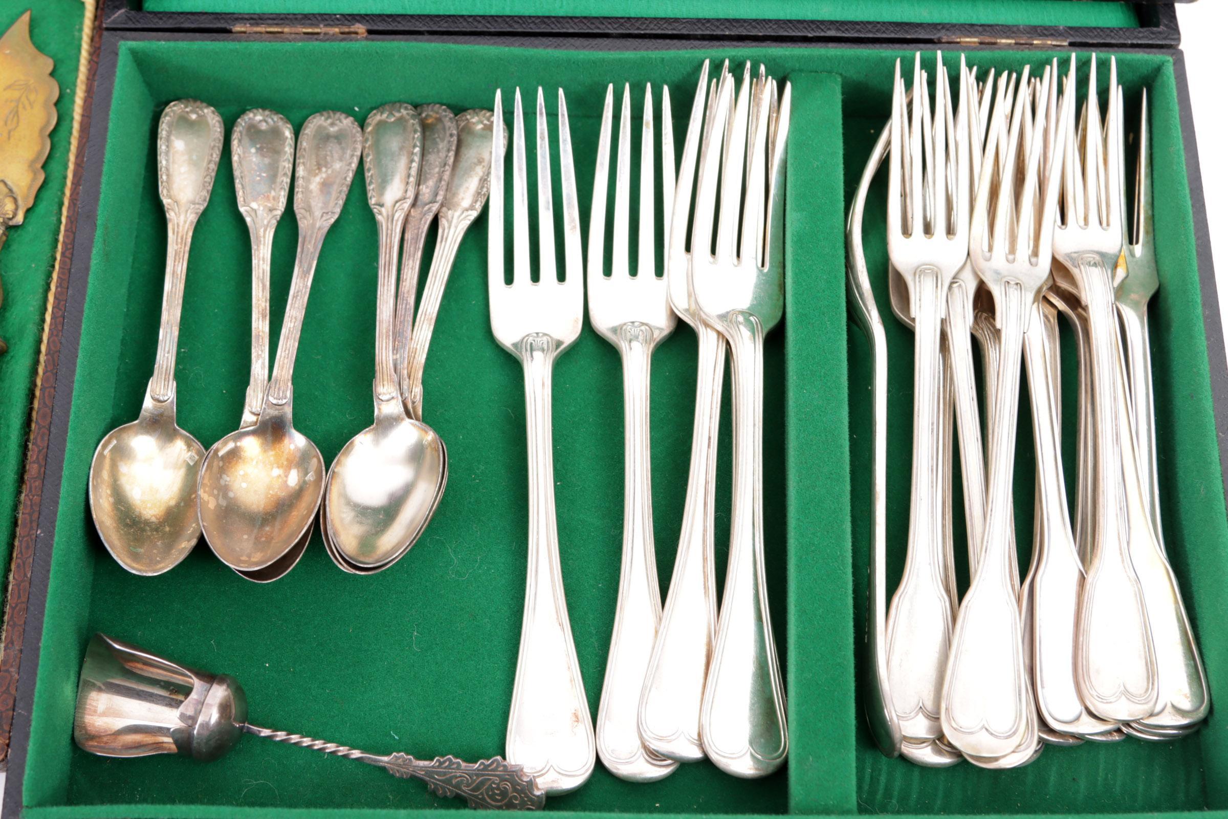 Koop van diverse mensenleggers, divers pleet bestek en vier 3e gehalte zilveren vorken, 59 gram
