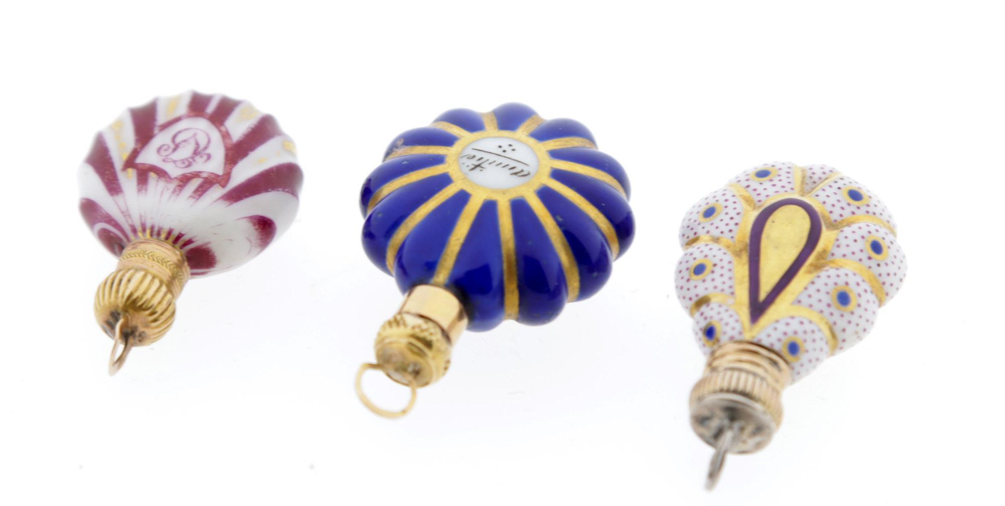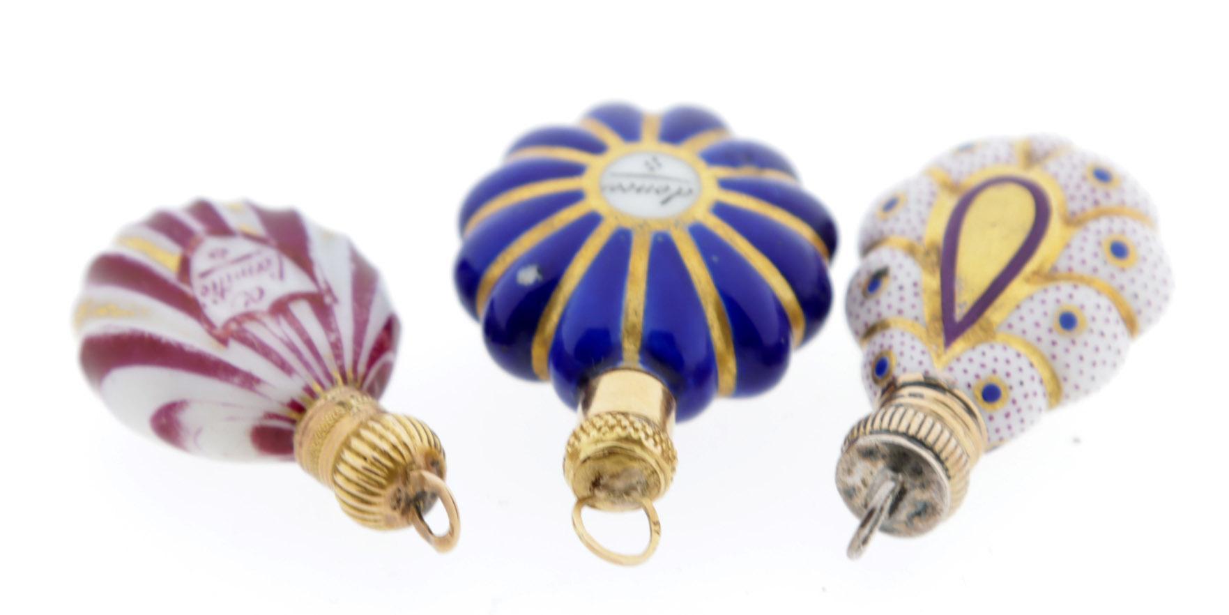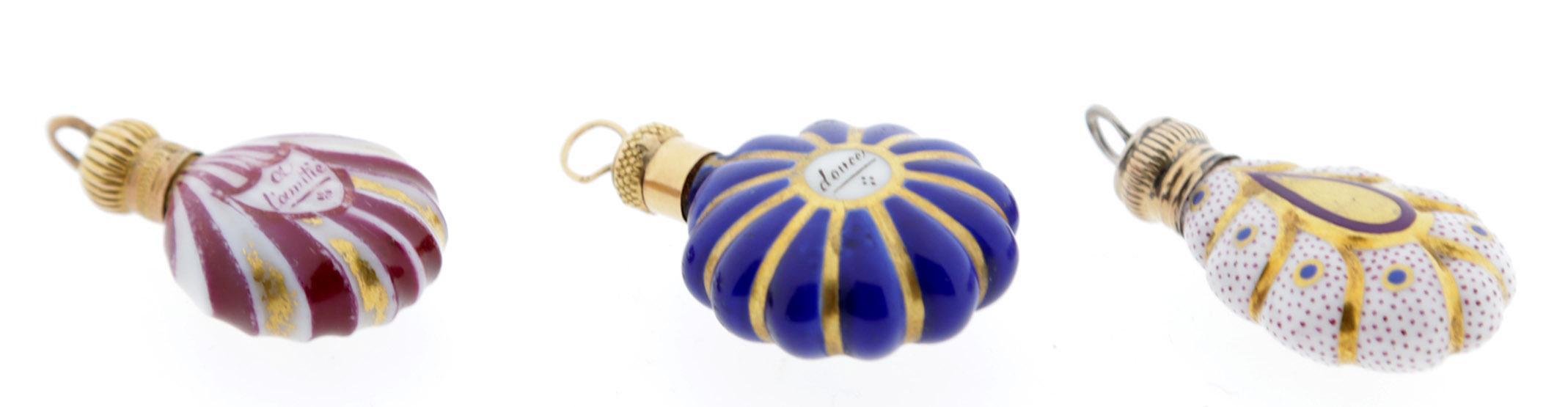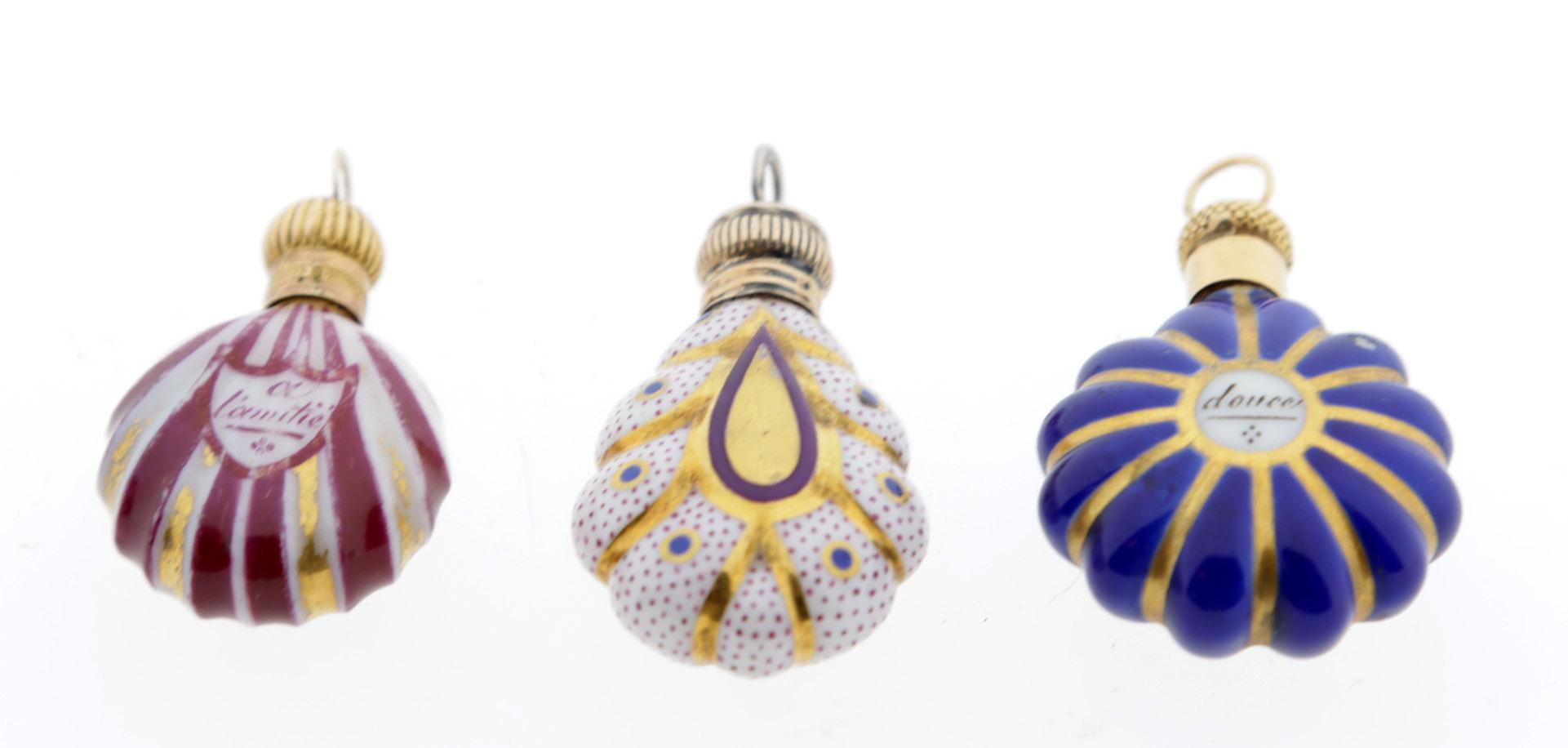 3 Franse miniatuur odeurflacons, h.4, h.3.5 en h.3 cm.
