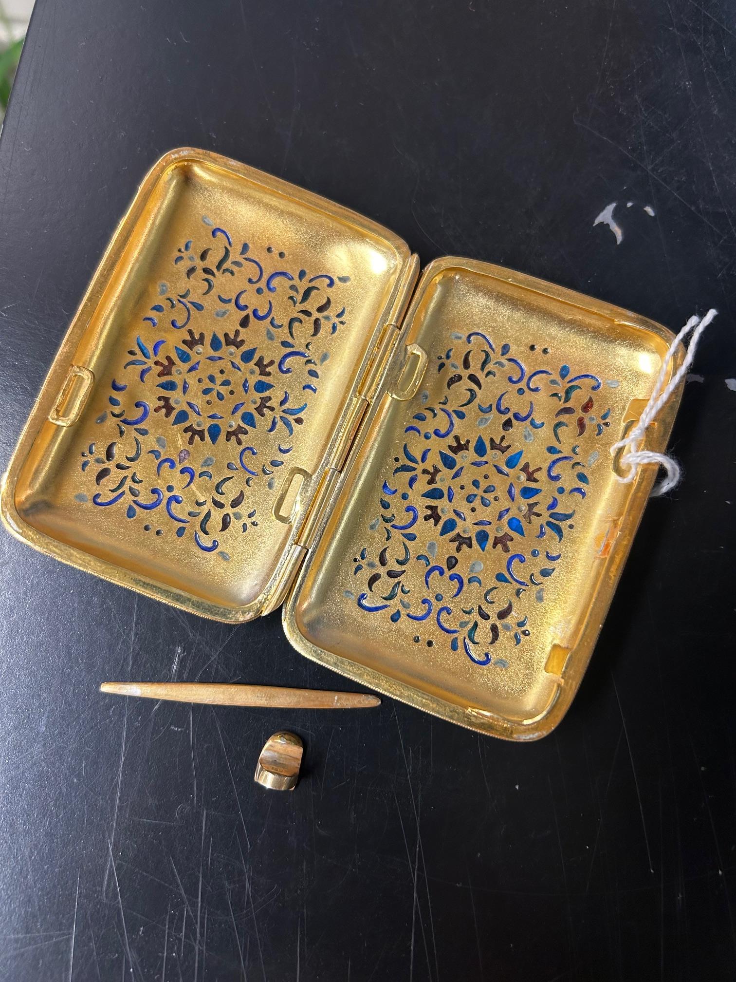 Russische verguld zilveren cloisonné sigarettendoos, begin 20e eeuw, 8,2 x 5,7 x 2 cm.